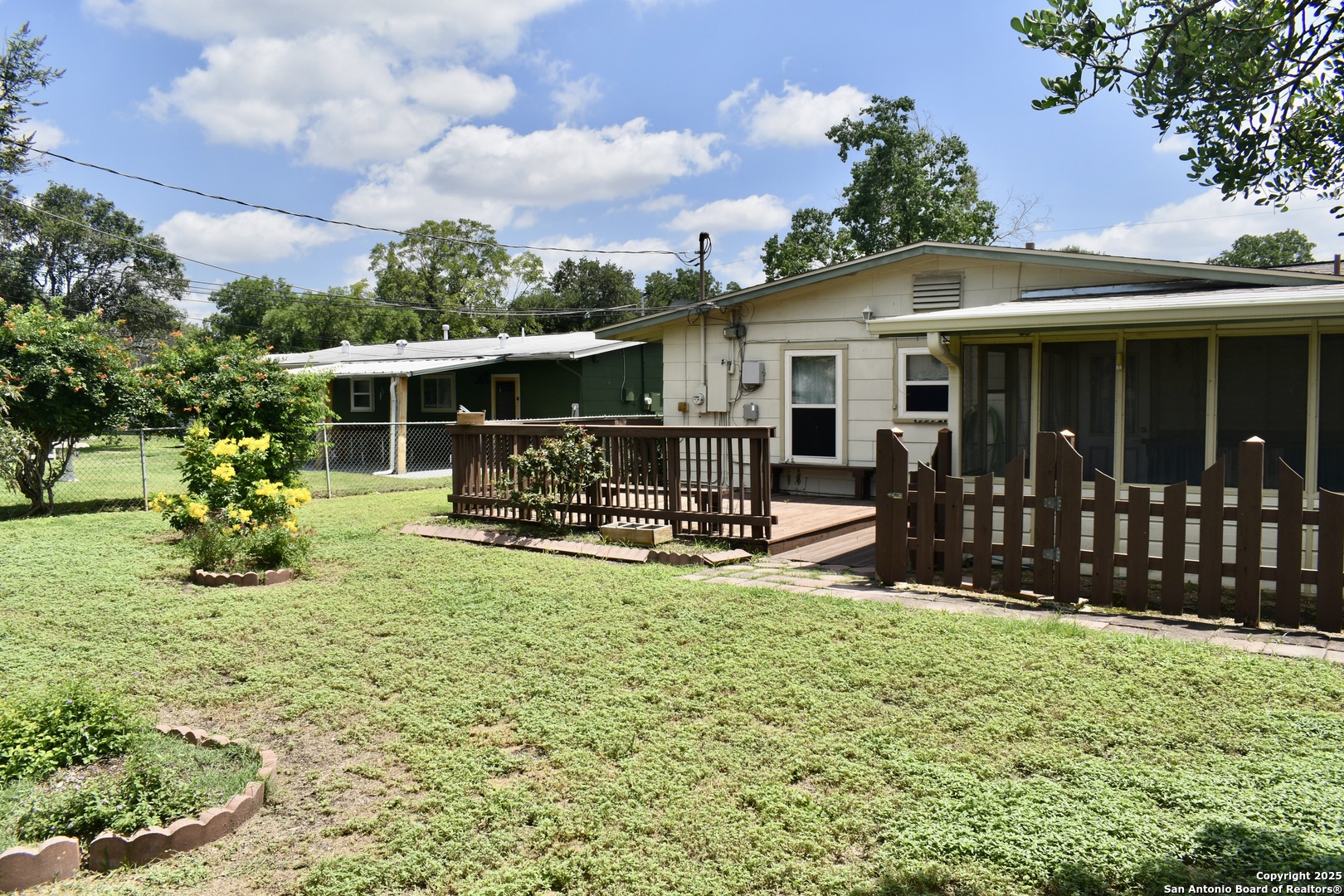 Step into this Charming and Vibrant 1,405 SqFt Home that showcases 4 Bedrooms and 2 Full Baths; with the 4th bedroom offering the flexibility in it being used as a HOME OFFICE. WOODEN FLOORS Refurbished. Conveniently located in the award-winning 2025 San Antonio Express-News Reader's Choice Awards BEST SCHOOL DISTRICT, this location offers easy access to I-410, with close proximity to Joint Base San Antonio (Fort Sam Houston) and Brook Army Medical Center (BAMC), nearby Restaurants, Shopping Centers, and Major Highways leading into Downtown San Antonio. Unwind in style on the Large Screened-In Back Patio and adjacent Wooden Deck with a SPACIOUS BACKYARD; perfect for hosting lively gatherings and engaging in outdoor activities. Embrace the tranquility provided by this Home's participation in San Antonio's Acoustical Treatment Program, delivering Noise Reduction and increased comfort for a peaceful and quiet living experience. Along with additional improvements, this Home's ROOF was replaced in 2021, and is available for immediate Move-In!