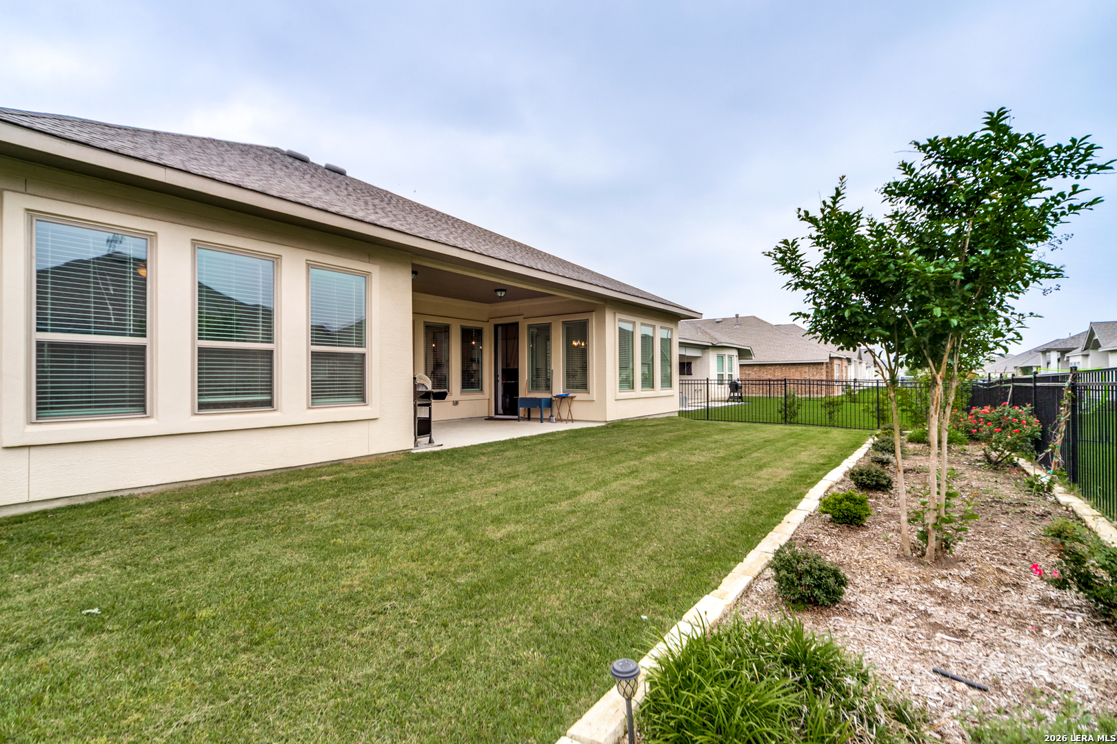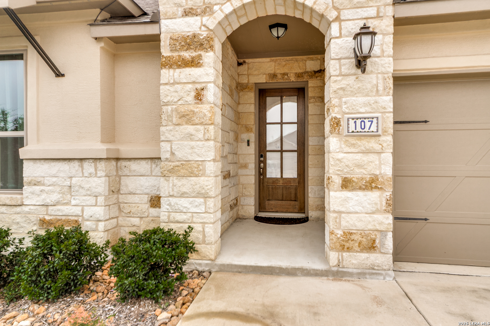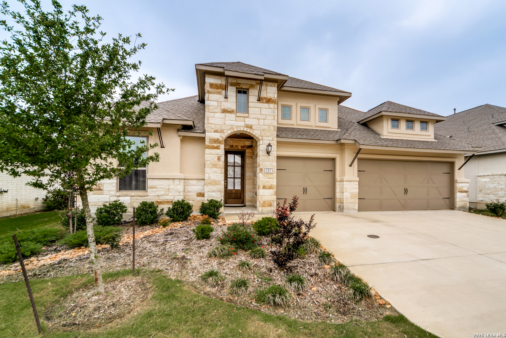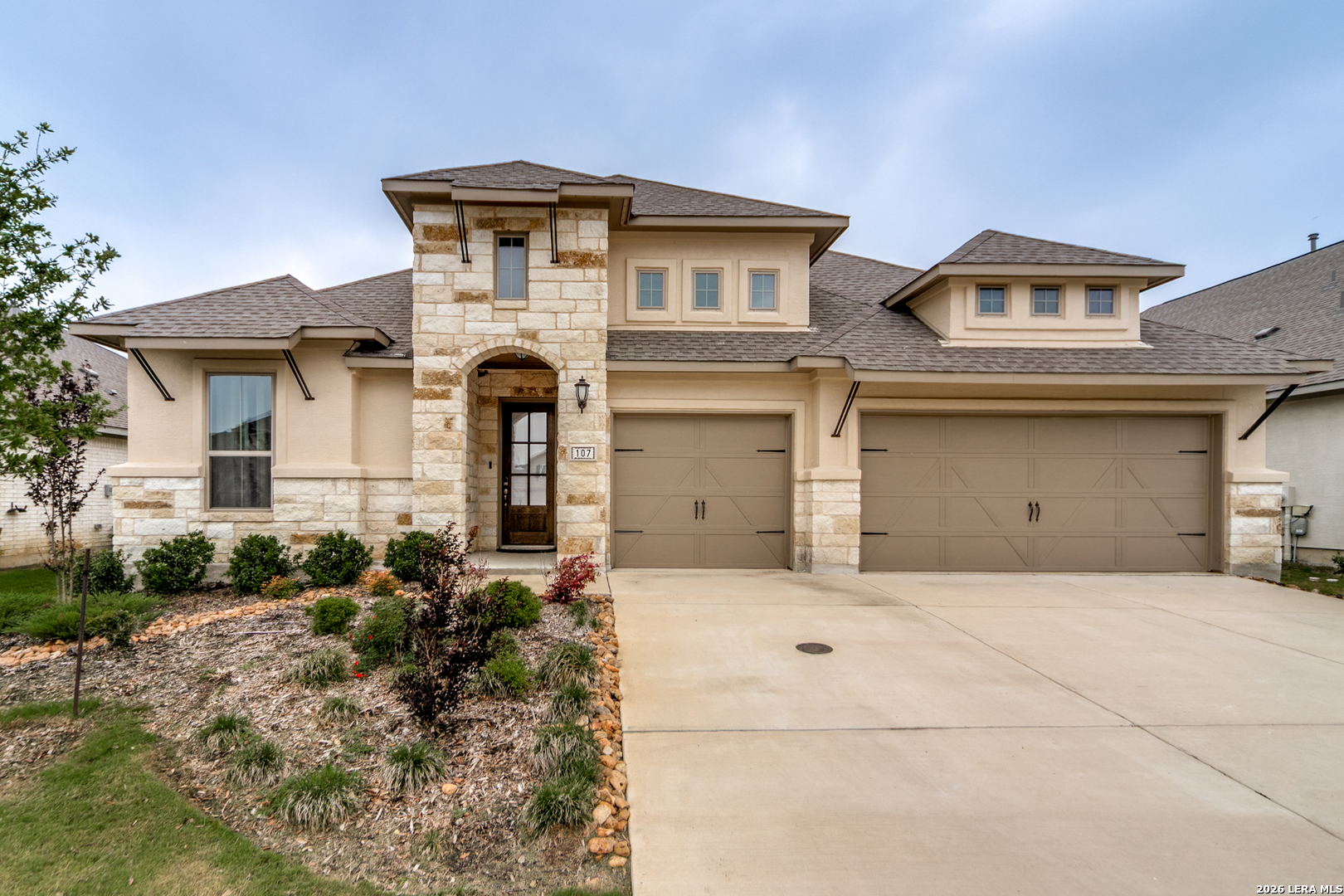 Step into your dream home! This stunning single story residence features a beautiful stucco and stone exterior, a dramatic entry with dual coffered ceilings, and gorgeous wood flooring throughout. Offering 4 spacious bedrooms plus a private study with French doors, this home is designed for both comfort and style. The chef's kitchen is a showstopper with an enormous quartz island, custom lighting, a butler's area, an oversized walk-in pantry, and gas cooking. The home also features dual primary suites, each with its own private bathroom, making it perfect for multigenerational living or hosting guests. A newly installed generator adds extra peace of mind. Additional highlights include a 3-car garage, professional outdoor lighting, and a covered backyard patio perfect for relaxing or entertaining. Located in the highly sought after Boerne ISD, this community offers a state-of-the-art amenity center with a lifestyle director, private gym, resort-style pool, lazy river, pickle ball courts, and a dog park.