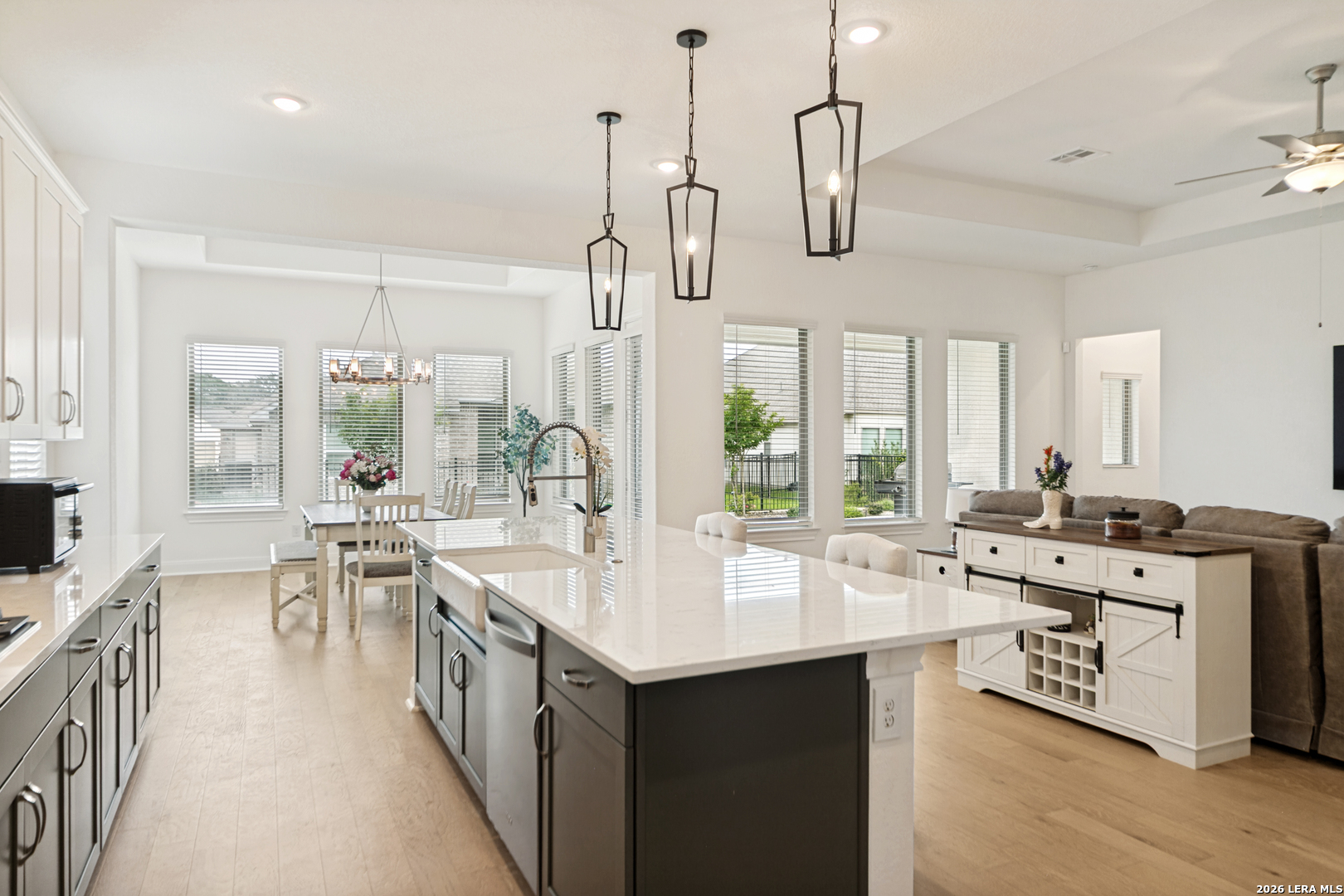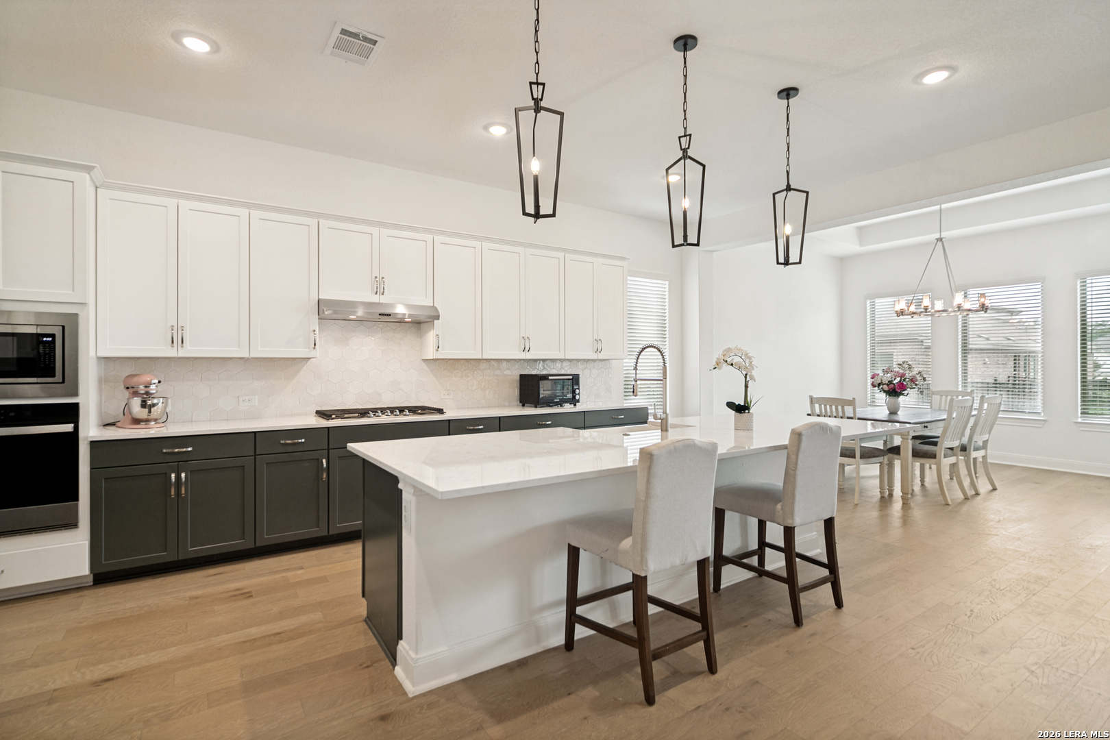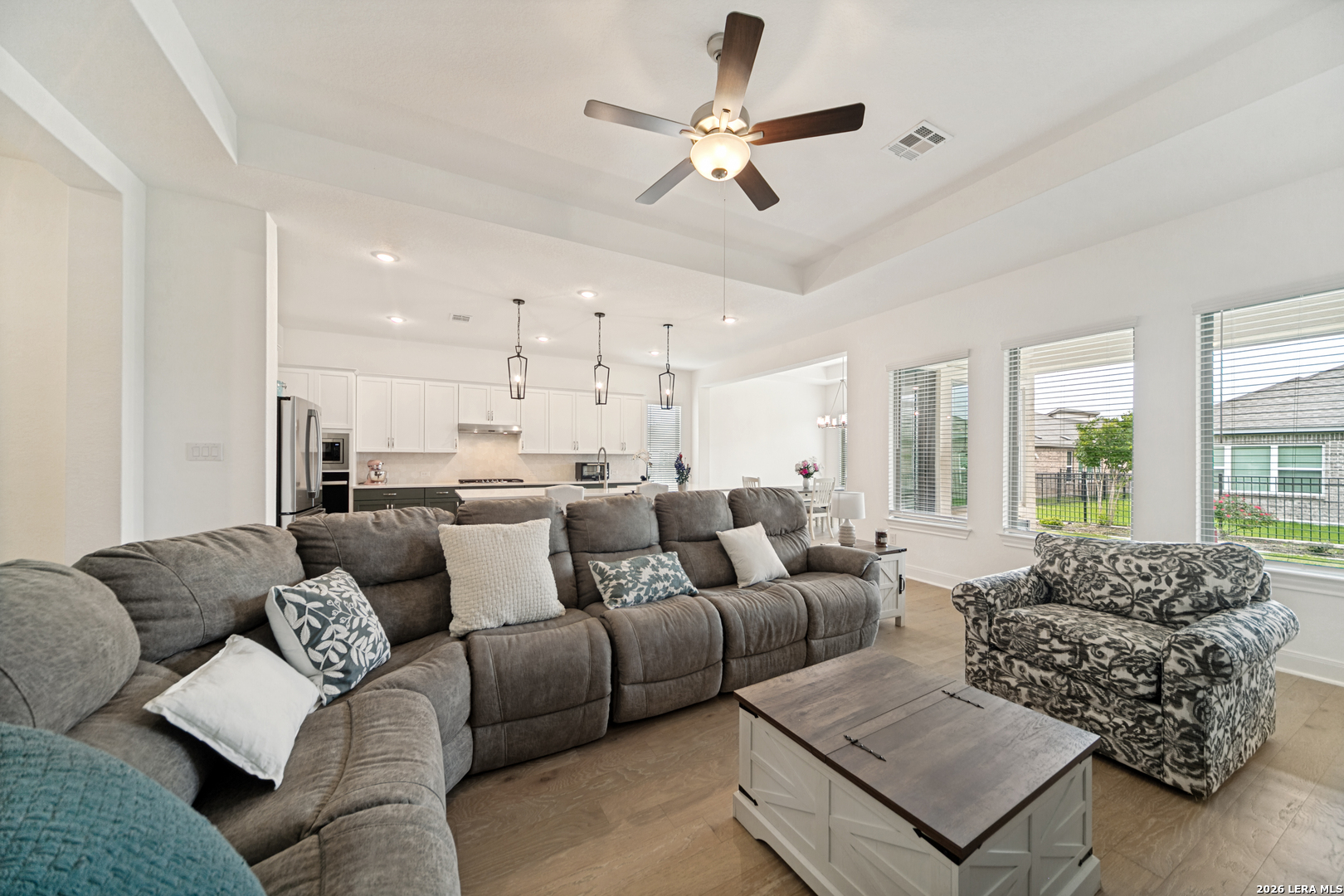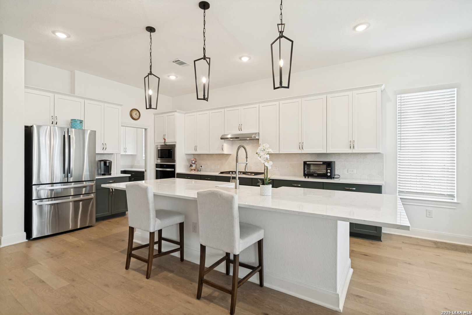 Step into your dream home! This stunning single story residence features a beautiful stucco and stone exterior, a dramatic entry with dual coffered ceilings, and gorgeous wood flooring throughout. Offering 4 spacious bedrooms plus a private study with French doors, this home is designed for both comfort and style. The chef's kitchen is a showstopper with an enormous quartz island, custom lighting, a butler's area, an oversized walk-in pantry, and gas cooking. The home also features dual primary suites, each with its own private bathroom, making it perfect for multigenerational living or hosting guests. A newly installed generator adds extra peace of mind. Additional highlights include a 3-car garage, professional outdoor lighting, and a covered backyard patio perfect for relaxing or entertaining. Located in the highly sought after Boerne ISD, this community offers a state-of-the-art amenity center with a lifestyle director, private gym, resort-style pool, lazy river, pickle ball courts, and a dog park.