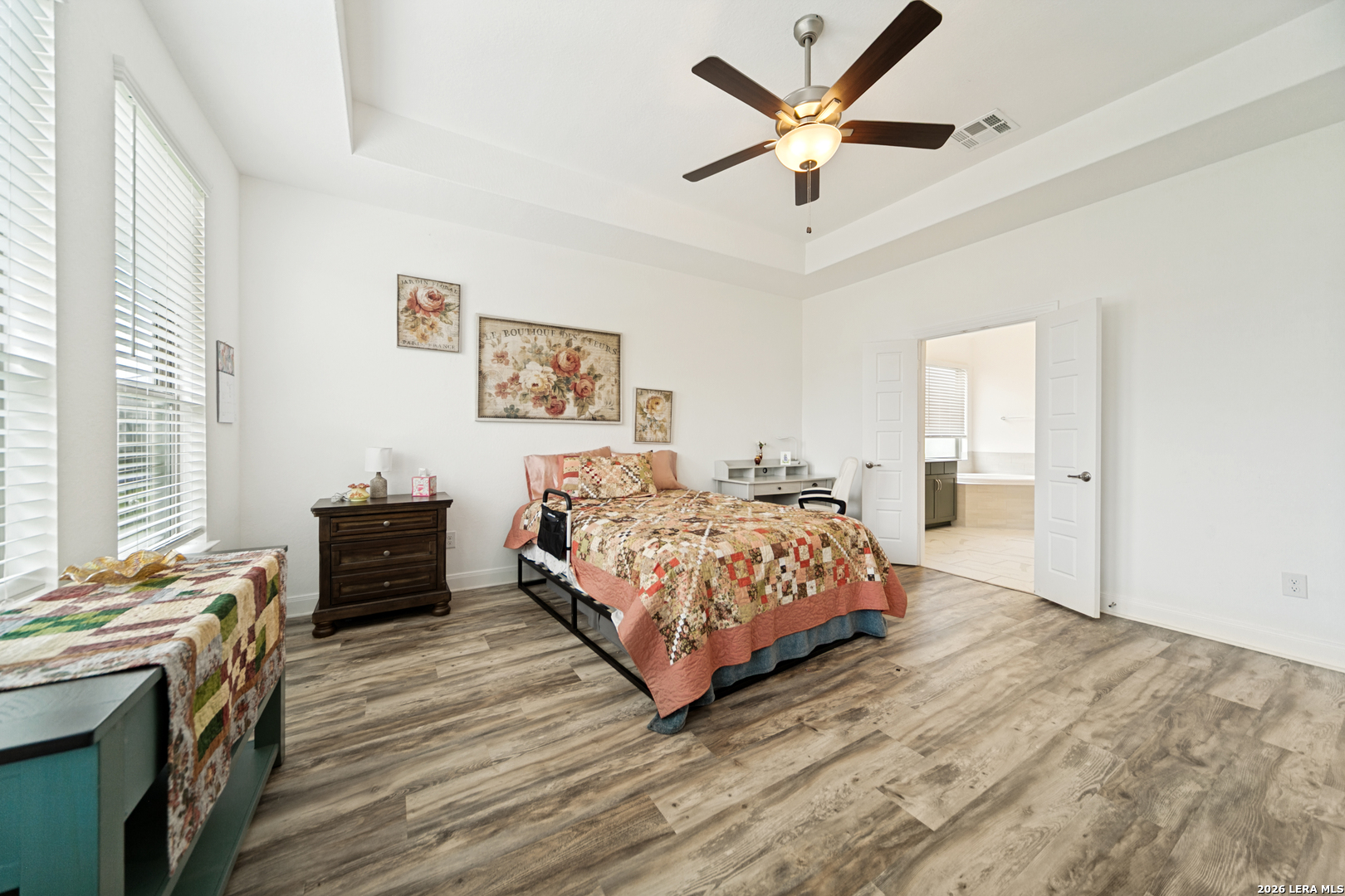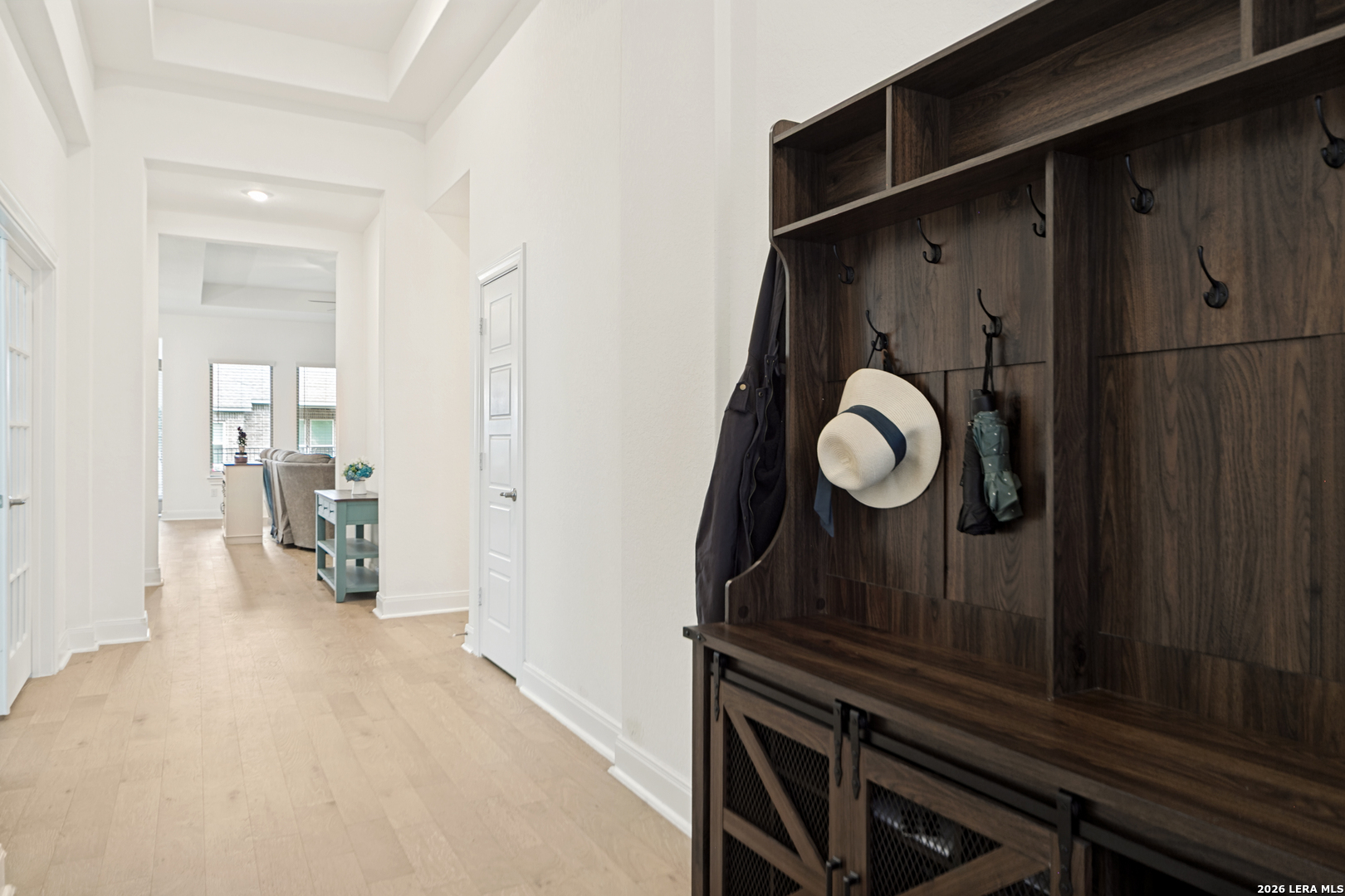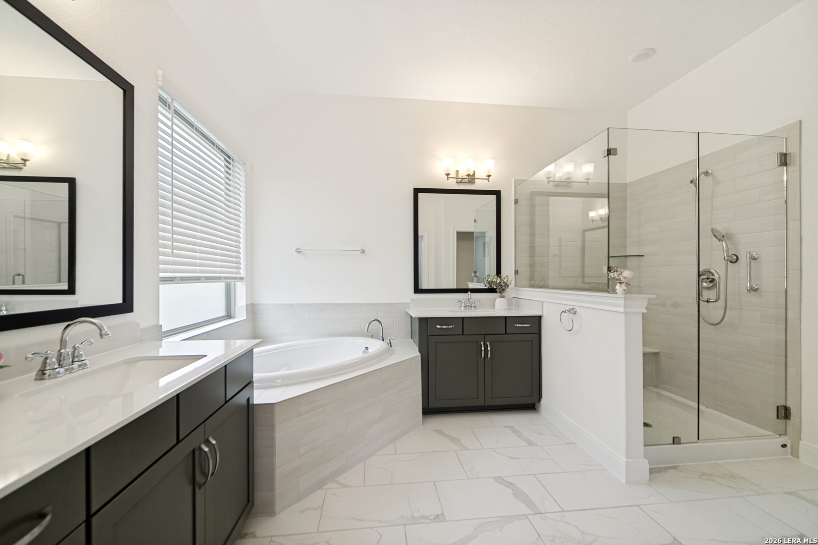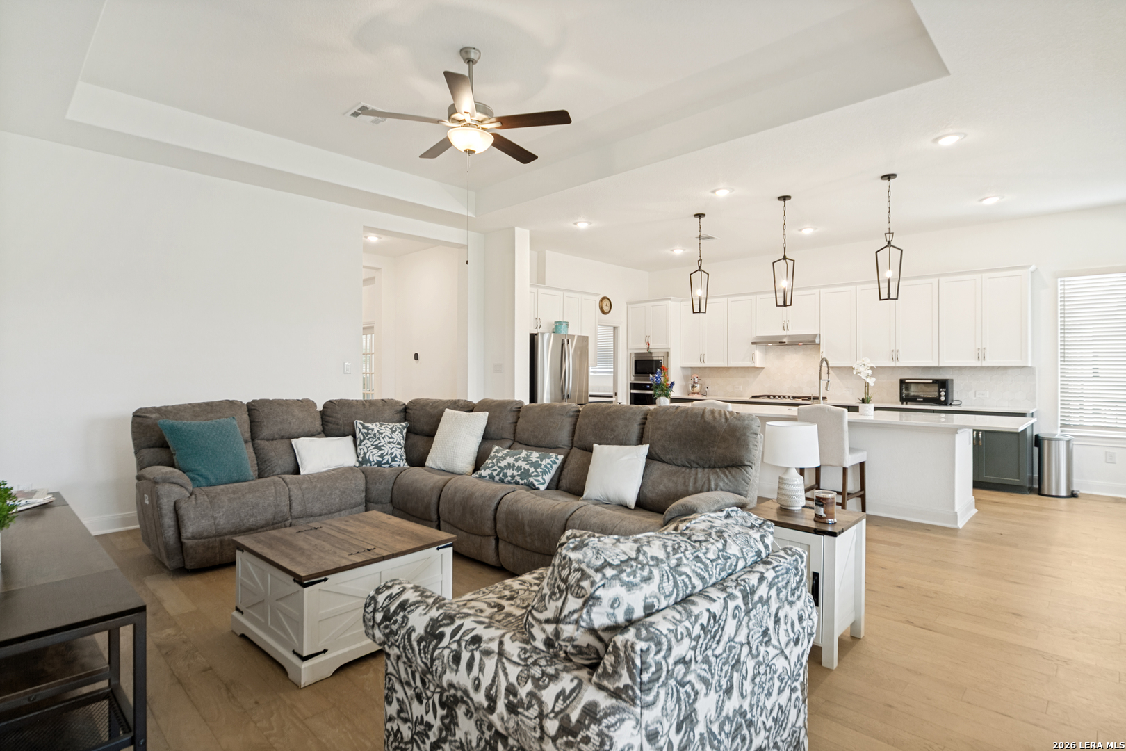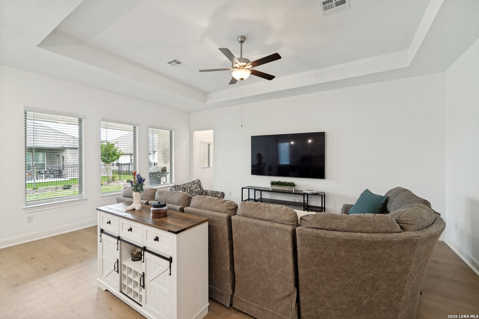 Step into your dream home! This stunning single story residence features a beautiful stucco and stone exterior, a dramatic entry with dual coffered ceilings, and gorgeous wood flooring throughout. Offering 4 spacious bedrooms plus a private study with French doors, this home is designed for both comfort and style. The chef's kitchen is a showstopper with an enormous quartz island, custom lighting, a butler's area, an oversized walk-in pantry, and gas cooking. The home also features dual primary suites, each with its own private bathroom, making it perfect for multigenerational living or hosting guests. A newly installed generator adds extra peace of mind. Additional highlights include a 3-car garage, professional outdoor lighting, and a covered backyard patio perfect for relaxing or entertaining. Located in the highly sought after Boerne ISD, this community offers a state-of-the-art amenity center with a lifestyle director, private gym, resort-style pool, lazy river, pickle ball courts, and a dog park.