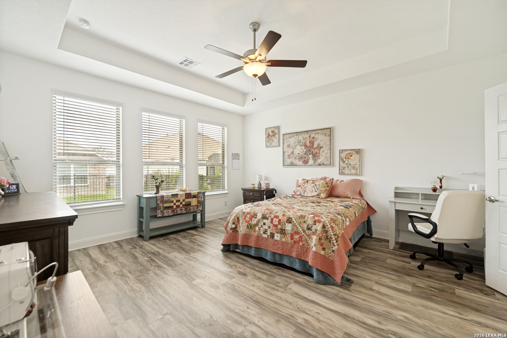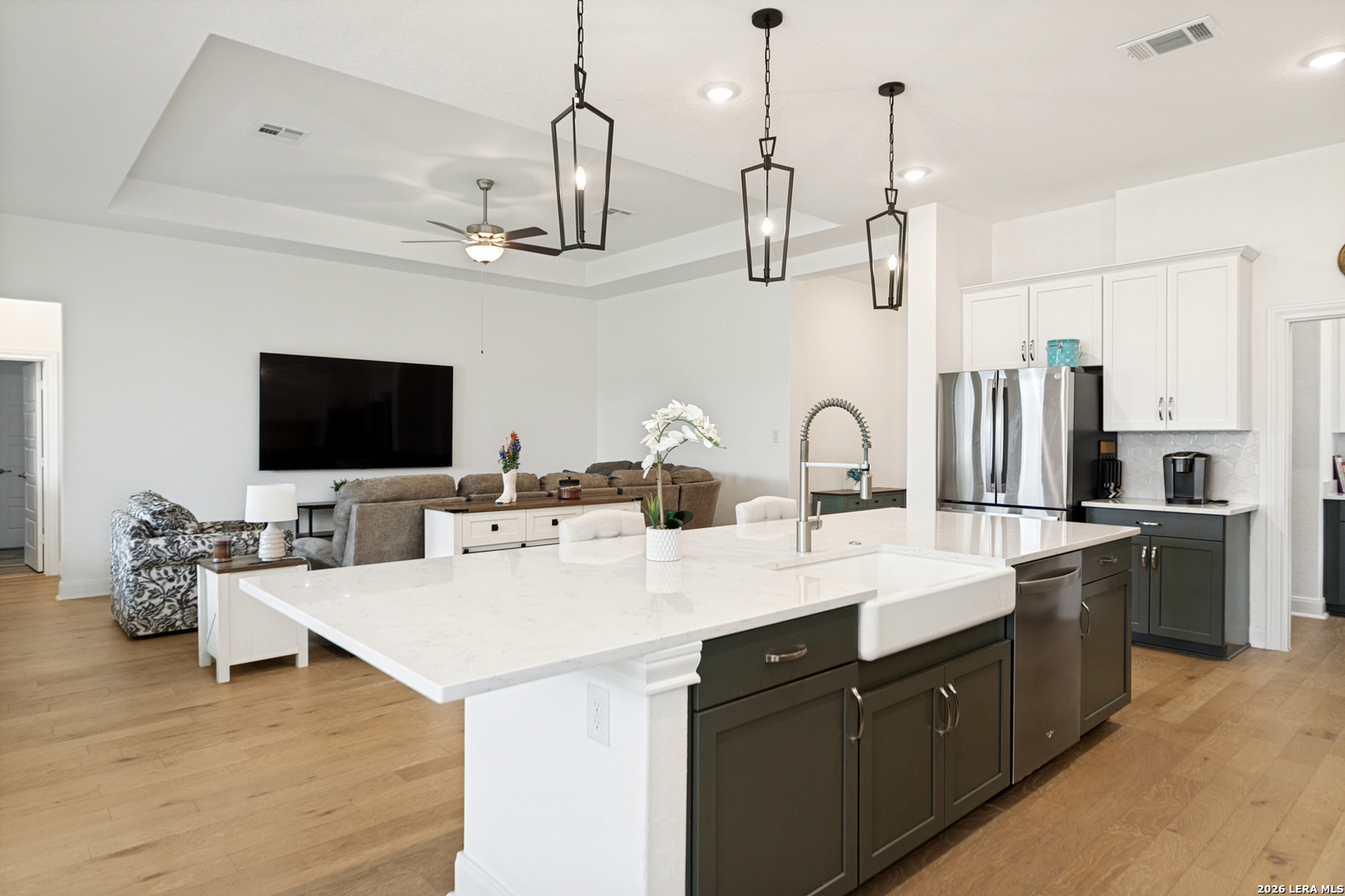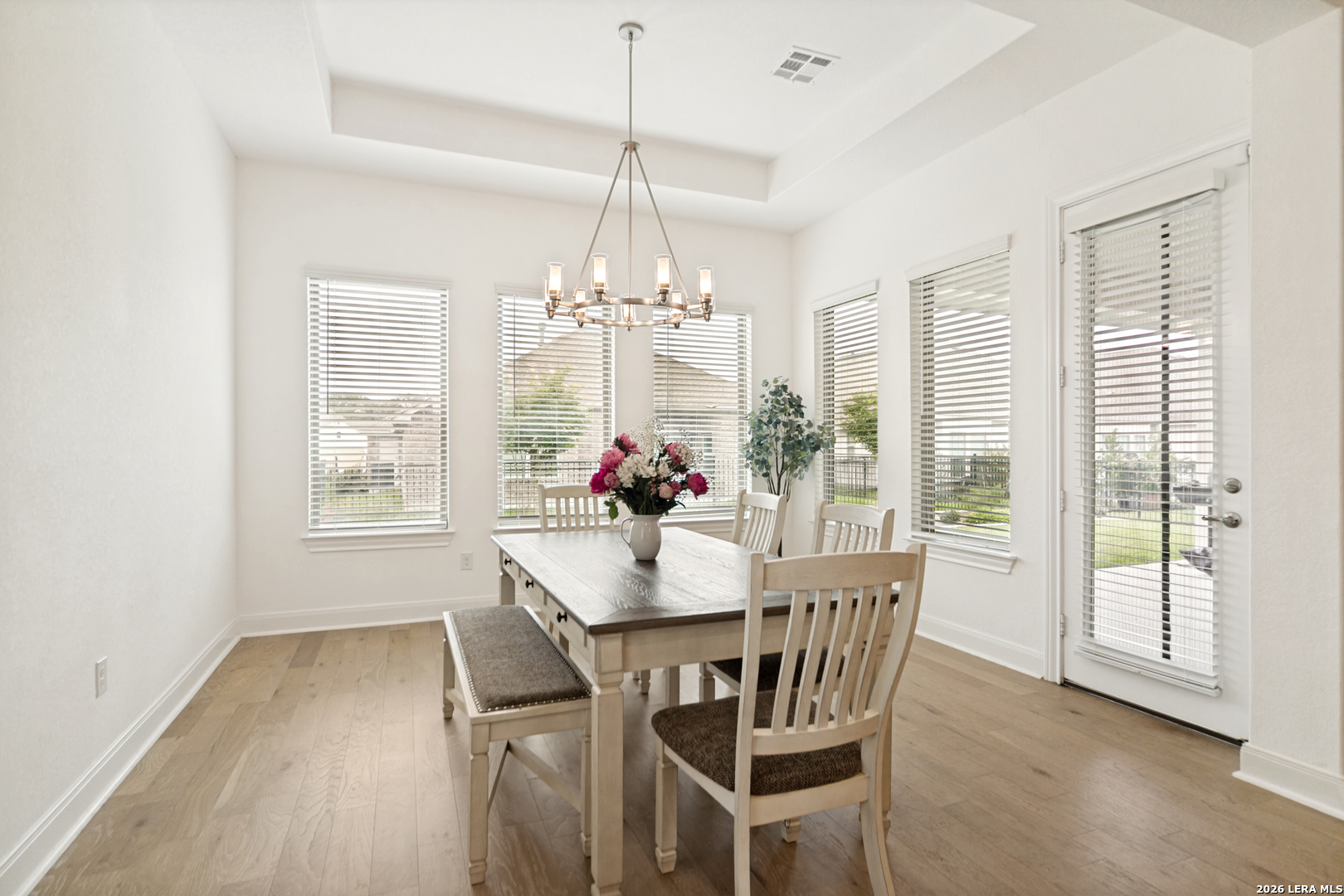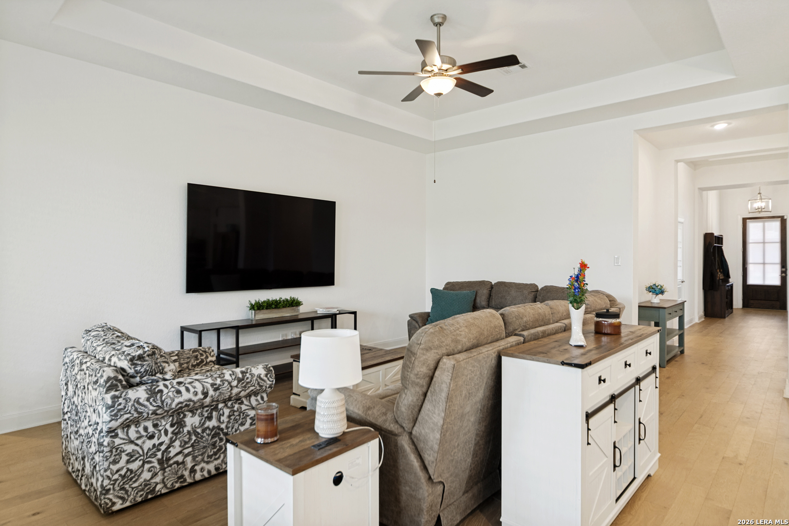 Step into your dream home! This stunning single story residence features a beautiful stucco and stone exterior, a dramatic entry with dual coffered ceilings, and gorgeous wood flooring throughout. Offering 4 spacious bedrooms plus a private study with French doors, this home is designed for both comfort and style. The chef's kitchen is a showstopper with an enormous quartz island, custom lighting, a butler's area, an oversized walk-in pantry, and gas cooking. The home also features dual primary suites, each with its own private bathroom, making it perfect for multigenerational living or hosting guests. A newly installed generator adds extra peace of mind. Additional highlights include a 3-car garage, professional outdoor lighting, and a covered backyard patio perfect for relaxing or entertaining. Located in the highly sought after Boerne ISD, this community offers a state-of-the-art amenity center with a lifestyle director, private gym, resort-style pool, lazy river, pickle ball courts, and a dog park.