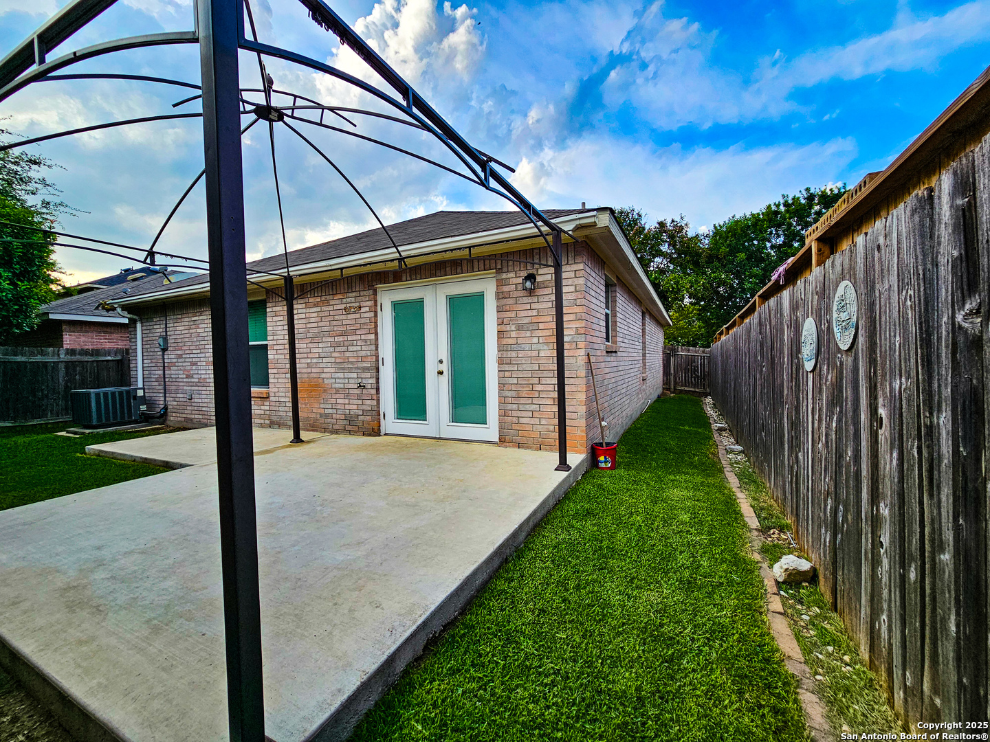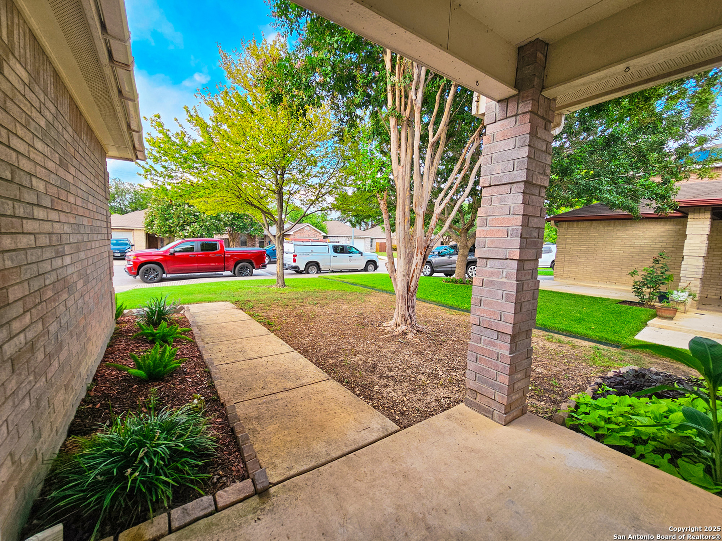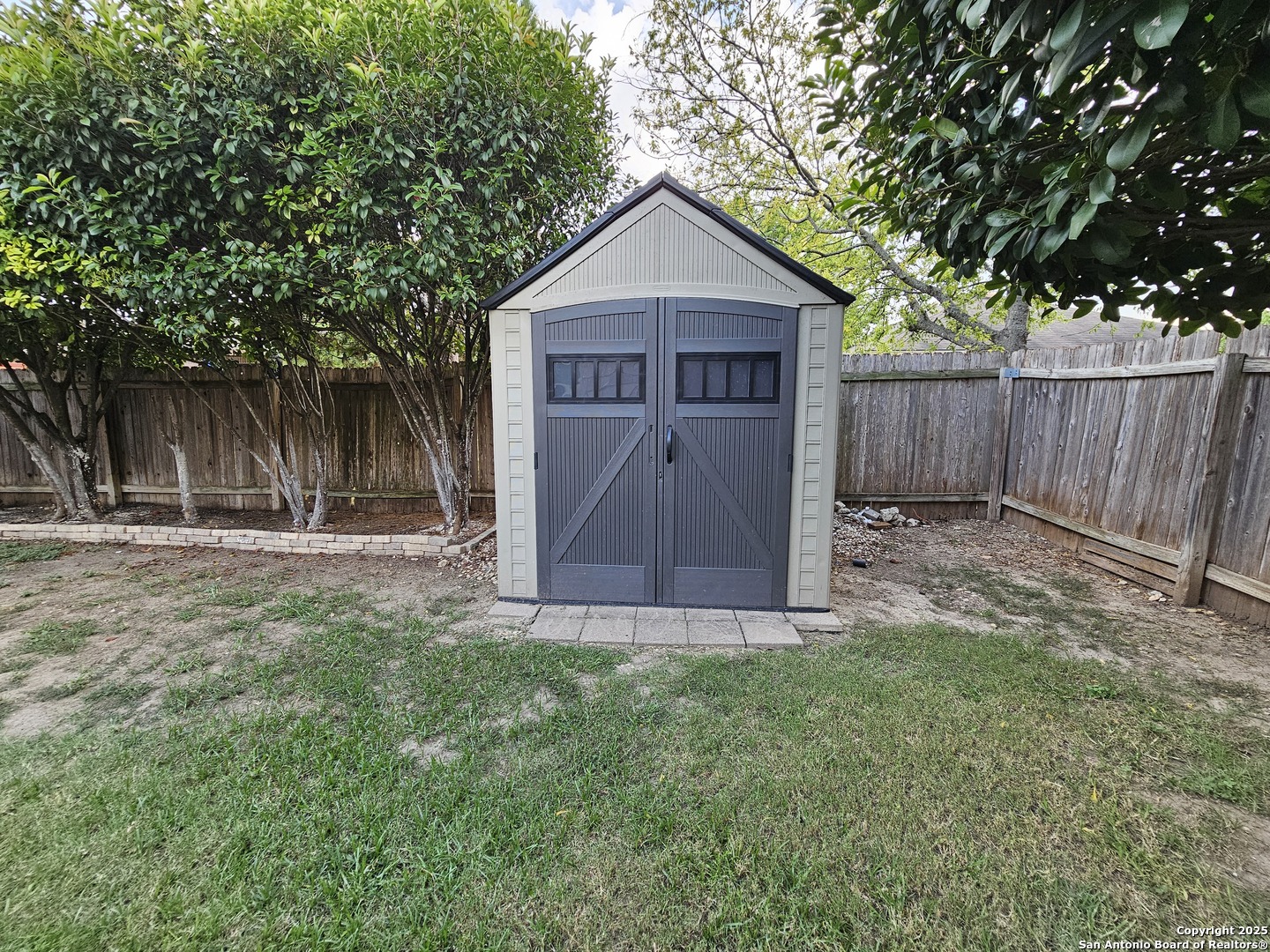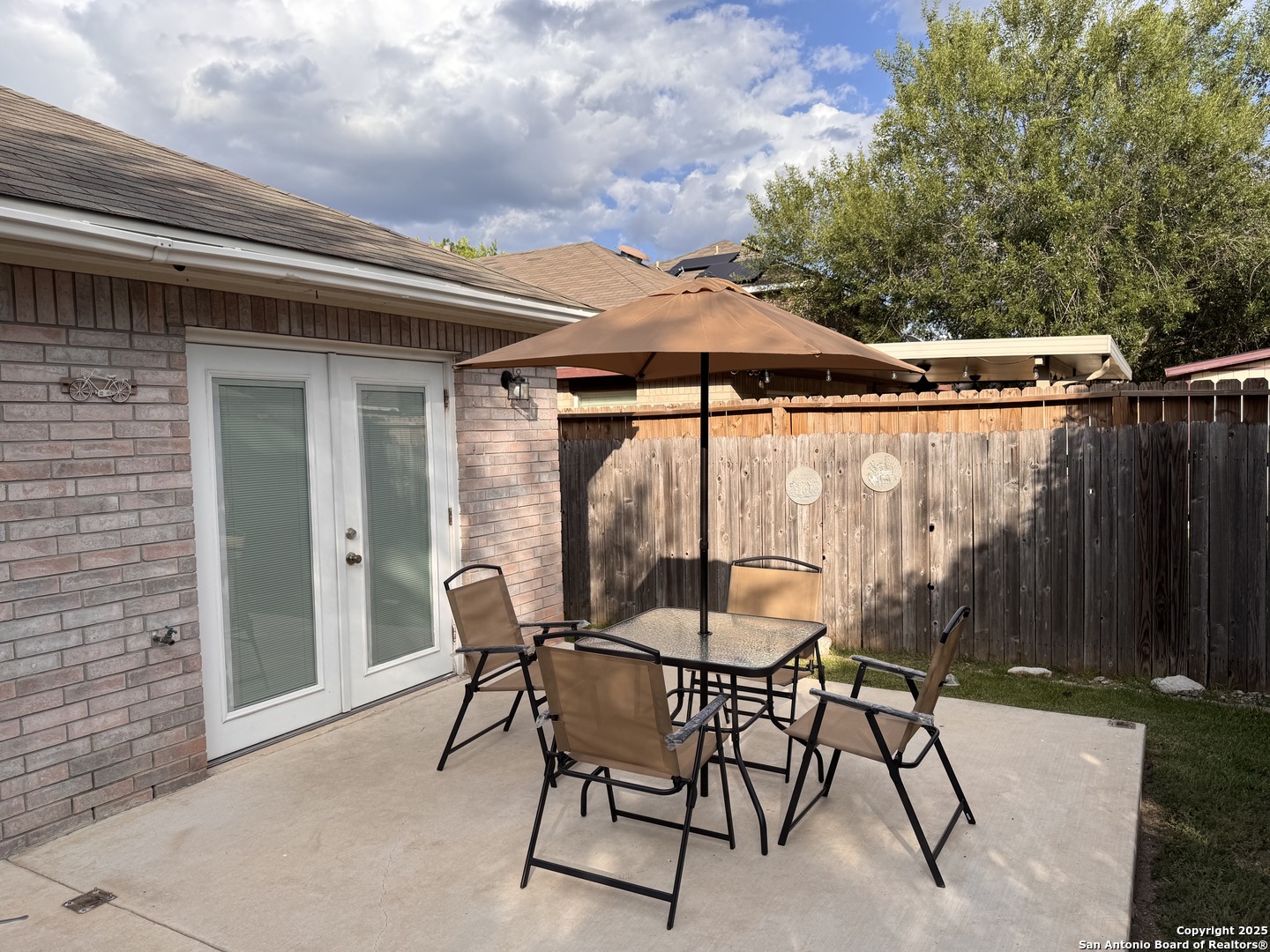 For rent a charming and well-maintained 3-bedroom, 2-bath single-story home located at 10706 Shaenpath in the desirable Shaenfield Place subdivision of San Antonio (Northside ISD). This 1,302 sq ft home features an open floor plan with no interior steps, updated kitchen cabinets, stainless steel appliances, and elegant travertine tile flooring. The spacious living and dining areas are enhanced by beautiful French doors that open to a private, landscaped backyard with a covered patio and storage shed. This home is great for entertaining or relaxing. The primary suite features a walk-in closet and a private full bathroom with a tub/shower combination. Additional features include Ceiling fans, a Ring doorbell, a garage door opener, and a water softener. The home also comes with a Refrigerator and a 1-car garage. Located just minutes from Loop 1604, Lackland AFB, SeaWorld, and local shopping and dining. Ideal for those seeking comfort, convenience, and modern touches in a quiet neighborhood with a community park and playground