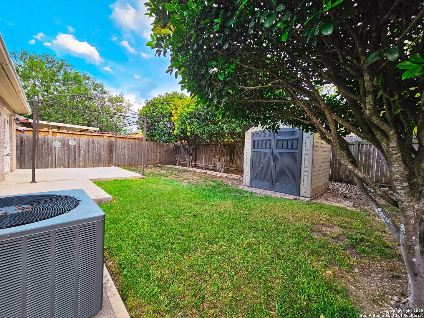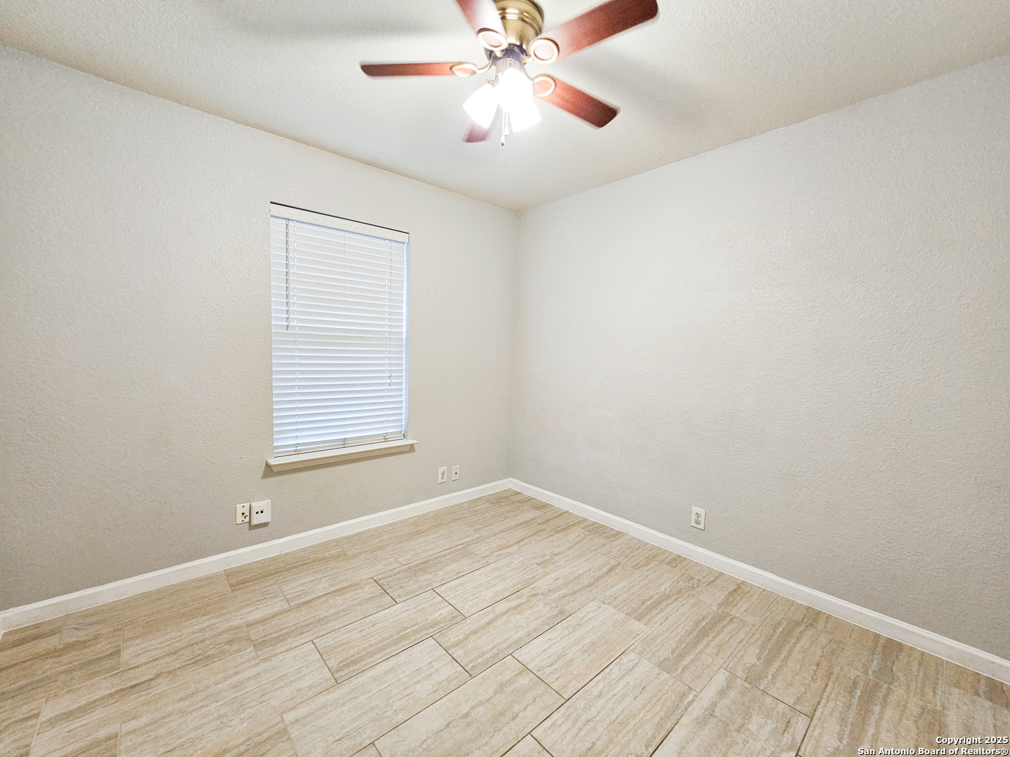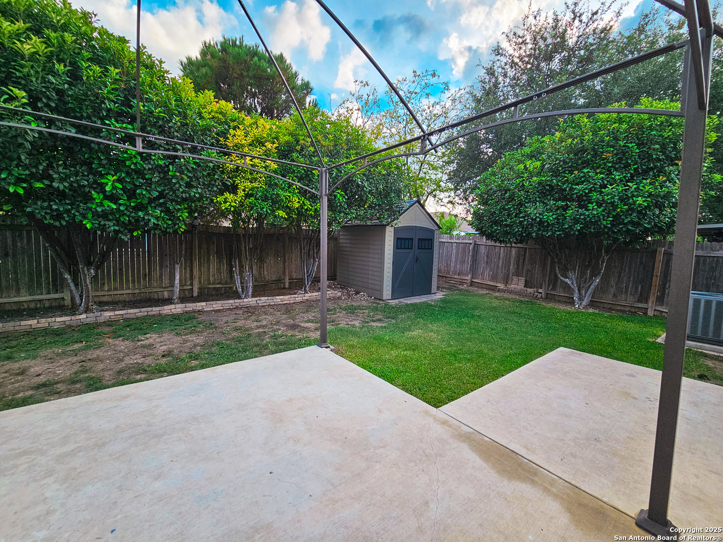 For rent a charming and well-maintained 3-bedroom, 2-bath single-story home located at 10706 Shaenpath in the desirable Shaenfield Place subdivision of San Antonio (Northside ISD). This 1,302 sq ft home features an open floor plan with no interior steps, updated kitchen cabinets, stainless steel appliances, and elegant travertine tile flooring. The spacious living and dining areas are enhanced by beautiful French doors that open to a private, landscaped backyard with a covered patio and storage shed. This home is great for entertaining or relaxing. The primary suite features a walk-in closet and a private full bathroom with a tub/shower combination. Additional features include Ceiling fans, a Ring doorbell, a garage door opener, and a water softener. The home also comes with a Refrigerator and a 1-car garage. Located just minutes from Loop 1604, Lackland AFB, SeaWorld, and local shopping and dining. Ideal for those seeking comfort, convenience, and modern touches in a quiet neighborhood with a community park and playground