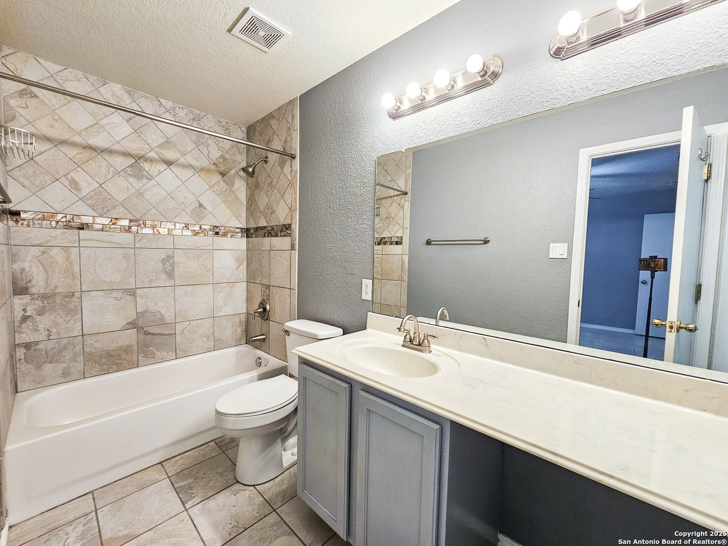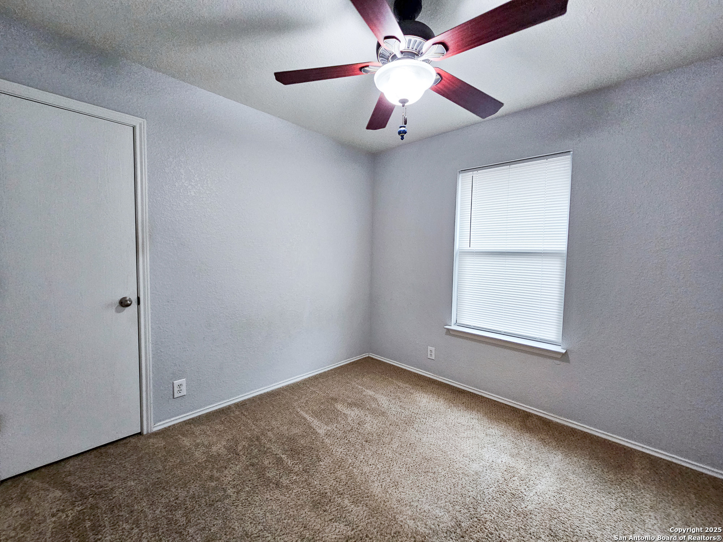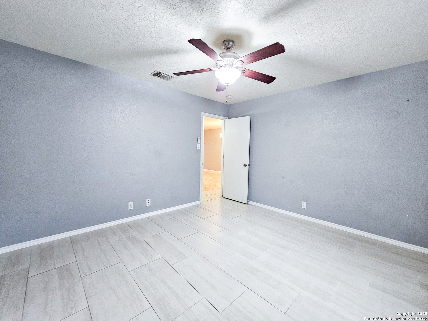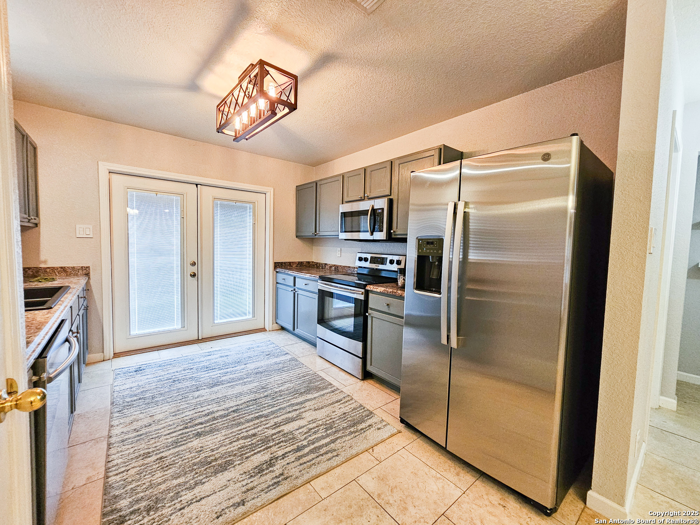 For rent a charming and well-maintained 3-bedroom, 2-bath single-story home located at 10706 Shaenpath in the desirable Shaenfield Place subdivision of San Antonio (Northside ISD). This 1,302 sq ft home features an open floor plan with no interior steps, updated kitchen cabinets, stainless steel appliances, and elegant travertine tile flooring. The spacious living and dining areas are enhanced by beautiful French doors that open to a private, landscaped backyard with a covered patio and storage shed. This home is great for entertaining or relaxing. The primary suite features a walk-in closet and a private full bathroom with a tub/shower combination. Additional features include Ceiling fans, a Ring doorbell, a garage door opener, and a water softener. The home also comes with a Refrigerator and a 1-car garage. Located just minutes from Loop 1604, Lackland AFB, SeaWorld, and local shopping and dining. Ideal for those seeking comfort, convenience, and modern touches in a quiet neighborhood with a community park and playground