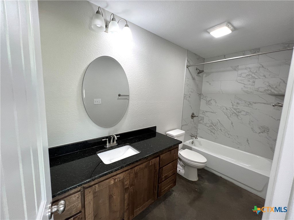 Built just three years ago in Lampasas’s desirable Stone Valley subdivision, this home blends modern finishes with a well-established feel. Inside, you’ll find stained concrete flooring, a tiled master bath shower, a walk-in master closet, a fiberglass tub/shower with tile surround in the second bath, granite countertops, tile backsplashes, stainless steel appliances, and washer/dryer hook-ups. The exterior features brick and Hardi Plank siding with a composition roof and a 2-car garage. The yard is fully sodded with a sprinkler system and enclosed by a wood privacy fence—ready for both relaxation and entertaining.