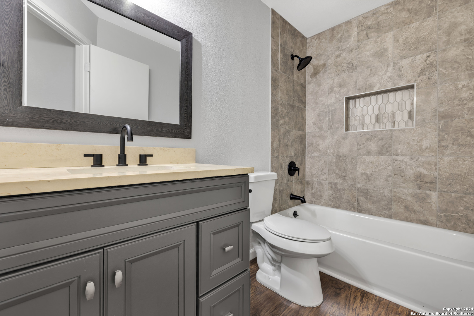Discover the perfect blend of classic charm and modern living in this delightful 3-bedroom, 2.5-bathroom two-story home. Nestled in the heart of Northwest San Antonio, this residence offers not only a comfortable and spacious interior but also quick access to 1604 for an easy commute to all the city has to offer. Located near Bridgewood Park, you'll enjoy the convenience of outdoor recreation just a stone's throw away. The area is also well-served by excellent schools, making it an ideal choice. Step inside and you'll be greeted by a bright and spacious interior where modern living seamlessly merges with timeless design. The kitchen is a highlight, featuring stainless steel appliances and ample counter space for culinary adventures. All three bedrooms are conveniently located upstairs, offering the privacy and separation desired in a home. The grand primary suite is a true retreat, featuring a fabulous en suite bathroom with a unique tower/tub combination, adding a touch of luxury to your daily routine. Come and experience the warmth and character of this home firsthand. Schedule a viewing today and make this Northwest San Antonio gem your very own haven. Your dream home awaits!
