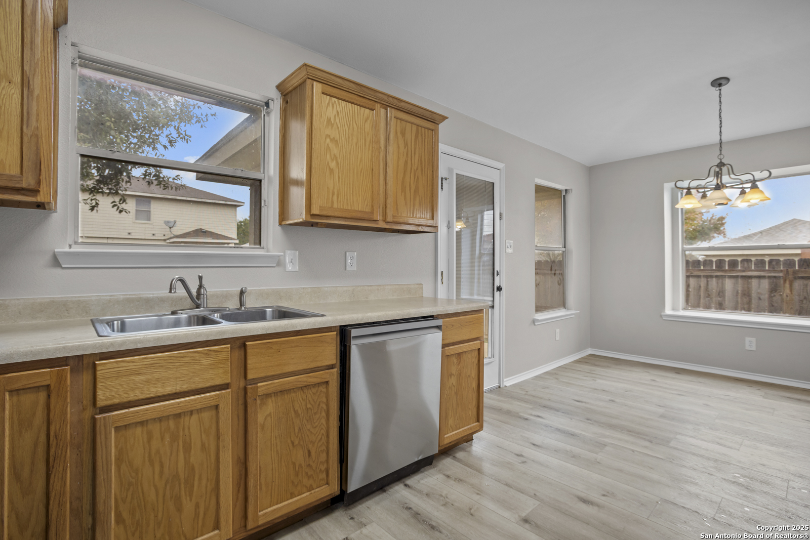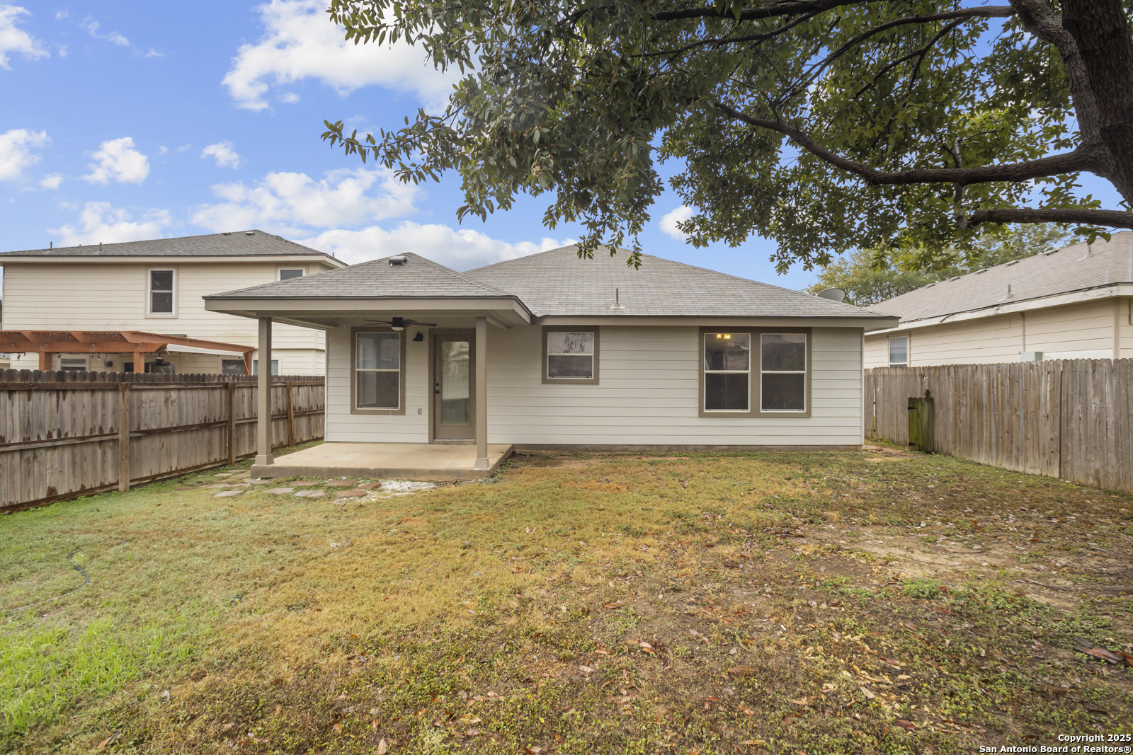 Welcome to this well-maintained 4-bedroom, 2-bathroom home located in a desirable Northwest San Antonio community. This home features a spacious living room that flows seamlessly into the kitchen, making it ideal for everyday living and entertaining. The kitchen offers generous countertop space, stainless steel appliances, and plenty of storage. The large primary suite provides a relaxing retreat with a full ensuite bathroom that includes a double vanity, a shower/tub combination, and a walk-in closet. Additional bedrooms are well-sized and versatile for family, guests, or a home office. Enjoy outdoor living on the covered patio, perfect for relaxing or hosting gatherings. Residents of the neighborhood have access to excellent amenities including a community pool, playground, jogging trails, and sports courts. Conveniently located near shopping, dining, and major roadways, this home offers comfort, convenience, and a great lifestyle.