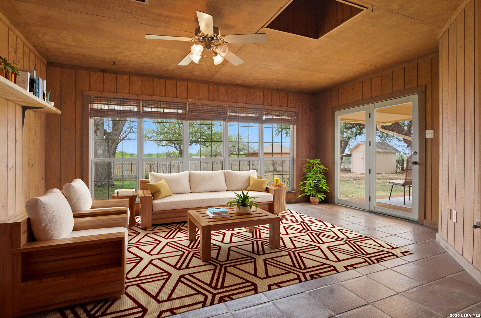 Escape the hustle and bustle and embrace the tranquility of this beautifully updated ranch-style retreat at 10742 New Sulphur Springs Rd. Situated on a sprawling 2.86-acre lot, this home offers the perfect blend of modern comfort and rustic charm. Step inside to an expansive living area featuring a soaring cathedral ceiling accented by a stunning exposed beam, creating a grand yet cozy atmosphere. The heart of the home is the kitchen. It has a grand island with newer appliances, lots of cabinetry, double ovens and flows seamlessly into a separate dining space, perfect for hosting social gatherings. The primary suite is a true sanctuary with an updated ensuite featuring a custom walk-in shower and double vanities. In addition to the 3 spacious bedrooms and Florida room, the oversized laundry room offers incredible versatility-easily transforming into a 4th bedroom, home office, or hobby space. Enjoy peace of mind with new windows, interior and exterior paint, along with a 2024 & 2021 HVAC system for year-round efficiency. With nearly 3 acres of land, the possibilities are endless-from gardening, raising chickens, a workshop space, to simply enjoying the Texas sunsets. Rare opportunity for acreage living with all the modern comforts-schedule your tour today!