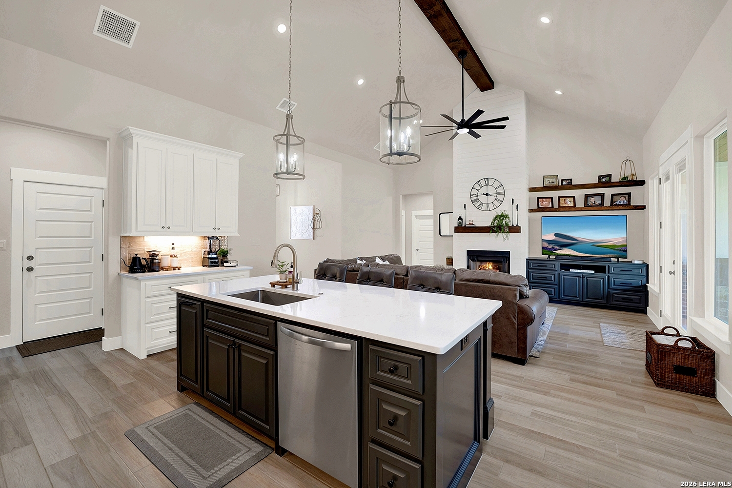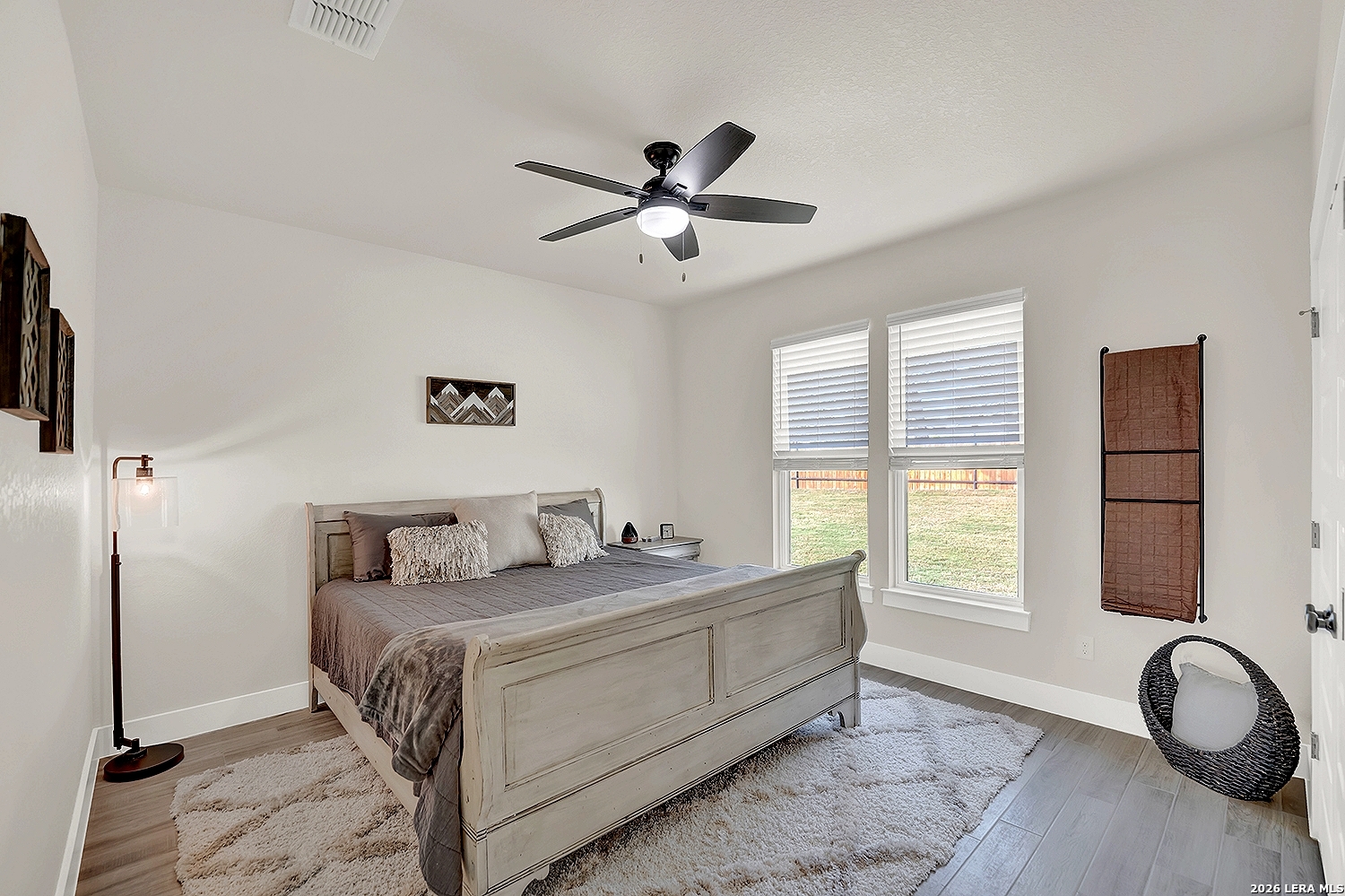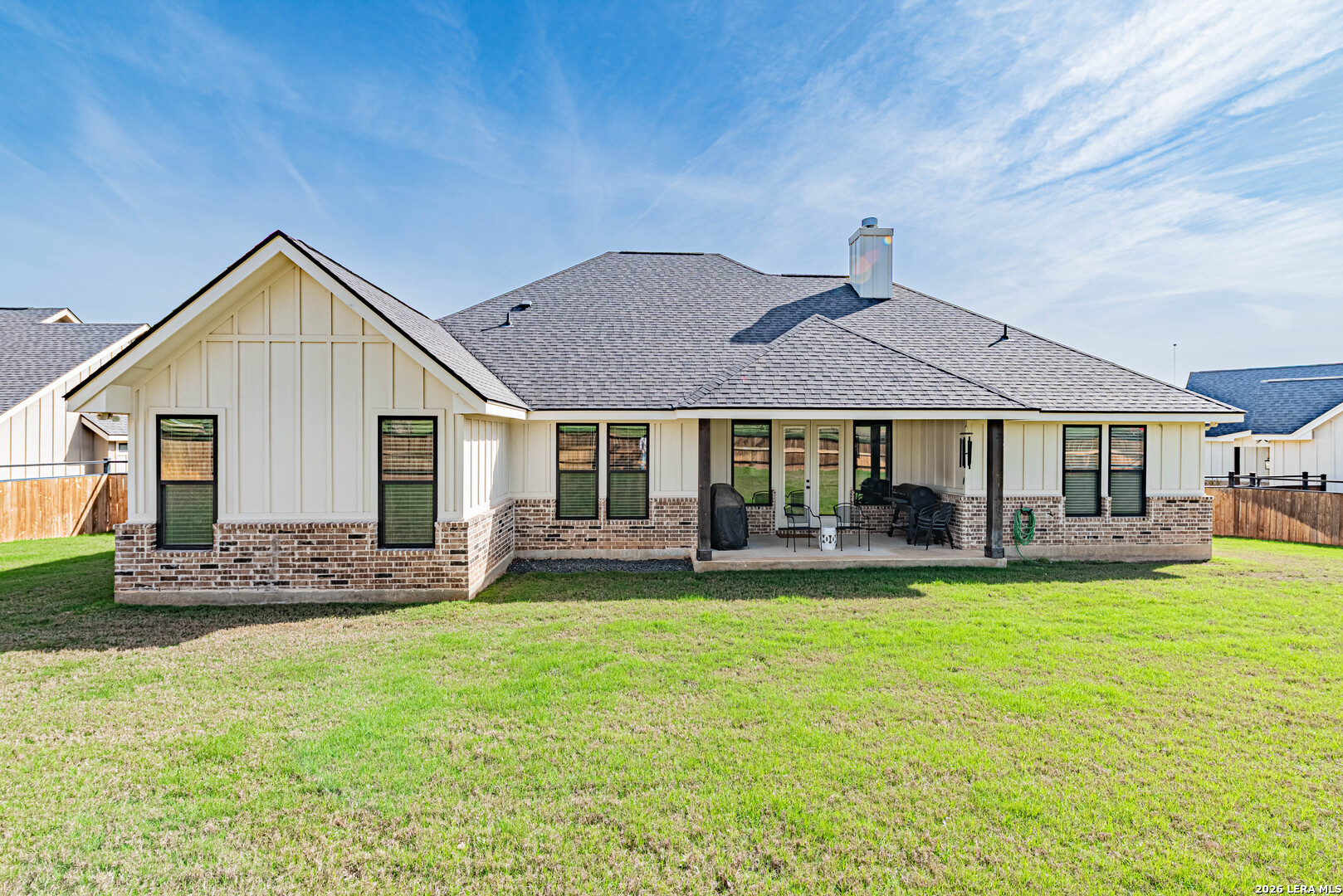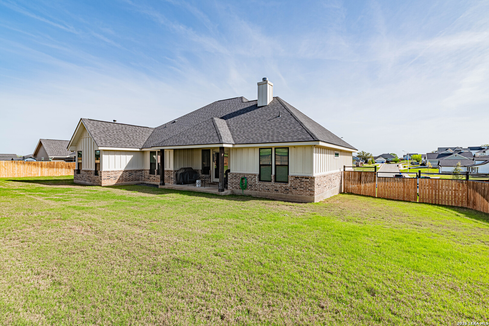 A WELCOMING craftsman style home with farmhouse touches! Located in the premier gated community of Woodbridge Farms! Highly functional open floor plan concept, 4 bedroom or 3 bedroom with a flex room and 2 1/2 bathrooms. Covered patio with wood ceiling. Fully fenced, sprinkler system, spacious backyard with covered patio. Smart home ready! Close proximity to subdivision park with outdoor seating/gazebo, splash pad, and basketball court. Conveniently located and walking distance to schools, shopping, and local restaurants!