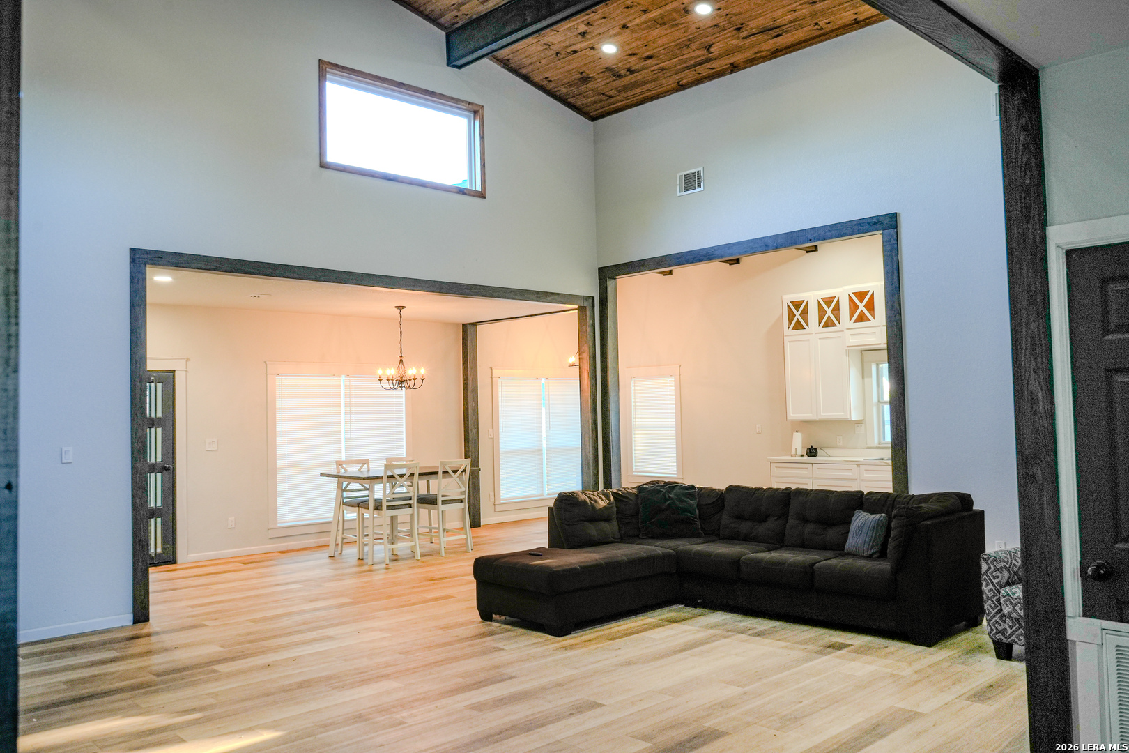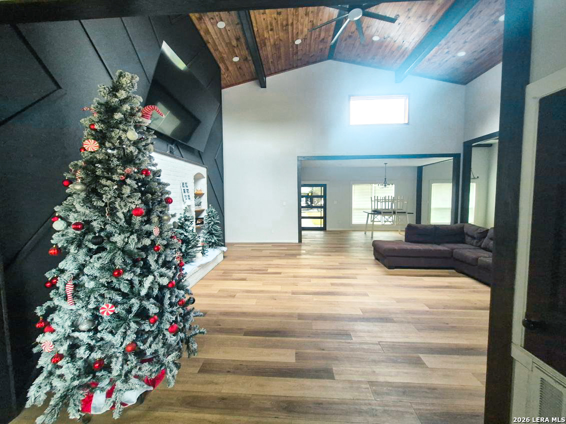 Discover this stunning 4 bedroom, 2 bath home offering an open concept layout and soaring ceilings that create a bright, expansive feel throughout. Designed with both elegance and functionality in mind, the spacious living area flows seamlessly into the dining and kitchen spaces ideal for everyday living and entertaining. A dedicated office provides the perfect work from home setup or flexible bonus space. The private primary suite features a generous walk in closet and a well appointed ensuite bath. A thoughtfully separated secondary bedroom wing offers added privacy, making it ideal for guests or multi generational living. Located in the heart of Uvalde, this home offers convenient access to local schools, shopping, dining, and everyday amenities. Enjoy being just minutes from downtown Uvalde, with its charming local businesses and community events, as well as nearby outdoor recreation including parks, rivers, and scenic Texas Hill Country views. This property delivers the perfect blend of comfort, versatility, and location all on one level.