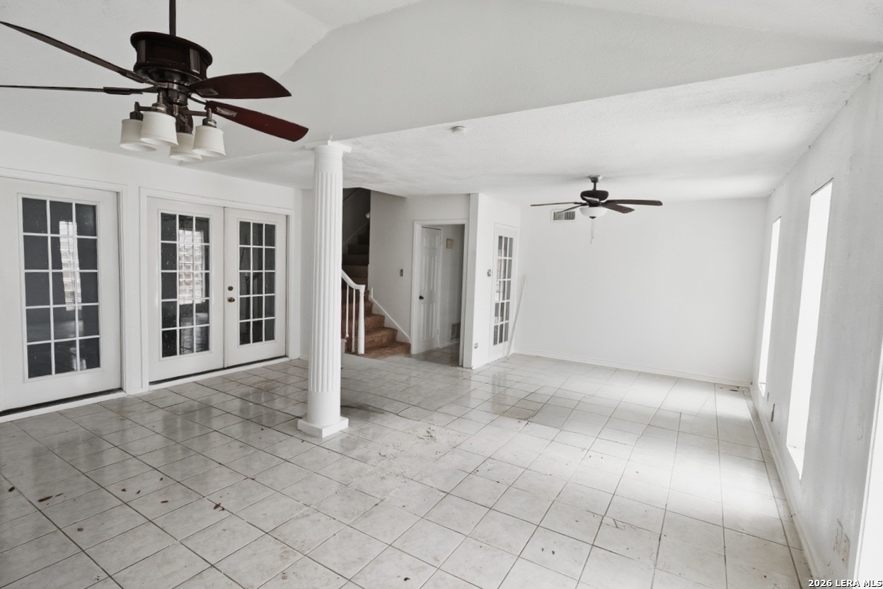 Step into a home full of character and possibilities! This unique property features dual primary suites, offering flexibility for multi-generational living or guest accommodations. The converted garage serves as a fully handicap-accessible suite, complete with an open bathroom, private living area, and French doors that lead directly to the pool, patio, and kitchen-perfect for seamless indoor-outdoor living. Upstairs, you'll find a spacious primary retreat with carpet, custom built-ins, and a wall of windows overlooking your private backyard. The home is filled with charm, from the custom wrought iron double front doors to the abundance of natural light streaming through expansive windows and French doors along the back of the home. Enjoy entertaining with your private pool featuring a diving board and slide, plus a second-story patio that offers a peaceful view of the backyard. A convenient poolside changing room with full bath adds to the functionality and thoughtful layout of the home. This one-of-a-kind property blends vintage charm with endless potential-ready for you to make it your own. This home is a fixer-upper with incredible potential, making it a great opportunity for buyers ready to add their personal touch and bring new life to a truly distinctive property. Schedule your showing today and envision the possibilities!