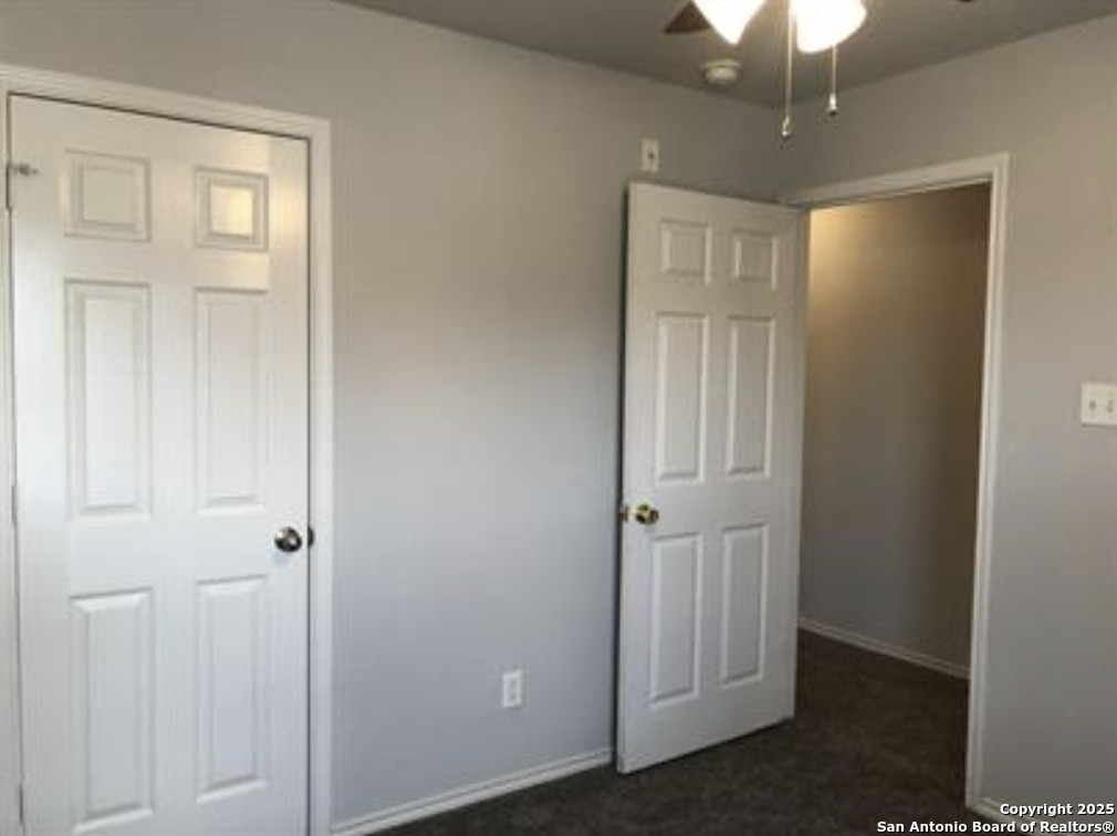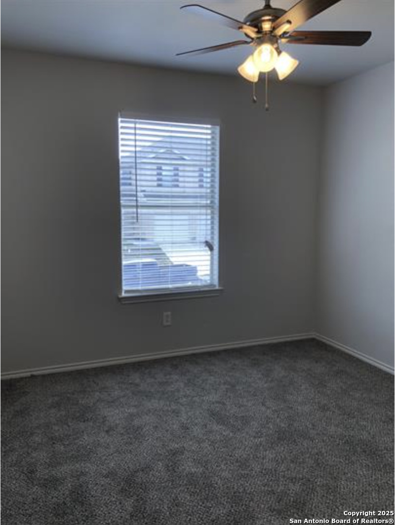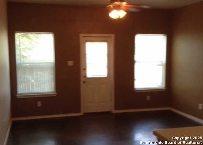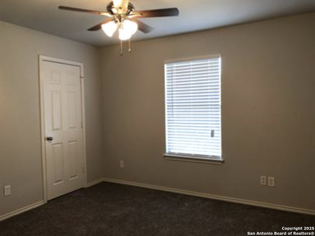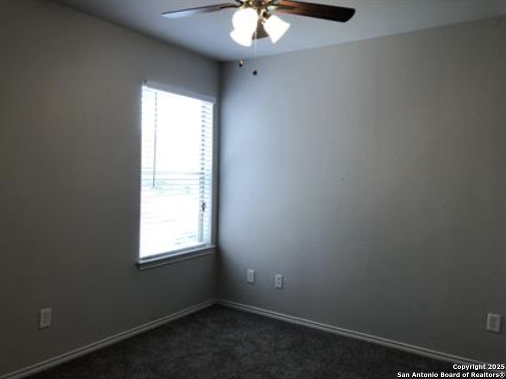 Tenant responsible for $130/month Water/Sewer Fee. Fantastic 2-story quadplex with attached 1-car garage! This spacious 3-bedroom, 2.5-bath home features stained concrete flooring on the main level and cozy carpet upstairs. Enjoy a bright and open living area and a well-appointed eat-in kitchen with a breakfast bar, solid countertops, microwave, stove/range, refrigerator and dishwasher. All bedrooms are upstairs, including a split master suite with multiple walk-in closets, ceiling fan, and a private full bath with single vanity. Generous secondary bedrooms offer plenty of space. Step outside to a private, fenced backyard with a patio-perfect for relaxing or entertaining. Conveniently located near shopping, The Forum, and offers an easy commute to Randolph AFB, SAMMC, and Ft. Sam Houston.