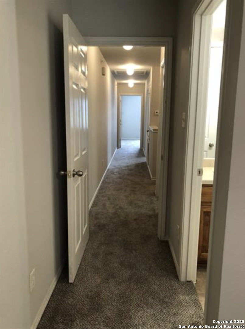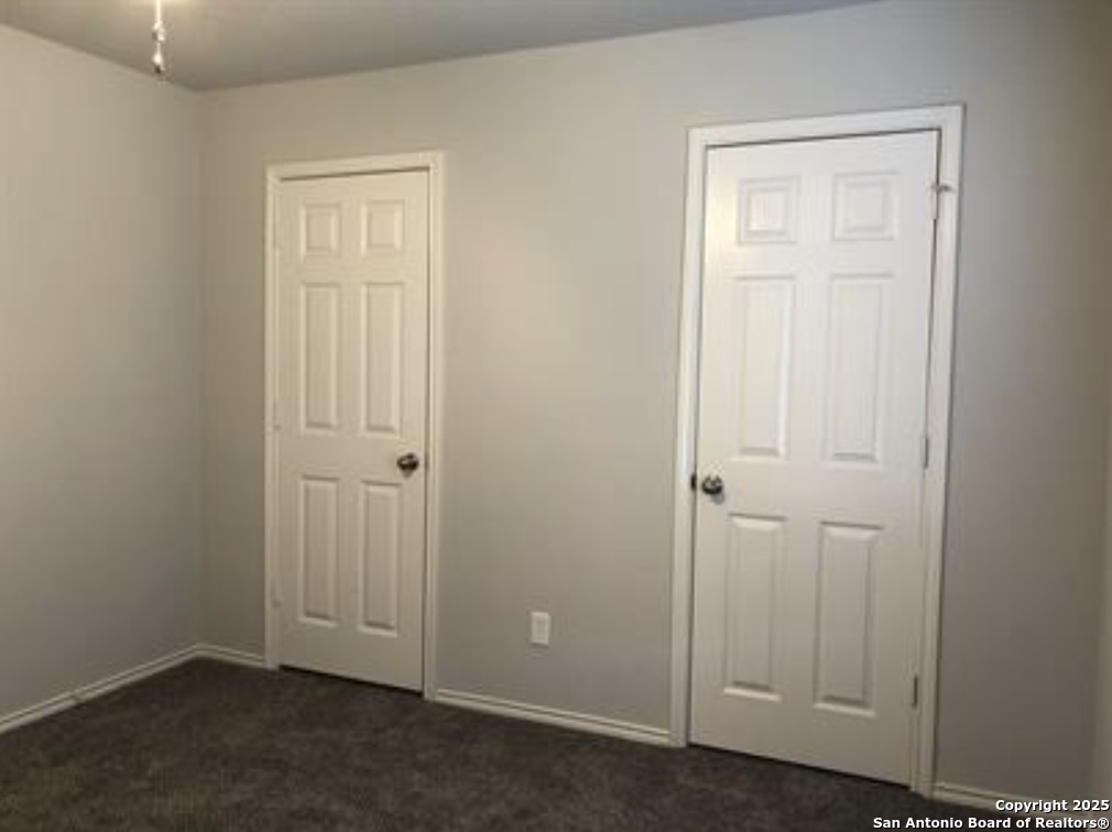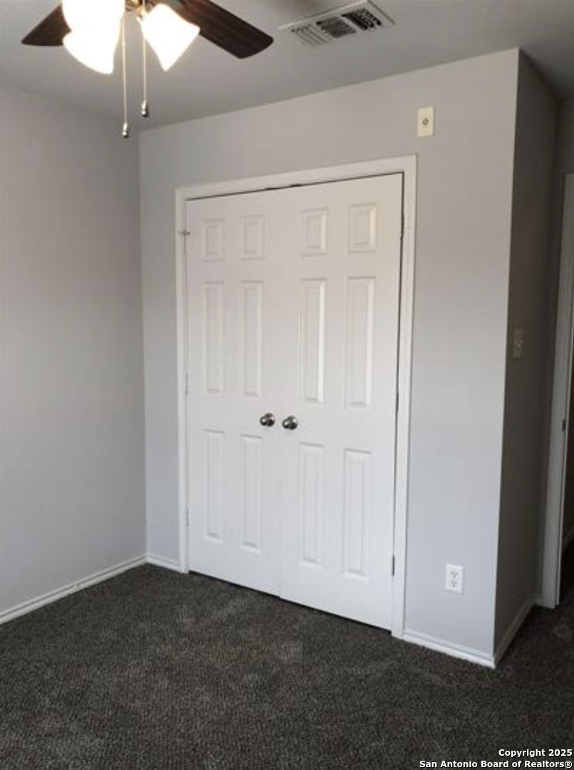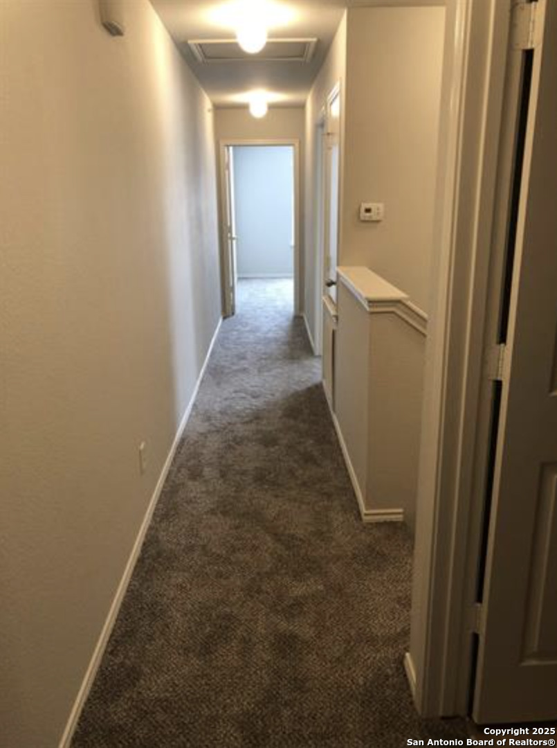 Tenant responsible for $130/month Water/Sewer Fee. Fantastic 2-story quadplex with attached 1-car garage! This spacious 3-bedroom, 2.5-bath home features stained concrete flooring on the main level and cozy carpet upstairs. Enjoy a bright and open living area and a well-appointed eat-in kitchen with a breakfast bar, solid countertops, microwave, stove/range, refrigerator and dishwasher. All bedrooms are upstairs, including a split master suite with multiple walk-in closets, ceiling fan, and a private full bath with single vanity. Generous secondary bedrooms offer plenty of space. Step outside to a private, fenced backyard with a patio-perfect for relaxing or entertaining. Conveniently located near shopping, The Forum, and offers an easy commute to Randolph AFB, SAMMC, and Ft. Sam Houston.