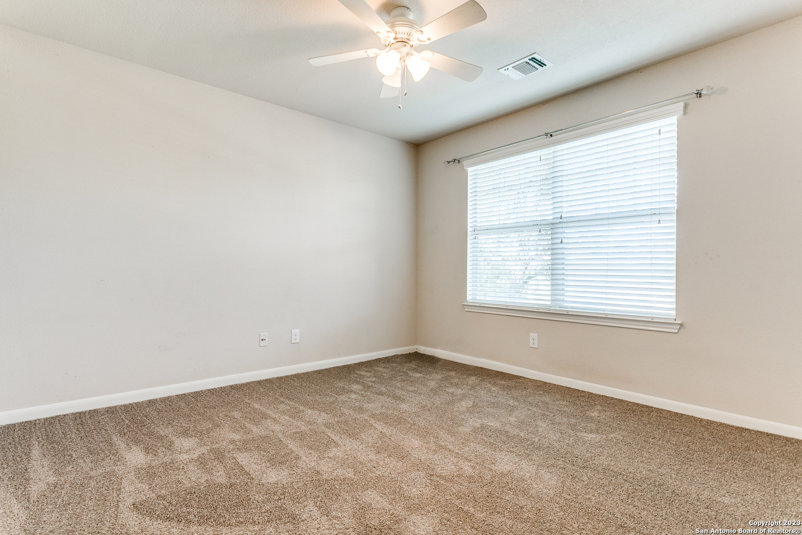 Nestled on a generous corner lot, this charming traditional home exudes charm and functionality. You will be immediately drawn to the manicured lawn and a driveway leading to the attached two-car garage. You are greeted into this home by a formal dining room, complete with soaring ceilings, wainscoting, and large windows to allow for ample natural light. The heart of this home lies in the open-concept living area, where the kitchen, living room, and breakfast nook seamlessly blend together. The kitchen boasts striking granite countertops, a convenient breakfast bar for casual dining, stainless steel appliances, and plenty of storage space. The living room is a cozy and welcoming space, featuring a wood burning fireplace and easy access to the backyard. The flex space upstairs offers you the extra room you require, whether it is for an office, playroom, or an additional family room. The primary bedroom is a true retreat within the home. It features an ensuite bathroom, offering a private oasis of relaxation and comfort. The outdoor area is a delightful extension of the living space. The backyard is graced with a covered patio, offering a shaded retreat for outdoor activities. The yard is adorned with numerous mature trees that not only provide natural beauty but also offer shade and privacy. With its close proximity to numerous shops and dining establishment and a short drive to some of San Antonio's most noted attractions, this home is a must see! Don't miss the chance to make it your next dream home before the holidays!