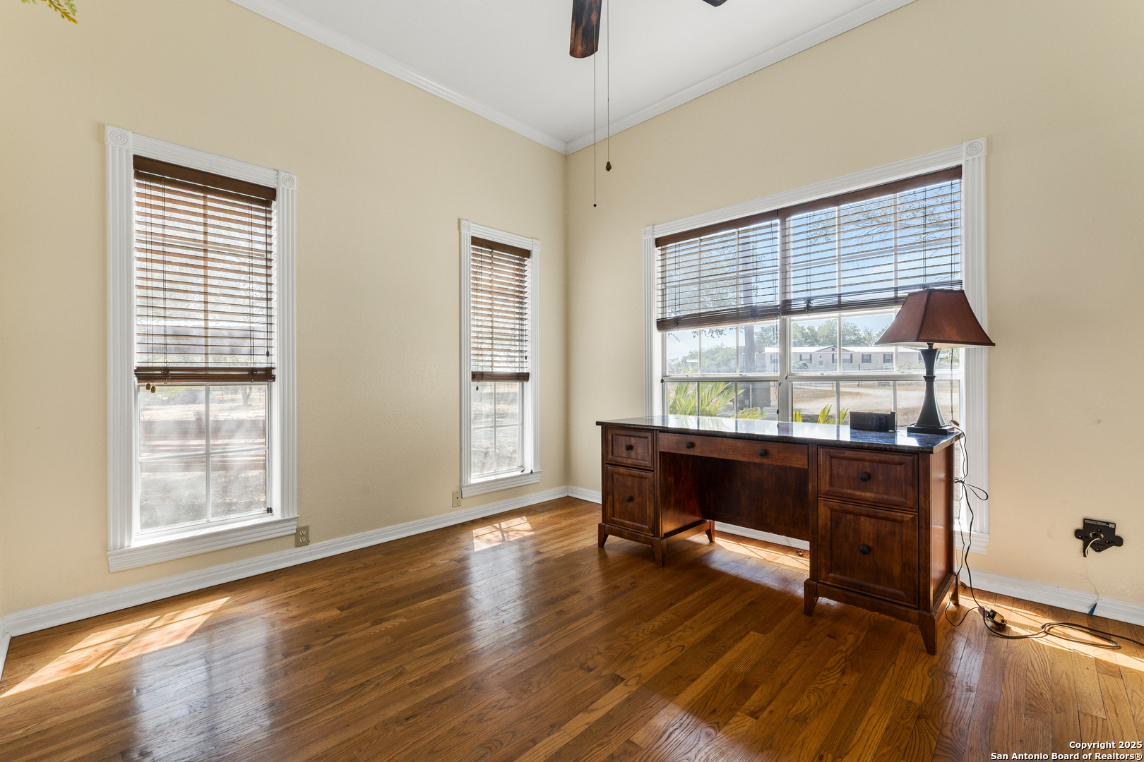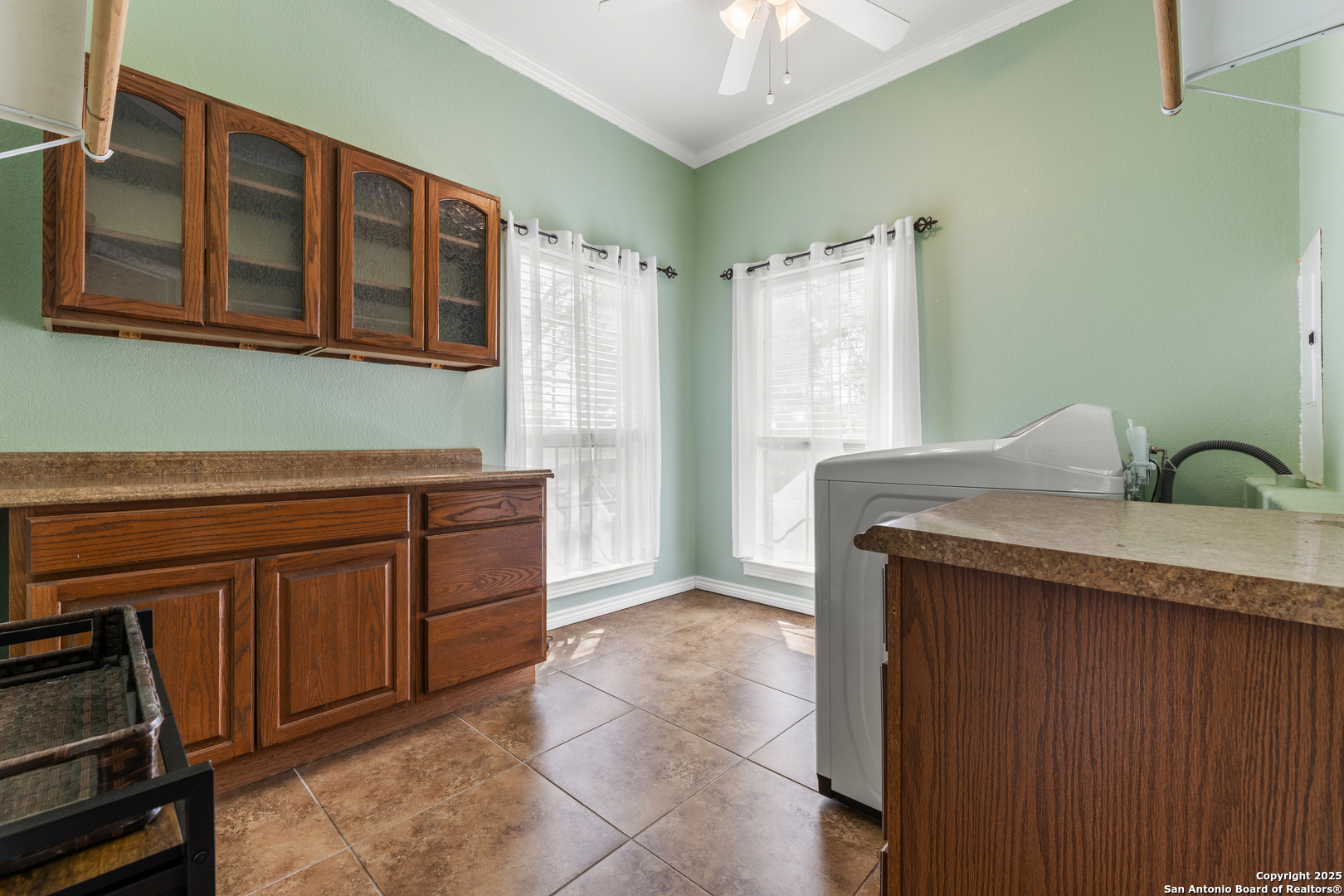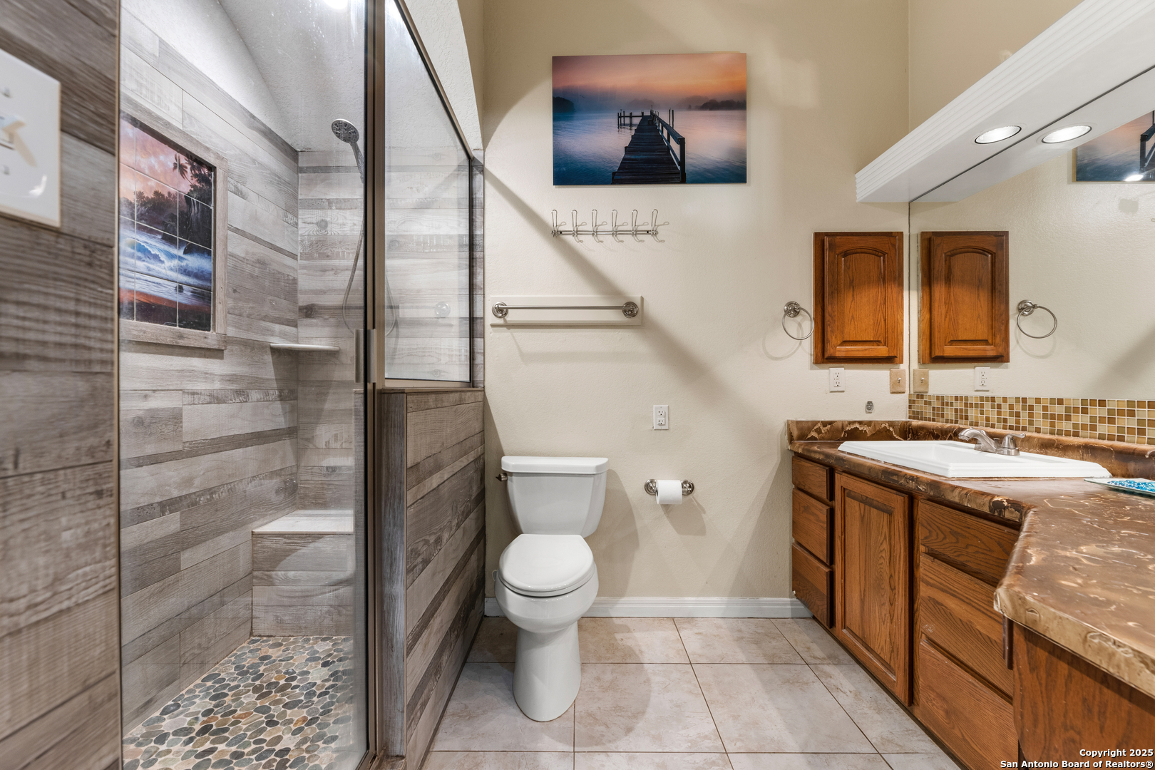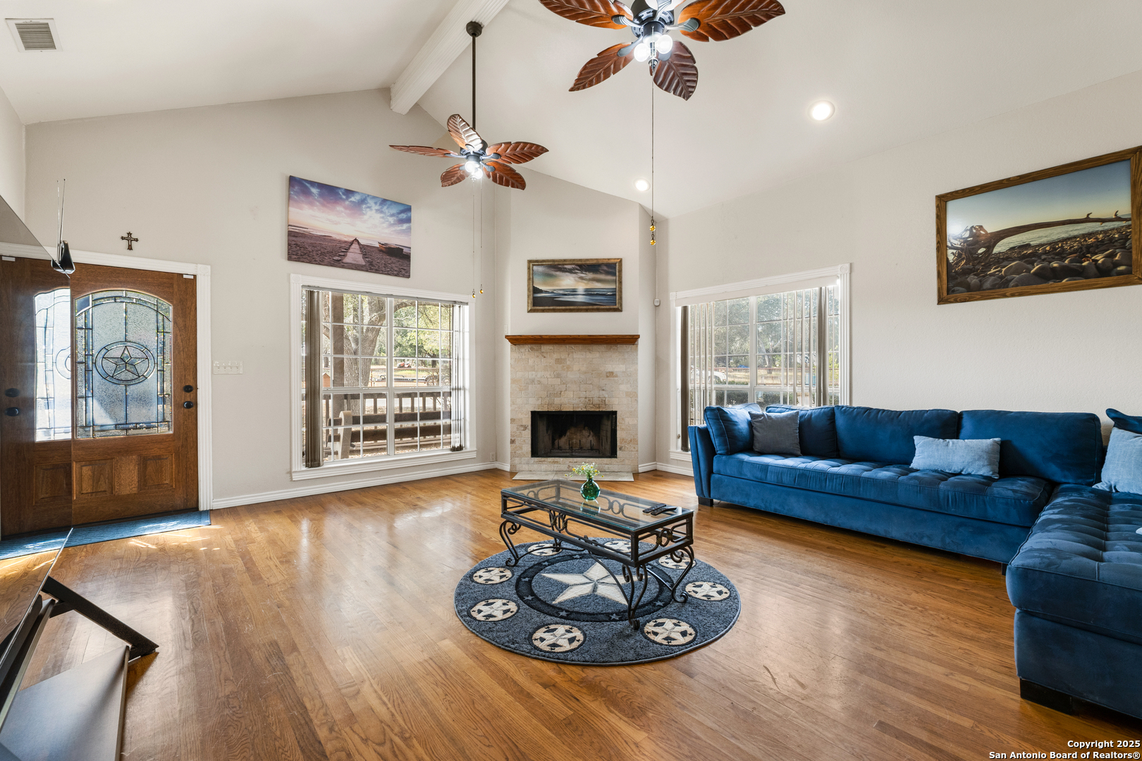 Incredible 40' x 25' workshop high ceiling workshop with roll up door on just over an 1ac. Home Offers beautiful hardwood and ceramic tile flooring throughout, along with two spacious living areas that offer endless versatility - perfect for a game room, media room, kids' play area, or in home gym. All appliances convey and furnishings are negotiable. Living room features a gorgeous stone fireplace with a custom wood mantle, two stylish ceiling fans, and large windows that fill the space with natural light. The kitchen is a true highlight, showcasing granite countertops, elegant glass tile backsplash, and custom rich dark-wood cabinetry. The master suite offers tiered ceilings, hardwood floors, generous closet space, and luxurious sliding glass doors leading out to the oversized back patio that runs the length of the back of the home. The master bath serves as your own private retreat, complete with an oversized tiled shower with a rock floor finish. The spacious yard provides plenty of room to relax or entertain. Adding even more value, the property includes guest quarters or office space above the two-car covered parking and a roomy dog kennel/run with an indoor/outdoor area for your furry companions. This home truly has it all and is an absolute must-see. Same day showings available and amazing opportunities with preferred lender offering no appraisal fee and lender credit.
