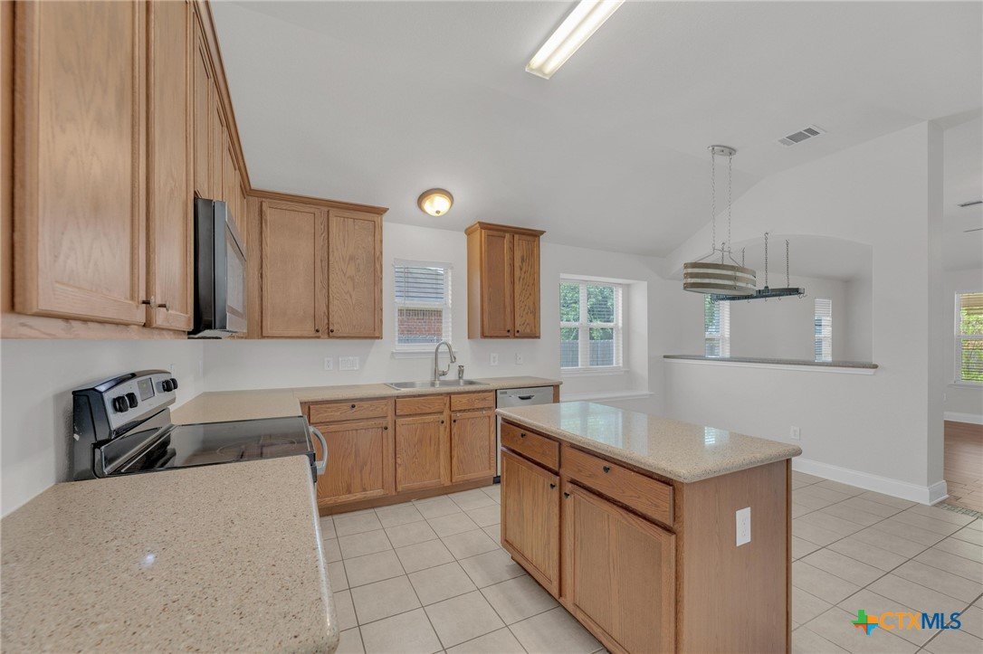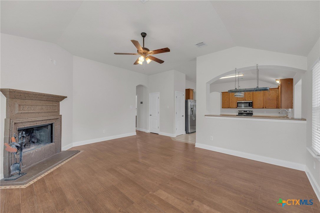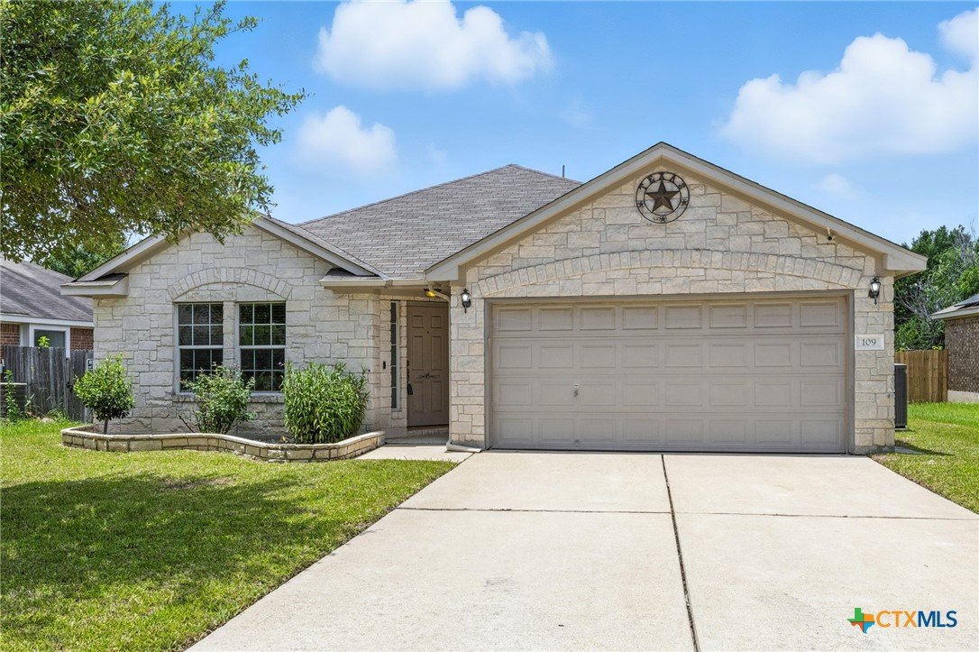FHA Assumable Loan at 3.5%. Welcome to a beautifully maintained 4-bedroom, 2-bath home nestled in the desirable Legends of Hutto community. This light and airy residence offers a spacious open floorplan with two inviting living areas and a formal dining space—perfect for entertaining or relaxing. The island kitchen is a chef’s delight, featuring stainless steel appliances and a cozy window seat that overlooks the backyard. The living room boasts wood-look tile flooring and a woodburning fireplace, adding warmth and character to the space. Additional highlights include a Smart thermostat for energy efficiency, Window tinting to help reduce heat and glare, Dedicated laundry room, Water softener system, Well-landscaped private yard with partial gutters and automatic sprinkler system. Enjoy proximity to shopping, dining, and local amenities, all while living in a peaceful, lovely neighborhood.