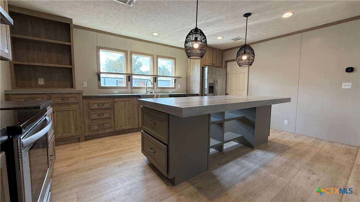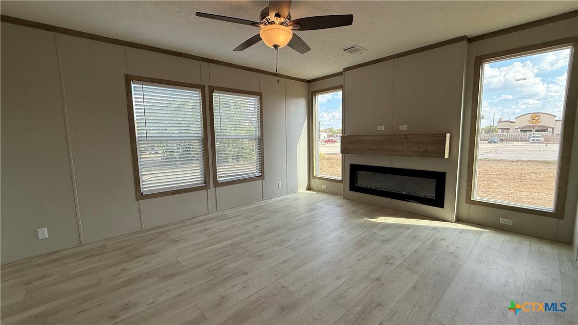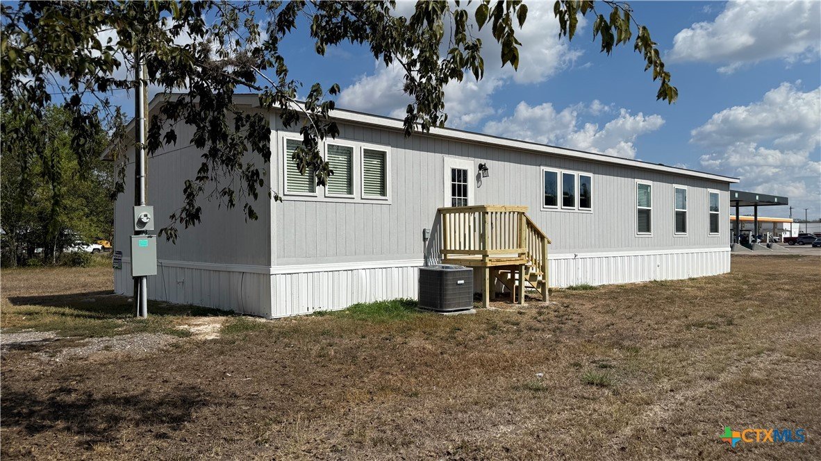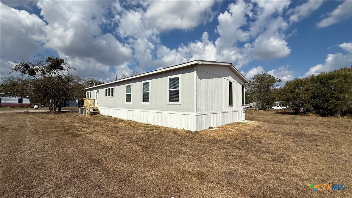Welcome home to this almost new 3-bedroom, 2-bath manufactured home set on a spacious lot in the heart of Cuero! From the fresh exterior with modern gray tones to the inviting front porch, this property blends clean design with comfortable living. Step inside to an open-concept floor plan filled with natural light. The large living area features easy-care wood-look flooring and a cozy electric fireplace, perfect for relaxing evenings. The kitchen impresses with its oversized island, pendant lighting, stainless steel appliances, and abundant cabinet space ideal for gatherings and everyday cooking alike. The primary suite offers a private retreat with a large bedroom and a stylish ensuite bath complete with dual vanities and modern fixtures. Additional bedrooms are generously sized, offering flexibility for guests, an office, or a hobby space. Outside, enjoy the wide-open yard plenty of room to garden, play, or add your own outdoor living touches. Conveniently located near Cuero’s schools, shopping, and major routes, this home delivers both comfort and convenience.