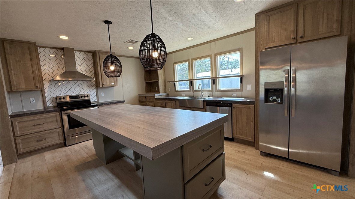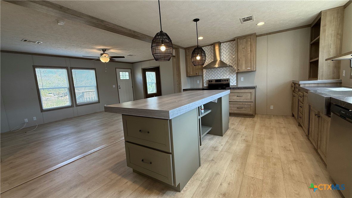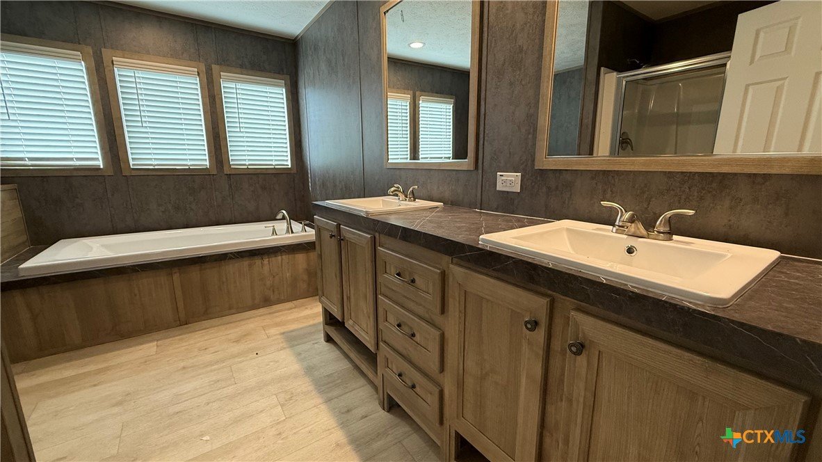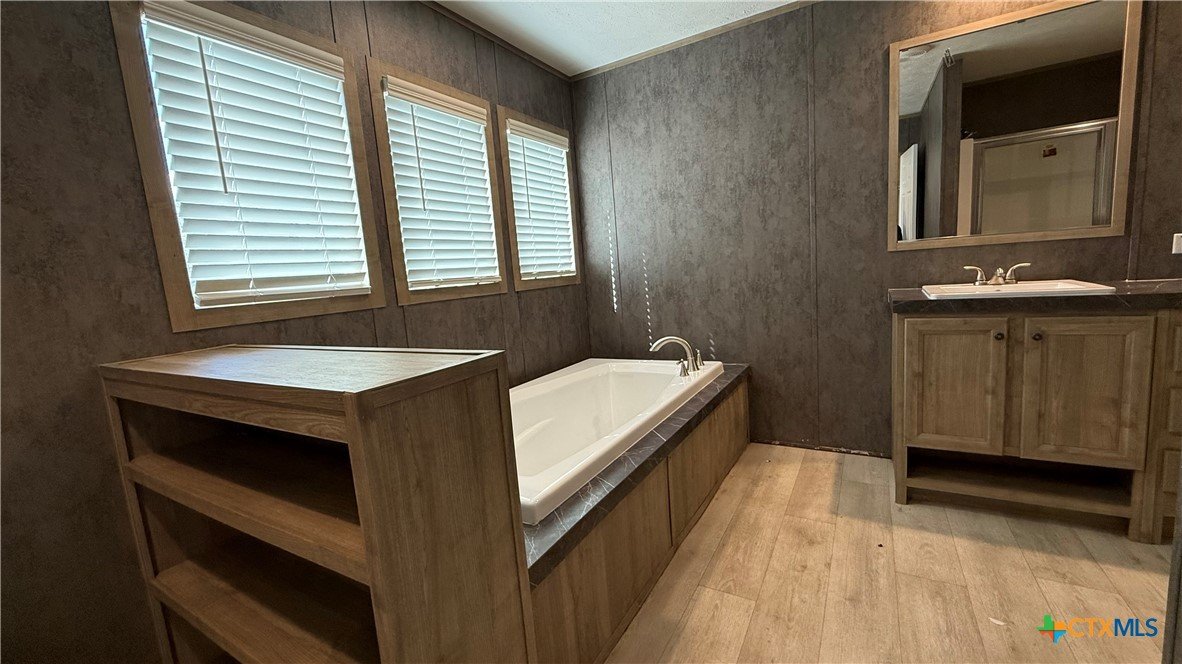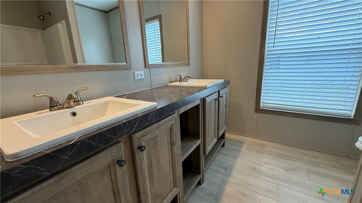 Welcome home to this almost new 3-bedroom, 2-bath manufactured home set on a spacious lot in the heart of Cuero! From the fresh exterior with modern gray tones to the inviting front porch, this property blends clean design with comfortable living. Step inside to an open-concept floor plan filled with natural light. The large living area features easy-care wood-look flooring and a cozy electric fireplace, perfect for relaxing evenings. The kitchen impresses with its oversized island, pendant lighting, stainless steel appliances, and abundant cabinet space ideal for gatherings and everyday cooking alike. The primary suite offers a private retreat with a large bedroom and a stylish ensuite bath complete with dual vanities and modern fixtures. Additional bedrooms are generously sized, offering flexibility for guests, an office, or a hobby space. Outside, enjoy the wide-open yard plenty of room to garden, play, or add your own outdoor living touches. Conveniently located near Cuero’s schools, shopping, and major routes, this home delivers both comfort and convenience.