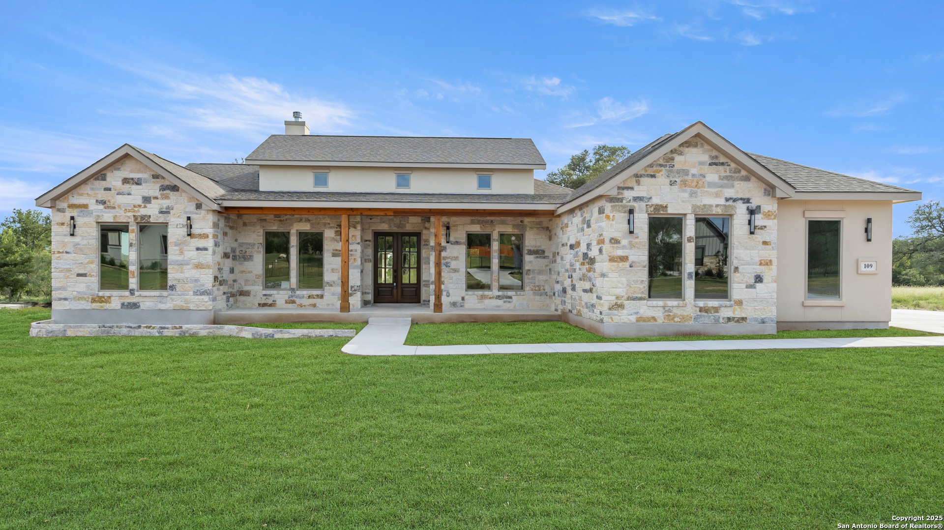 Complete New Construction Home! JLP Builders presents The Mulberry! This home has a generous open concept, family kitchen space and beautiful stone fireplace. Entertainers' kitchen includes GE Cafe appliance package with built-in double oven and 36 inch gas cooktop, over 11' of kitchen island, kitchen sink will look out on the back yard, decorative floating shelves and plentiful soft close cabinetry. The master bathroom retreat has left no detail overlooked with freestanding tub, walk through shower with tile to the ceiling, dual vanities and a walk-in closet with thoughtful built-in shelving and a full-length mirror. Perfectly appointed bedrooms with nice separation for privacy with one secondary bedroom with its ensuite bathroom. Many thoughtful details with 3 car garage, powder bath, extra butler's pantry, and laundry room cabinets for extra storage to keep things tidy. Builder Warranty included for peace of mind. This home is perfectly situated amongst beautiful oaks trees, on a quiet, cul-de-sac street. Come check out this quiet hill country community with miles of hiking trails, close proximity to Krause Springs, Lakecliff Country Club, Oppie's BBQ, Poodie's Hilltop Roadhouse and many local Vineyards! Take a quick drive to picturesque Marble Falls or Horseshoe Bay for the day. Enjoy Hill Country Living!