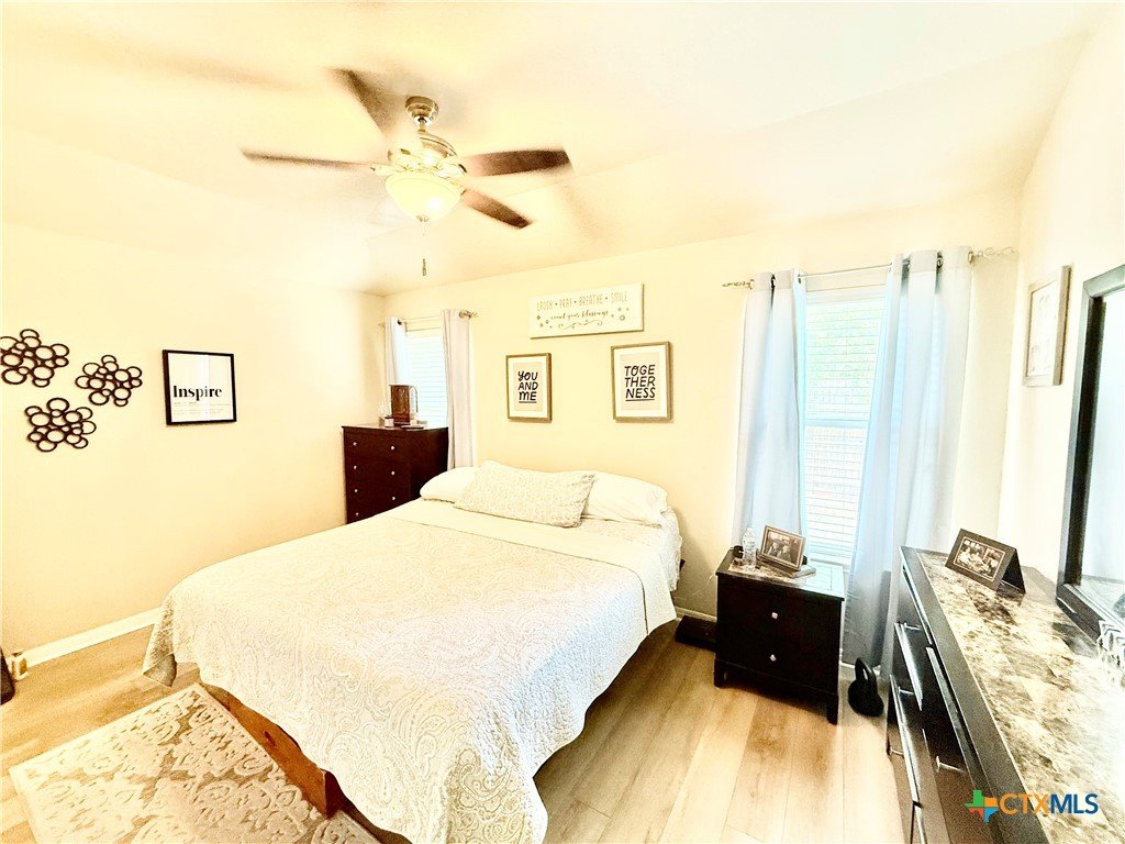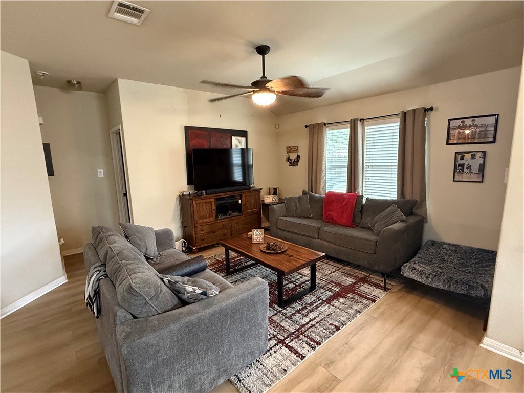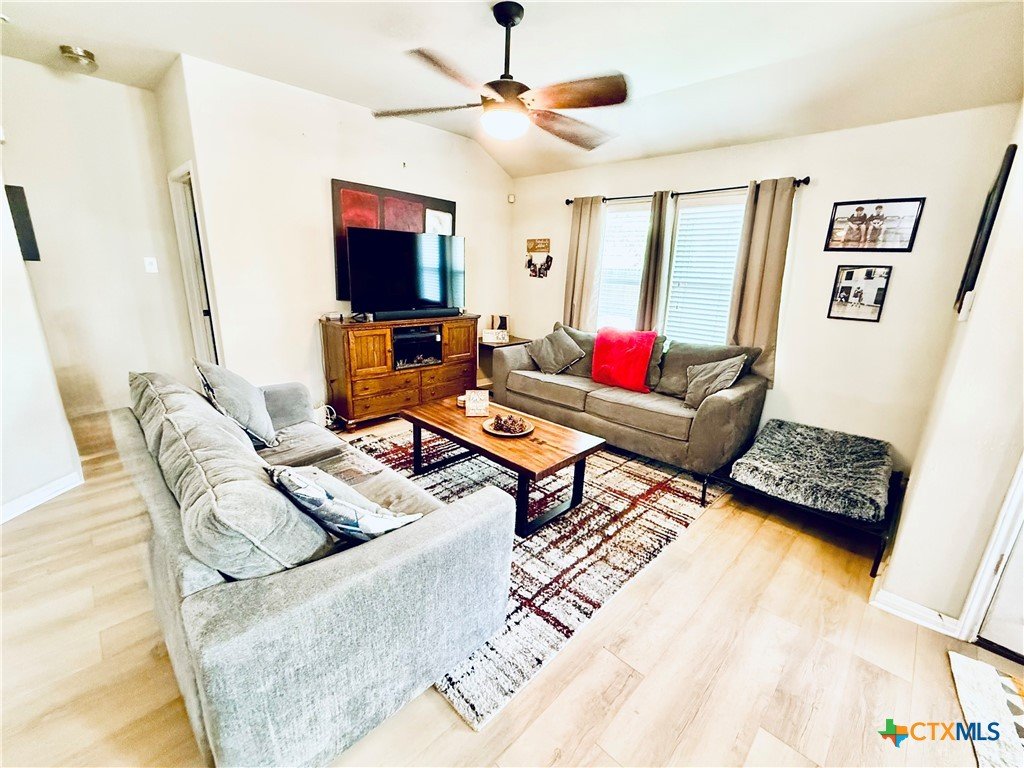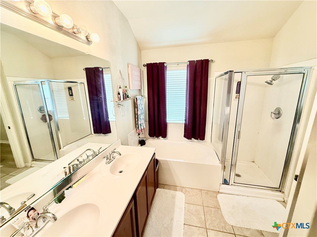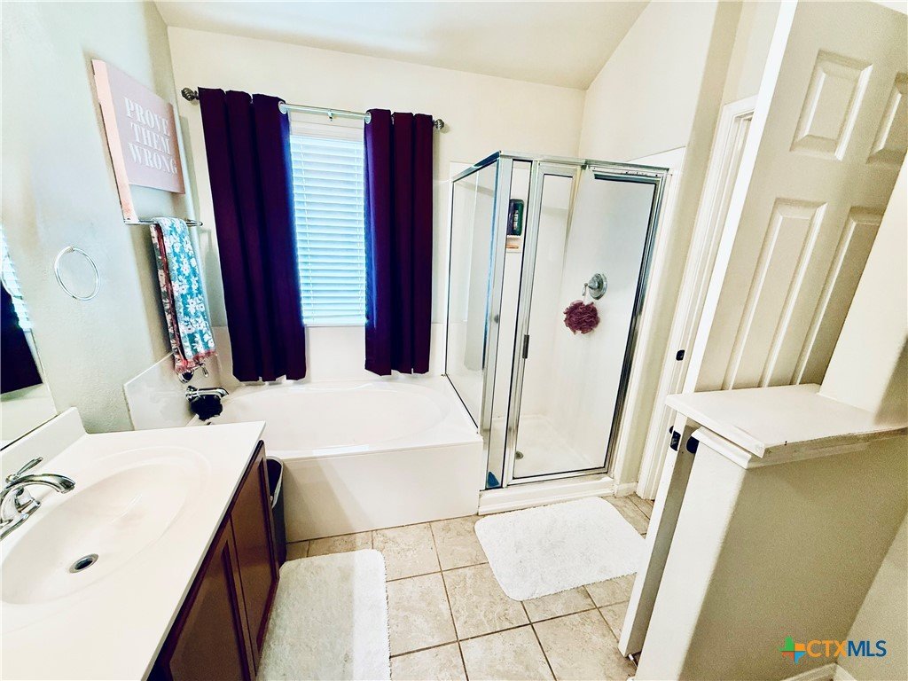 This beautifully maintained home offers thoughtful upgrades throughout, making it move-in ready and perfect for comfortable living. The homeowner has added a personal touch by custom-painting the kitchen cabinets, creating a warm and welcoming atmosphere. The kitchen also features updated countertops and is open to the living room—ideal for entertaining or spending time with family while cooking. Enjoy the durability and style of tile flooring throughout—no carpet anywhere. The spacious primary suite includes a relaxing soaking tub, a separate shower, and a generous walk-in closet. Step outside to a covered back patio and a fully fenced backyard, perfect for enjoying your morning coffee or hosting weekend BBQs. Conveniently located in the El Camino Real community just off Hwy 123, you're only minutes from I-35, shopping, dining, and Texas State University. Don't miss this opportunity to own a well-cared-for home in a growing area of San Marcos!