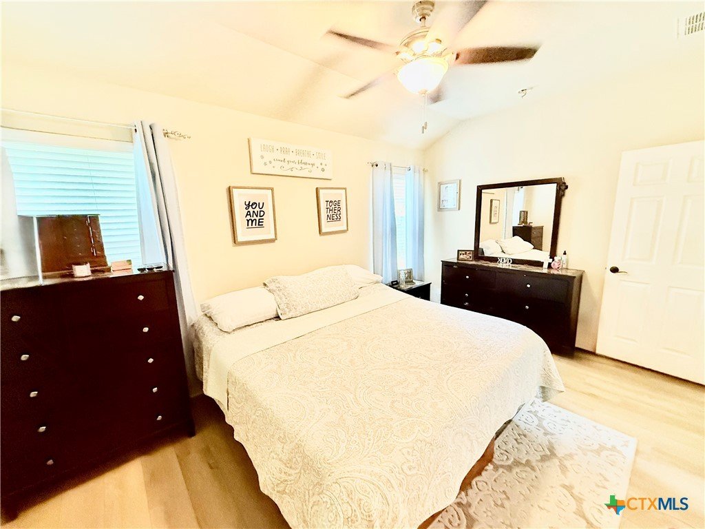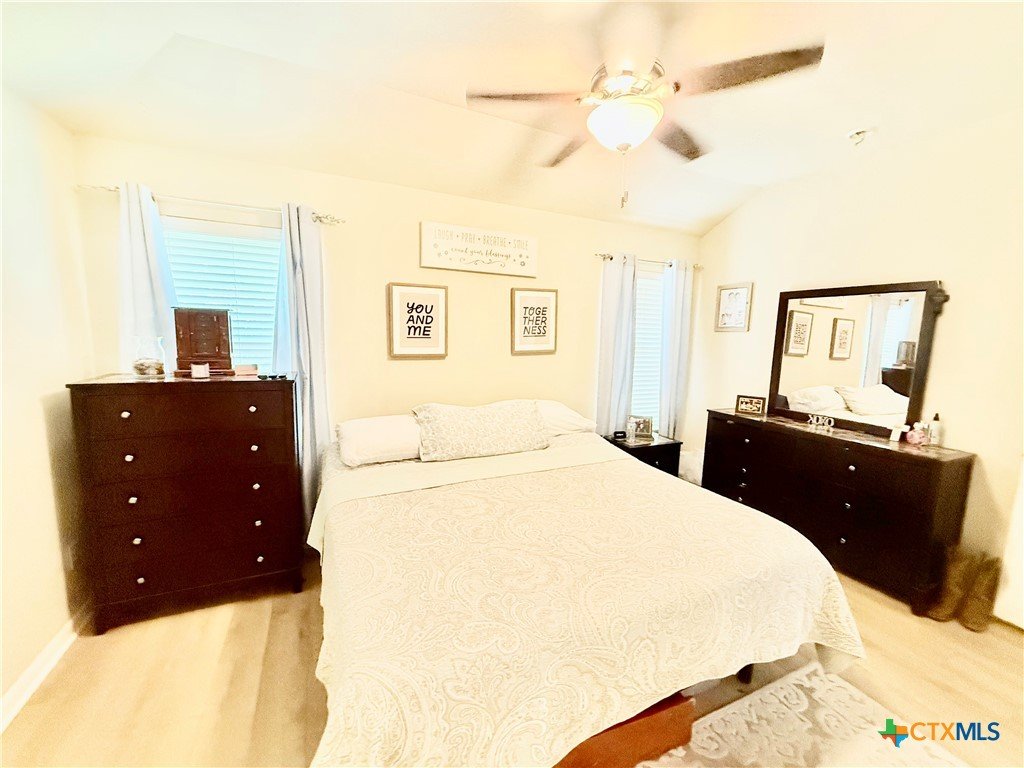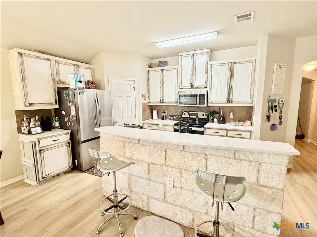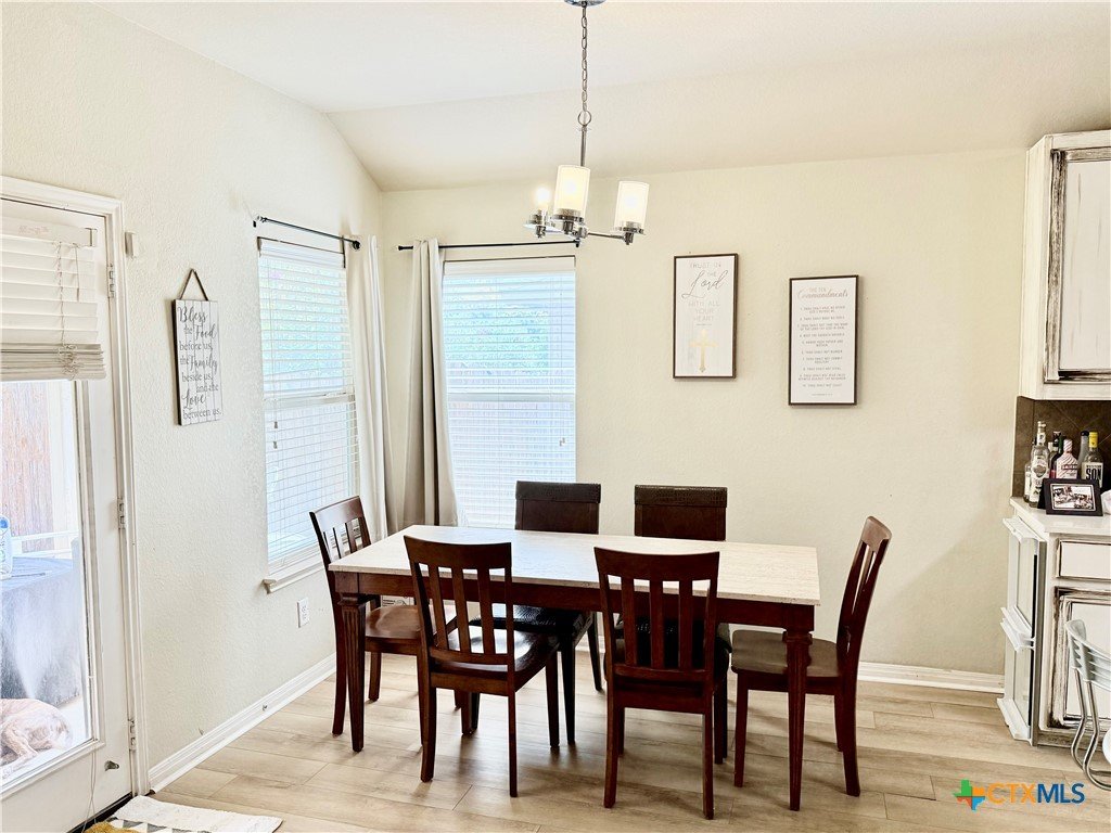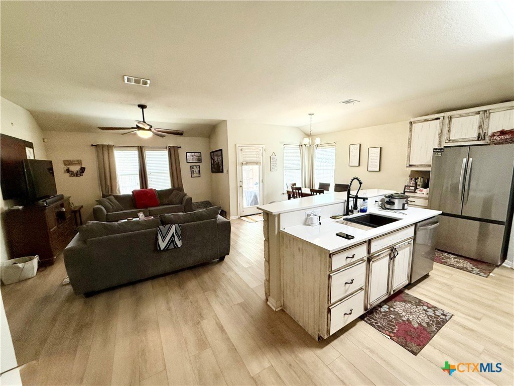 This beautifully maintained home offers thoughtful upgrades throughout, making it move-in ready and perfect for comfortable living. The homeowner has added a personal touch by custom-painting the kitchen cabinets, creating a warm and welcoming atmosphere. The kitchen also features updated countertops and is open to the living room—ideal for entertaining or spending time with family while cooking. Enjoy the durability and style of tile flooring throughout—no carpet anywhere. The spacious primary suite includes a relaxing soaking tub, a separate shower, and a generous walk-in closet. Step outside to a covered back patio and a fully fenced backyard, perfect for enjoying your morning coffee or hosting weekend BBQs. Conveniently located in the El Camino Real community just off Hwy 123, you're only minutes from I-35, shopping, dining, and Texas State University. Don't miss this opportunity to own a well-cared-for home in a growing area of San Marcos!