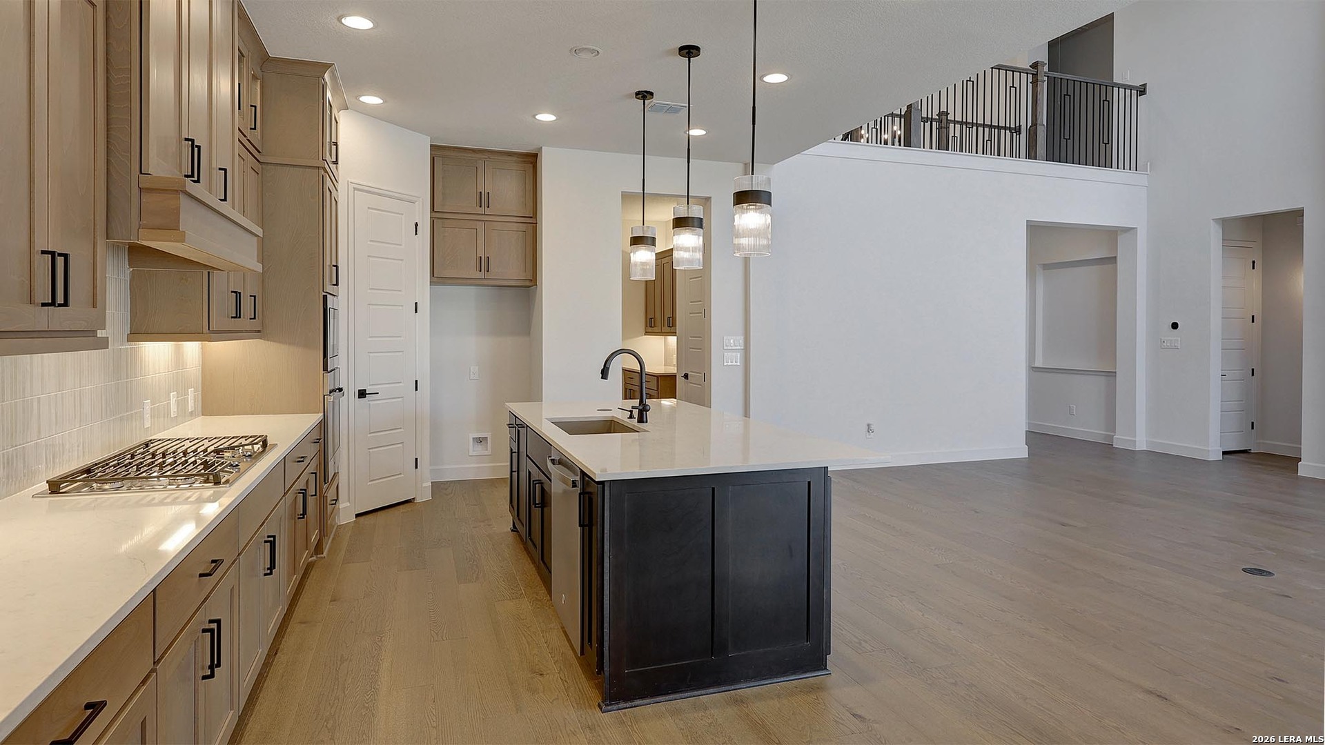 Step off the front porch into a grand entryway boasting a 20-foot ceiling and curved staircase. Hardwood floors throughout first floor living areas. French doors open into the home office. Dining room is adjacent from the office. Past the stairs you enter the open family room with a sliding glass door, wood mantel fireplace and extended ceilings. The morning area connects the living area and the kitchen. An island with built-in seating, 5-burner gas cooktop, corner walk-in pantry and butler's pantry provide additional storage. The primary bedroom hosts a wall of windows. French doors open into the primary bathroom which features dual vanities, a freestanding tub, a separate glass enclosed shower, and two walk-in closets. A private guest suite is off of the morning area and features a walk-in closet and private bathroom. Upstairs you are greeted by a game room which overlooks the main floor and a theatre room. Secondary bedrooms which boast walk-in closets and a Hollywood bathroom as well as an additional guest suite complete the second floor. Extended covered backyard patio and a 7-zone sprinkler system. The mud room, utility room, and additional storage area off of the porte-cochere four-car garage.