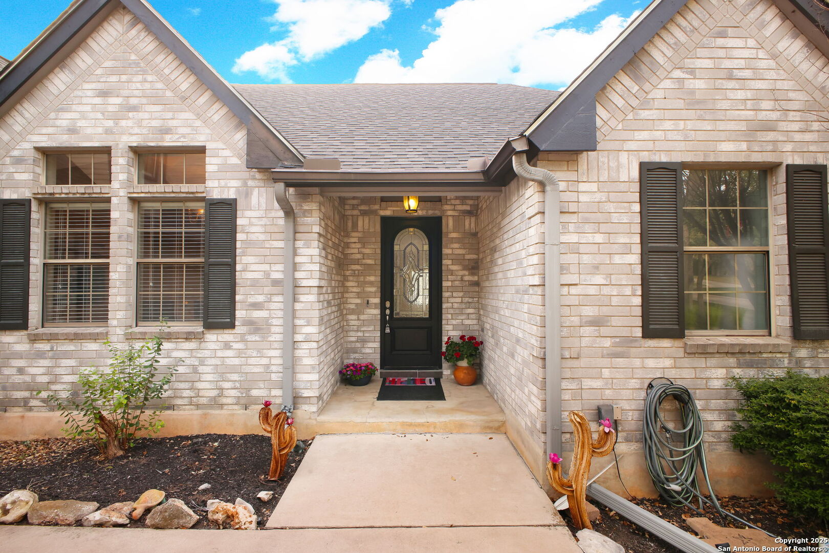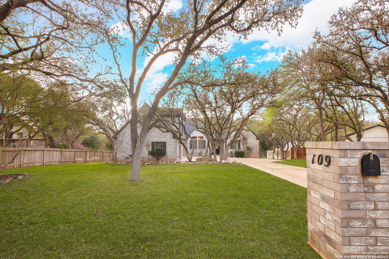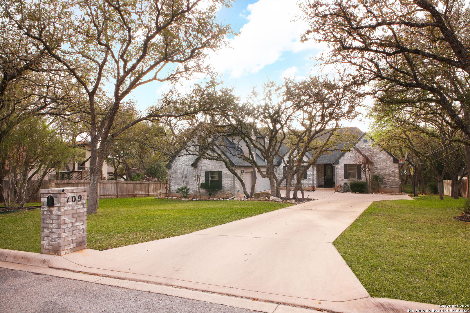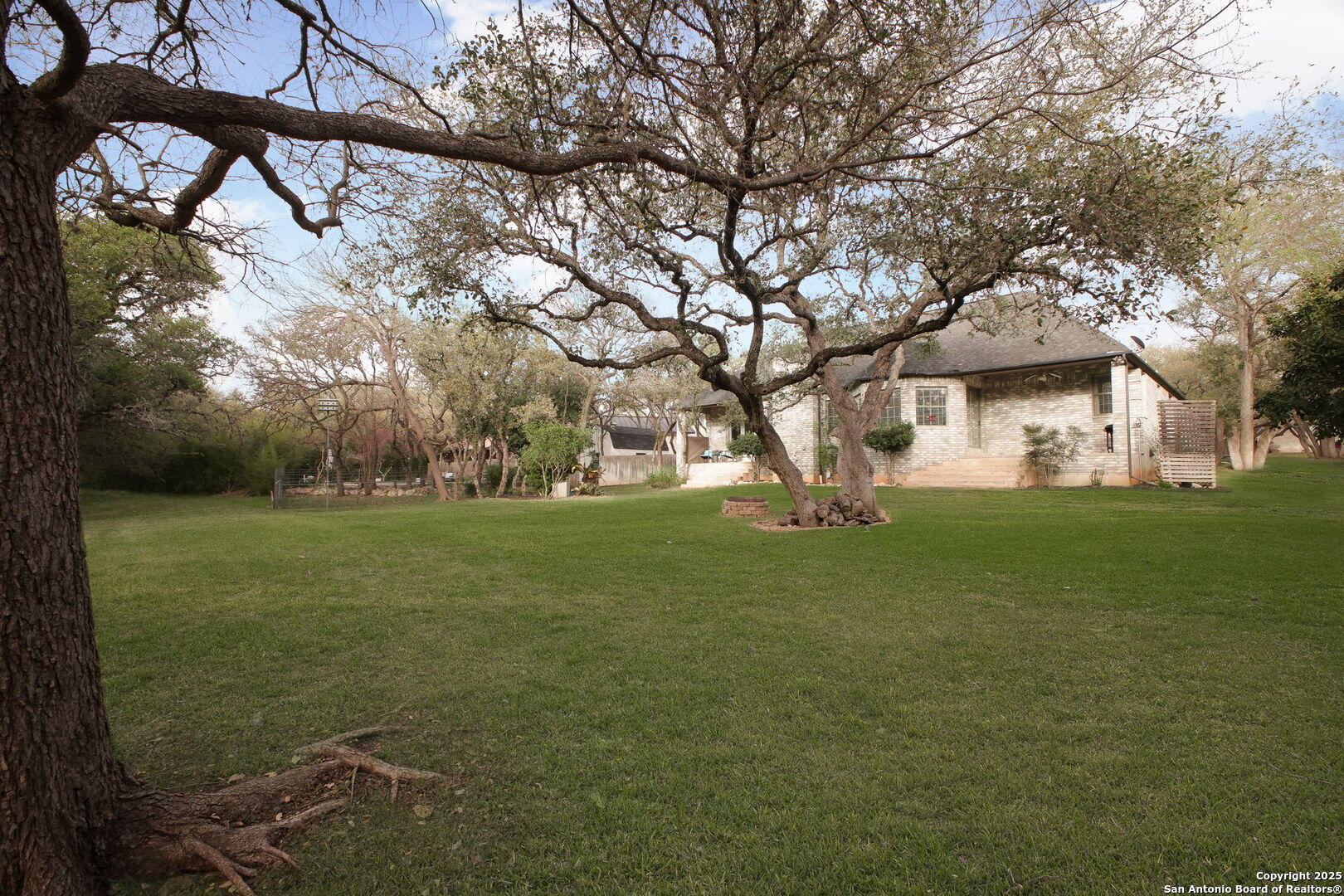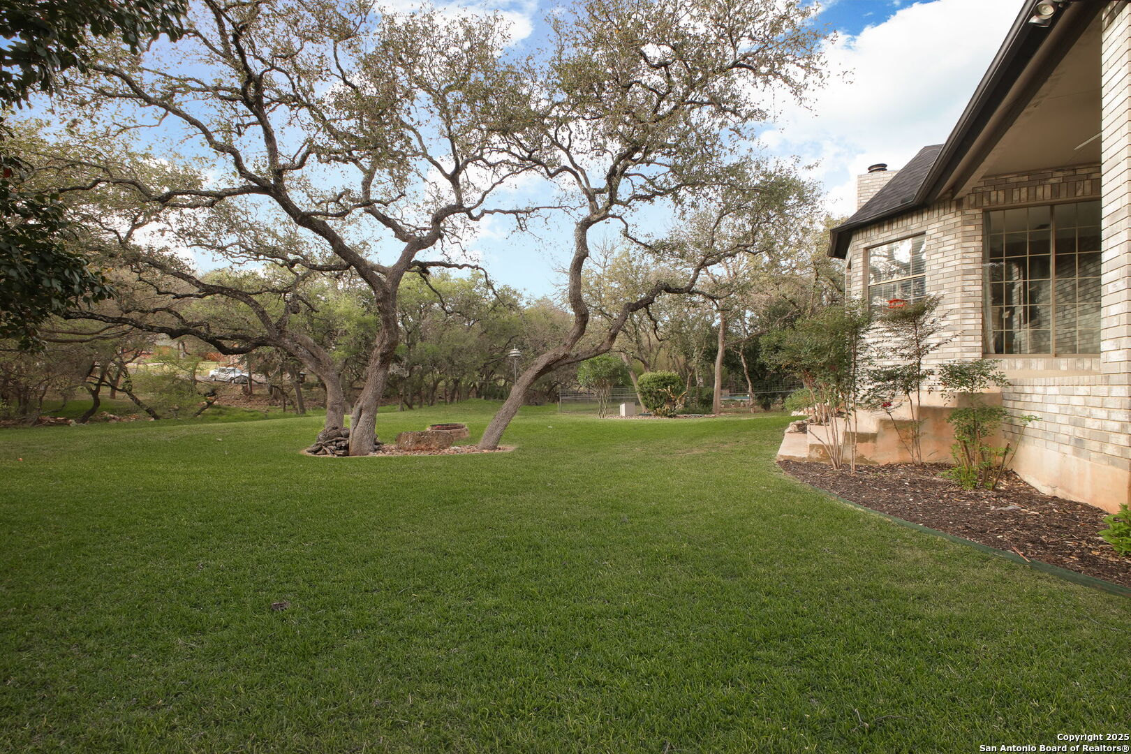 This home is a former Spurs players home #30, Paul Griffin (1979-1983) standing out from the other homes w custom 9 Ft doors and tall ceilings. Nestled on a picturesque half-acre lot in the heart of Hollywood Park, this stunning 1992 custom-built home offers the perfect blend of privacy, elegance, and convenience. Designed for a former San Antonio Spur, this one-and-a-half-story, all-brick residence is a nature lover's paradise, boasting over 50 mature live oak trees and backing up to a tranquil greenbelt. With double patios and breathtaking views, this property provides a peaceful retreat while remaining just minutes from city amenities. Step inside to discover an open floor plan with soaring ceilings, 8-foot interior wood doors, and abundant natural light. The spacious living area features a charming brick fireplace and built-in storage, seamlessly connecting to the formal dining room and eat-in kitchen. The kitchen is a chef's dream, showcasing an all-brick hearth alcove surrounding the cooktop, double ovens, granite countertops, a center island, and a built-in multipurpose desk. The well-designed split floor plan offers exceptional privacy, with a generous primary suite on the north wing of the home. This serene retreat features floor-to-ceiling windows, access to a private patio, dual walk-in closets, a double vanity, a jacuzzi tub, and a separate walk-in shower. On the opposite end of the home, two spacious guest bedrooms share a Jack-and-Jill bath. The large laundry center includes a utility sink, storage closet, and additional cabinetry for convenience. Above the attached three-car garage, a private guest suite with a full bath and walk-in closet offers flexible space for visitors offering two primary en suites Which is rare for this Hollywood Park neighborhood. Throughout the home, wood and tile flooring add warmth and character. Recent updates include a new roof (2024), new septic aerator (Dec 2024), 5-ton compressor (2024), new air handler (Dec 2024), and a new water heater (2024). Hollywood Park offers an incredible lifestyle with a $5 million resort-style facility featuring a clubhouse, covered pavilion with grills, three pools, a splash area, a playground, two tennis courts, a full-size basketball court, and a sand volleyball court. The neighborhood hosts over 20 community events throughout the year, including Santa personally delivering gifts to homes, a Fourth of July parade, Halloween festivities, Easter celebrations, Cookies with Santa, back-to-school and end-of-the-year swim parties, and so much more