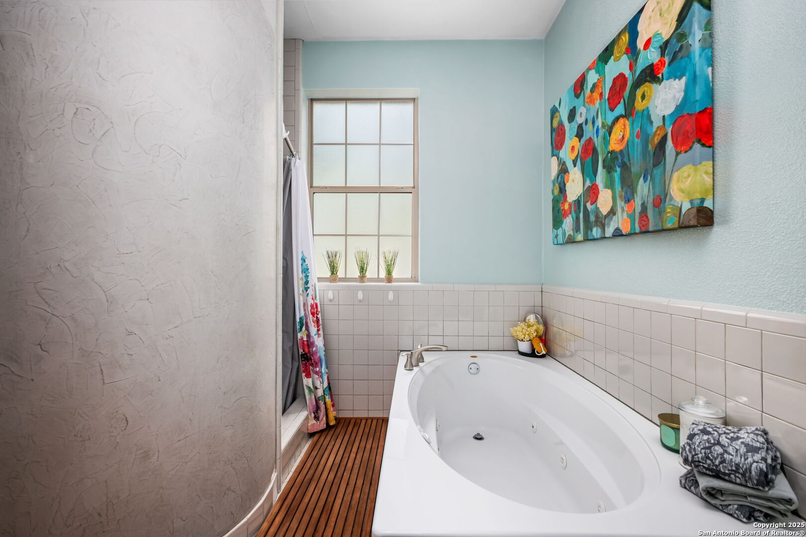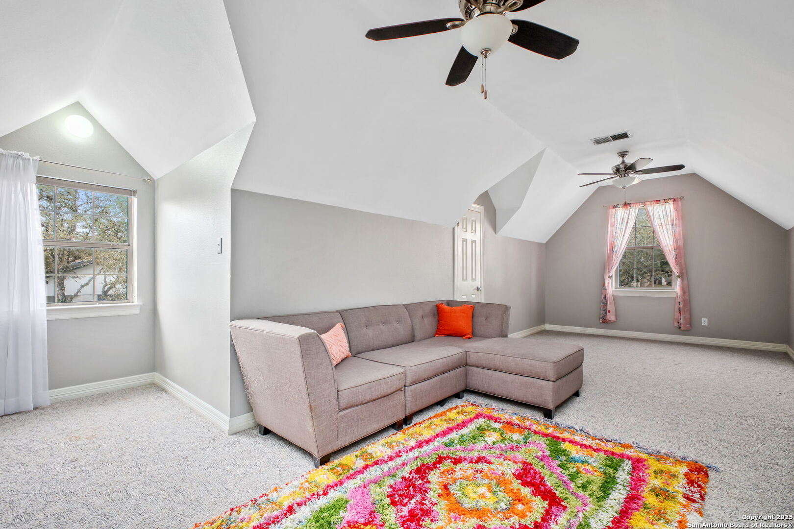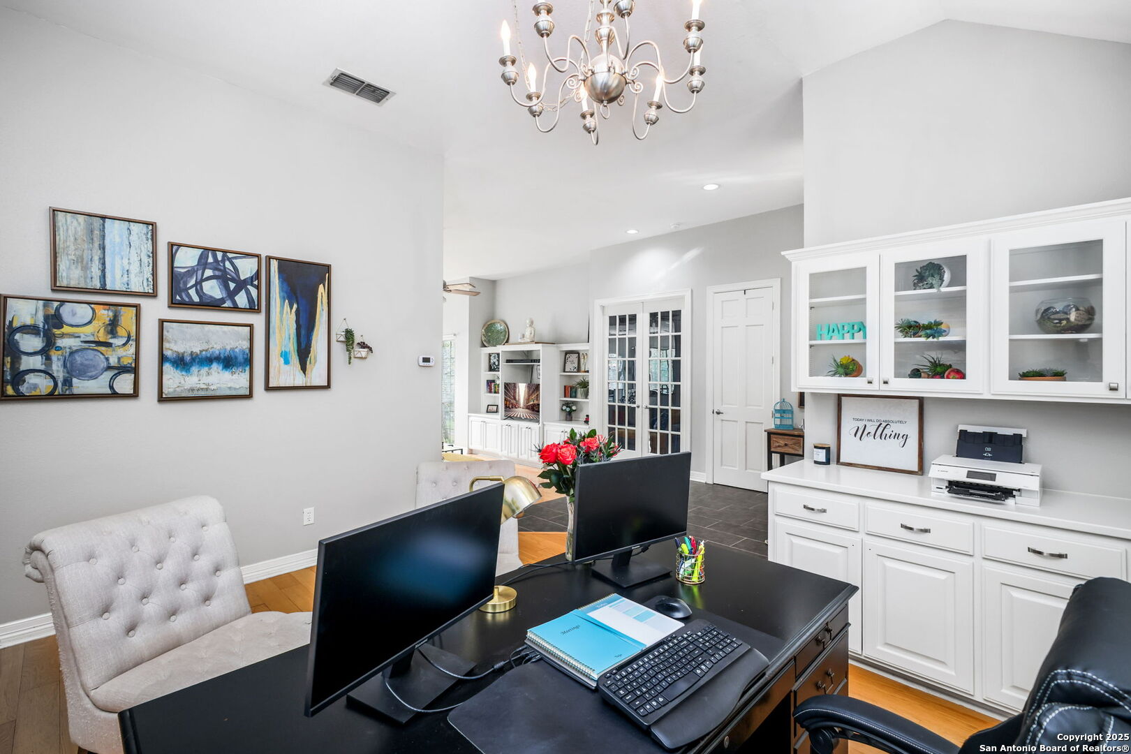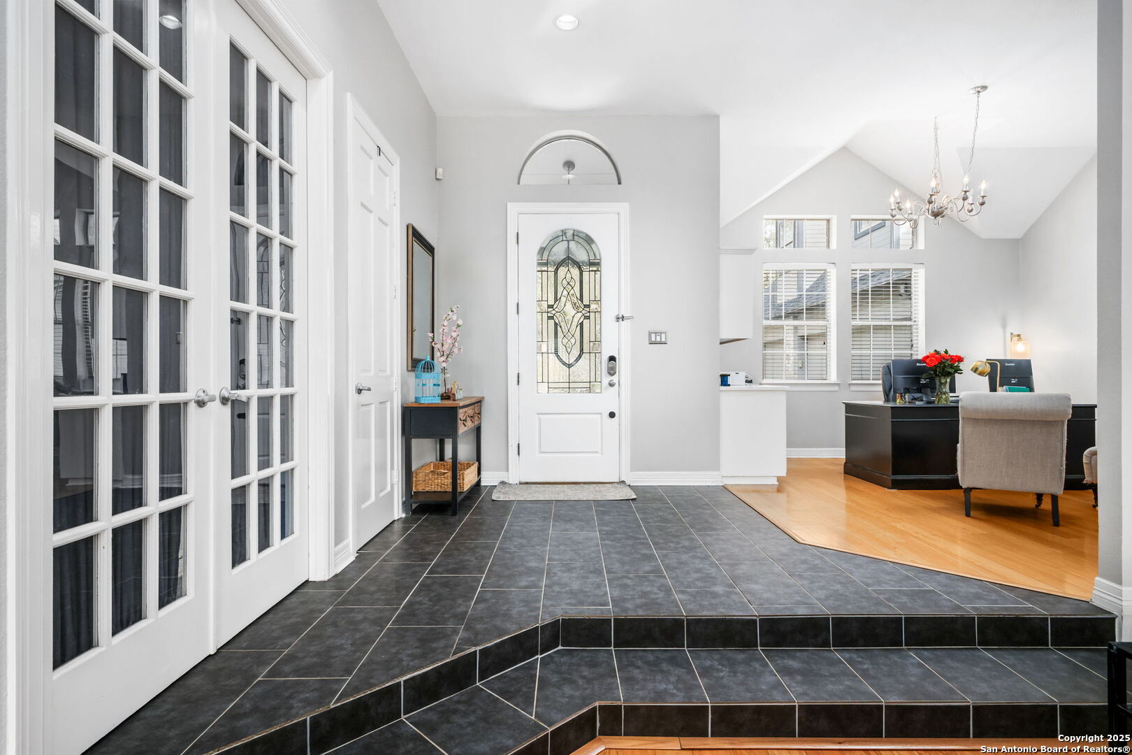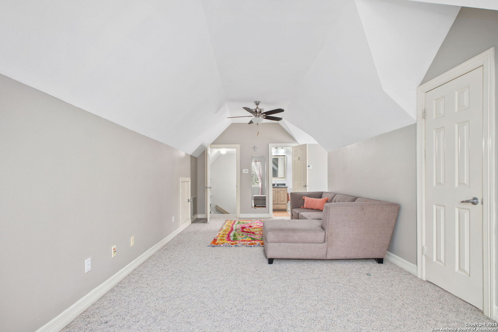 This home is a former Spurs players home #30, Paul Griffin (1979-1983) standing out from the other homes w custom 9 Ft doors and tall ceilings. Nestled on a picturesque half-acre lot in the heart of Hollywood Park, this stunning 1992 custom-built home offers the perfect blend of privacy, elegance, and convenience. Designed for a former San Antonio Spur, this one-and-a-half-story, all-brick residence is a nature lover's paradise, boasting over 50 mature live oak trees and backing up to a tranquil greenbelt. With double patios and breathtaking views, this property provides a peaceful retreat while remaining just minutes from city amenities. Step inside to discover an open floor plan with soaring ceilings, 8-foot interior wood doors, and abundant natural light. The spacious living area features a charming brick fireplace and built-in storage, seamlessly connecting to the formal dining room and eat-in kitchen. The kitchen is a chef's dream, showcasing an all-brick hearth alcove surrounding the cooktop, double ovens, granite countertops, a center island, and a built-in multipurpose desk. The well-designed split floor plan offers exceptional privacy, with a generous primary suite on the north wing of the home. This serene retreat features floor-to-ceiling windows, access to a private patio, dual walk-in closets, a double vanity, a jacuzzi tub, and a separate walk-in shower. On the opposite end of the home, two spacious guest bedrooms share a Jack-and-Jill bath. The large laundry center includes a utility sink, storage closet, and additional cabinetry for convenience. Above the attached three-car garage, a private guest suite with a full bath and walk-in closet offers flexible space for visitors offering two primary en suites Which is rare for this Hollywood Park neighborhood. Throughout the home, wood and tile flooring add warmth and character. Recent updates include a new roof (2024), new septic aerator (Dec 2024), 5-ton compressor (2024), new air handler (Dec 2024), and a new water heater (2024). Hollywood Park offers an incredible lifestyle with a $5 million resort-style facility featuring a clubhouse, covered pavilion with grills, three pools, a splash area, a playground, two tennis courts, a full-size basketball court, and a sand volleyball court. The neighborhood hosts over 20 community events throughout the year, including Santa personally delivering gifts to homes, a Fourth of July parade, Halloween festivities, Easter celebrations, Cookies with Santa, back-to-school and end-of-the-year swim parties, and so much more