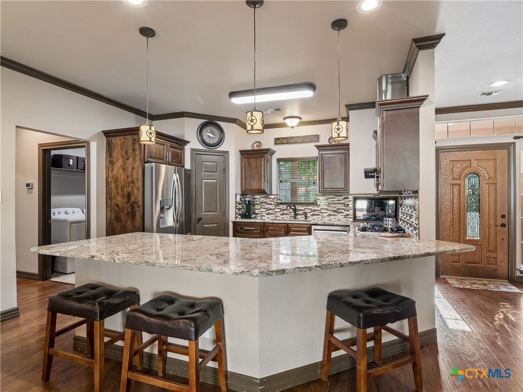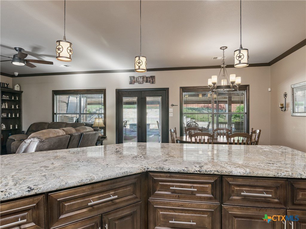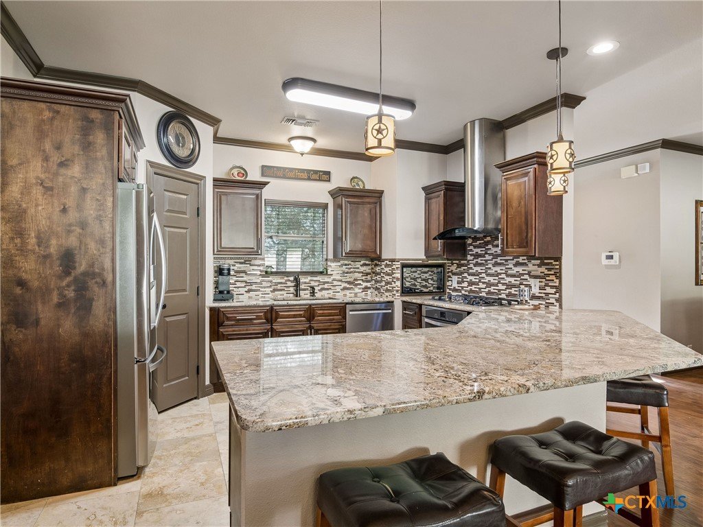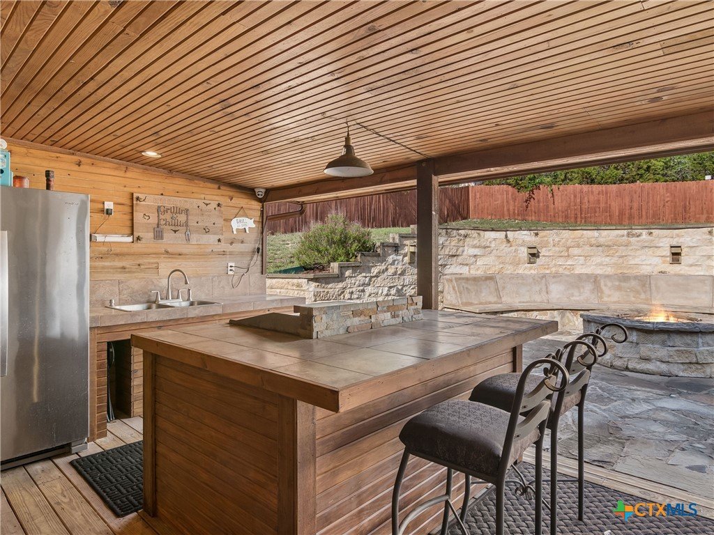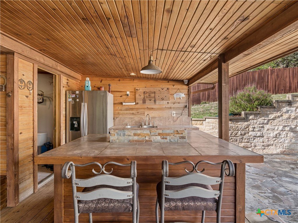 Nestled in the scenic Texas Hill Country, this inviting property at 1090 Grand Pass in Canyon Lake offers the perfect blend of tranquility and convenience. Surrounded by mature trees and natural beauty, the home provides a peaceful retreat while still being just minutes from Canyon Lake, local parks, and popular dining spots. Inside, you’ll find a thoughtfully designed layout creating a warm and welcoming atmosphere. The kitchen is well-equipped for everyday living and entertaining, featuring gas cooking, ample cabinetry, and generous workspace. Comfortable bedrooms provide restful retreats, while the primary suite offers privacy and functionality. Significant updates add peace of mind, including a roof replaced in June 2021 and an HVAC system updated in April 2022. Step outside to truly appreciate everything this property has to offer. The outdoor living space is a standout feature, complete with a fully equipped outdoor kitchen featuring a commercial-grade griddle—perfect for hosting gatherings. A convenient half bathroom is located near the outdoor kitchen, making entertaining even easier. The expansive space also includes covered RV or boat parking, ideal for those looking to enjoy nearby Canyon Lake to the fullest. Whether you’re relaxing with your morning coffee, entertaining guests, or enjoying the serene Hill Country surroundings, this property offers a versatile lifestyle. Conveniently located with easy access to highways, shopping, and recreation, this home is a fantastic opportunity to experience the best of Canyon Lake living.