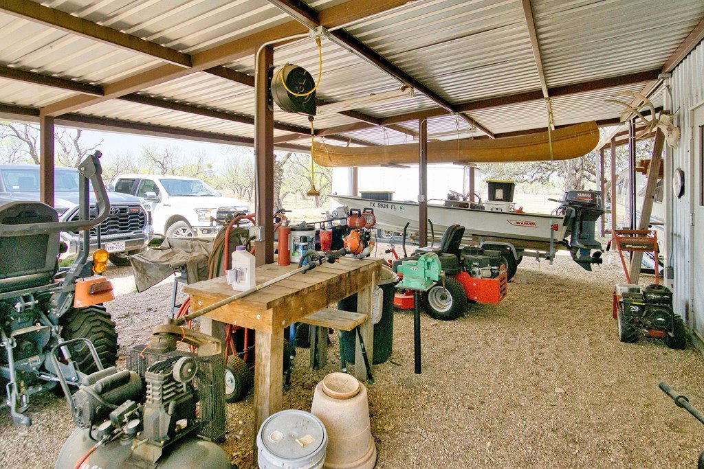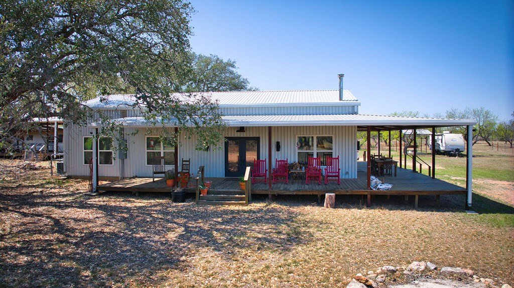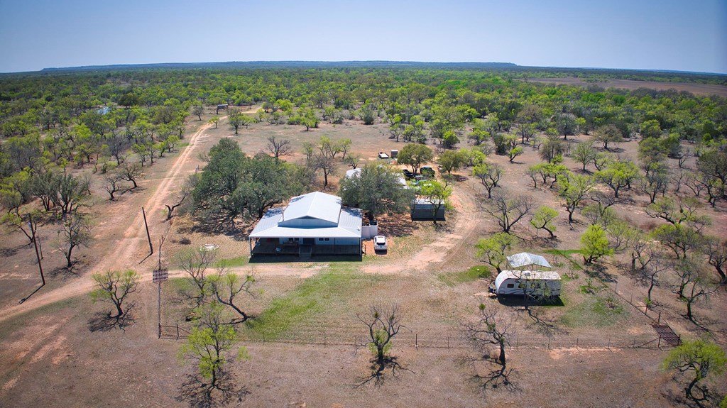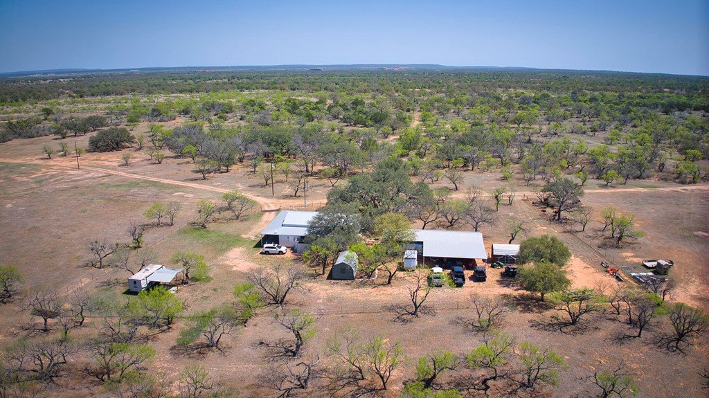 BORROW-SUM RANCH: Located north of Mason just off paved Ranch Road 1222 between Katemcy and Fredonia. County road access, scenic and easy to traverse hill country ranch. Soft rolling terrain timbered in post oak, live oak, blackjack oak, mesquite and native brush. Wet weather Tiger Creek features a heavy concentration of trees along west side of ranch. Year round pond provides water for wildlife, game and livestock. Strong, dependable water well (last tested 45 GPM) supplements pond and supplies a 2/2, 1500 sq. ft. residence/weekend home with vaulted ceiling and wrap around porch on two sides. Two storage sheds, wood worker's shop with air conditioning, Air Stream camper with potential for guest quarters, small livestock shed and pens provide additional use facilities. All deer stands and feeders would go with sale. Low perimeter fencing in above average condition. Ranch acreage is Ag exempt and all minerals to convey.