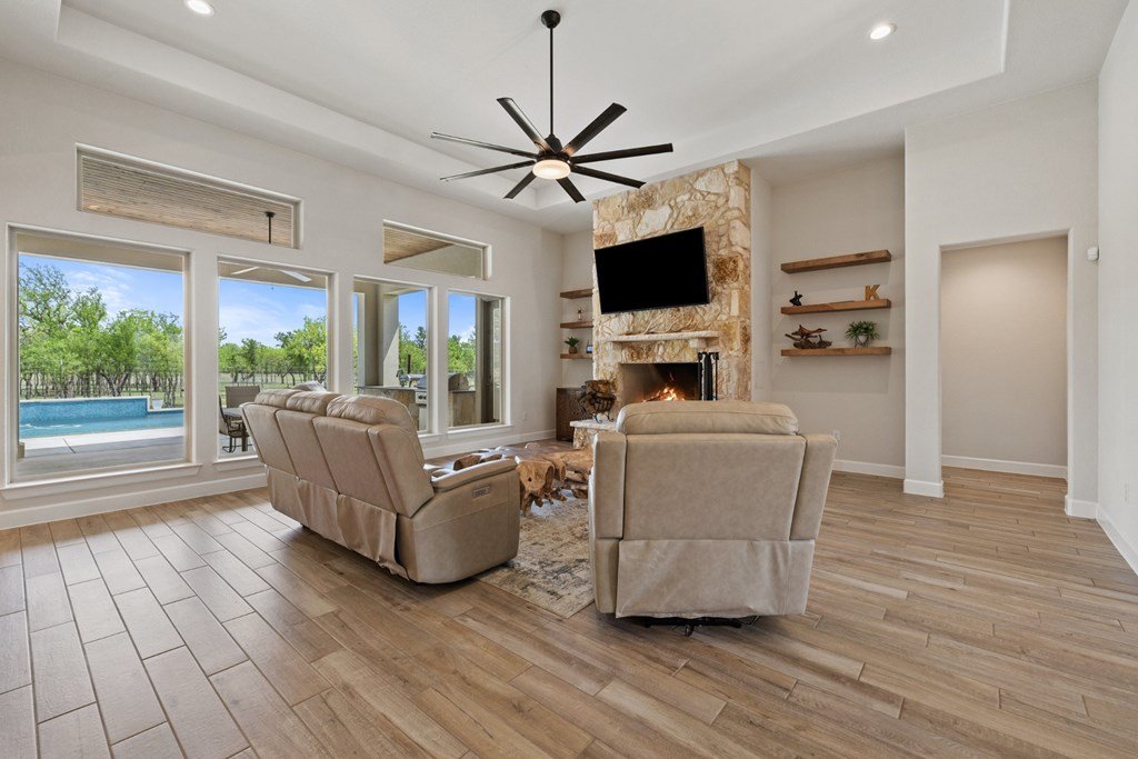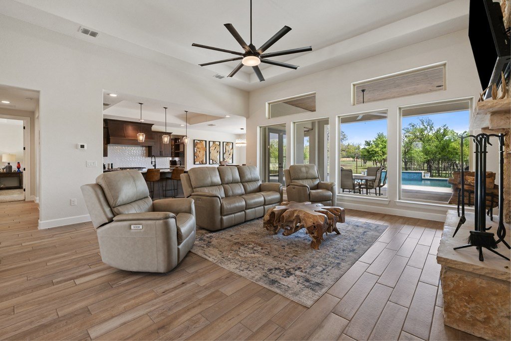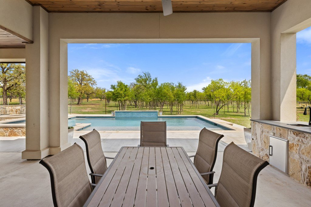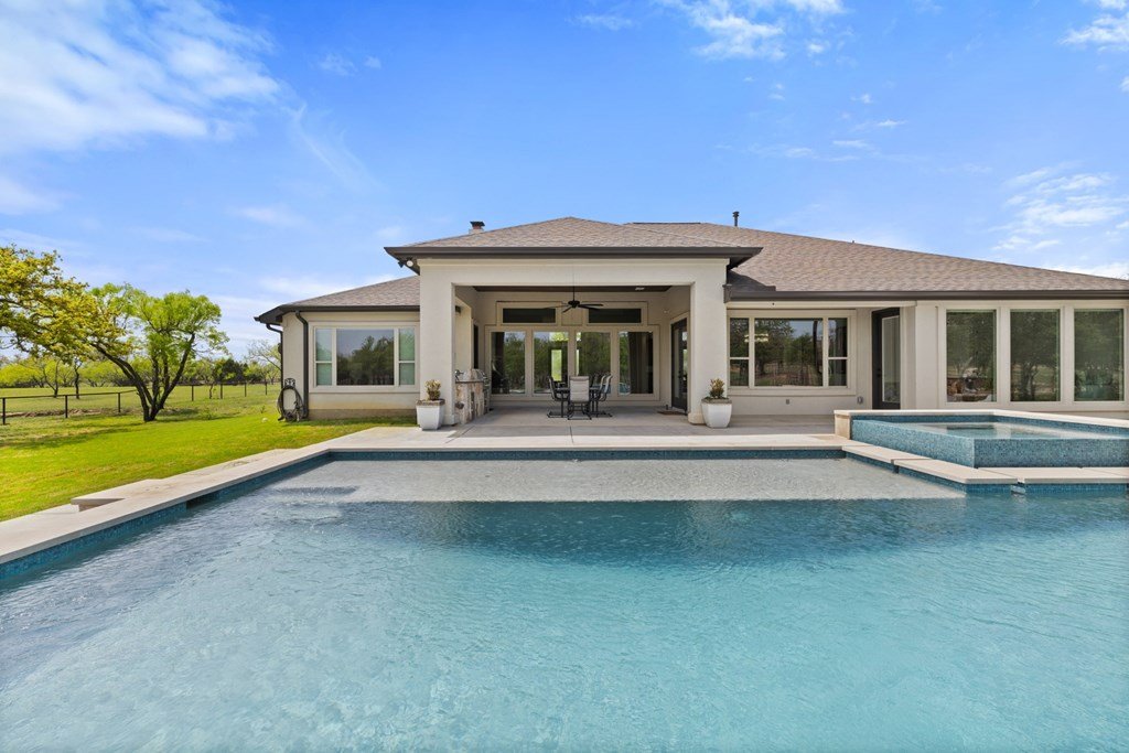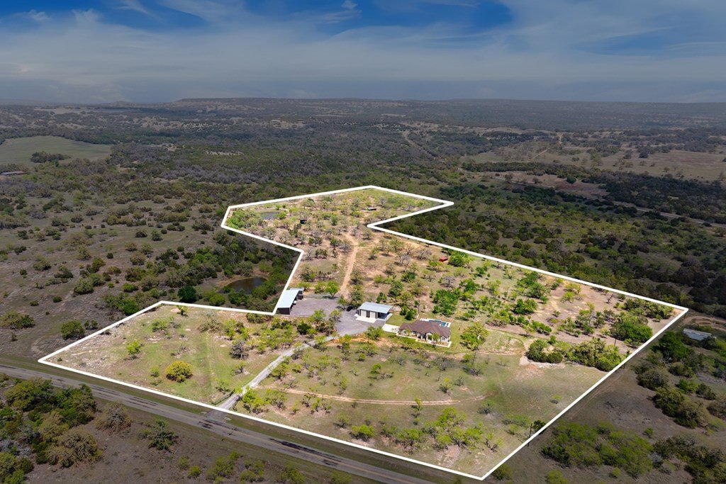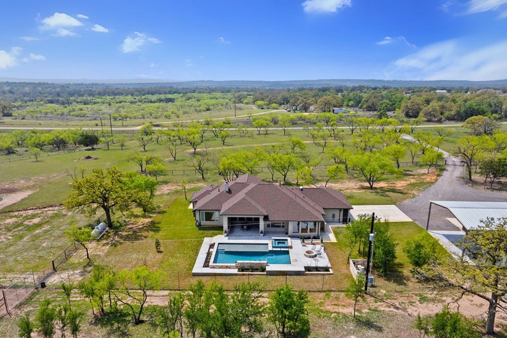 Discover a rare blend of luxury, space & privacy at 10900 Ranch Road 1323—a custom Hill Country estate on 28.5 pristine acres. Completed in 2024, the 2,950 sqft home offers 3 beds, 2.5 baths, an office & game room, with high-end finishes throughout. Enjoy custom fireplaces, upscale KitchenAid appliances, a gas cooktop & scenic views through large windows. Oversized porches, an outdoor kitchen, heated pool & spa set the stage for elevated outdoor living. A 1,000-gallon propane tank & 3-car garage add convenience. About 22 high-fenced acres are ideal for exotic animals, with 2 ponds enhancing the land. Improvements include a 30x100 equipment shed, 40x60 enclosed shop with 20x40 overhang & 15x30 FFA/4H livestock barn—perfect for hobbies, business or ranch needs. Fully landscaped & irrigated, this private retreat offers seclusion just 15 minutes from town. A premier Johnson City property with modern luxury & endless potential.