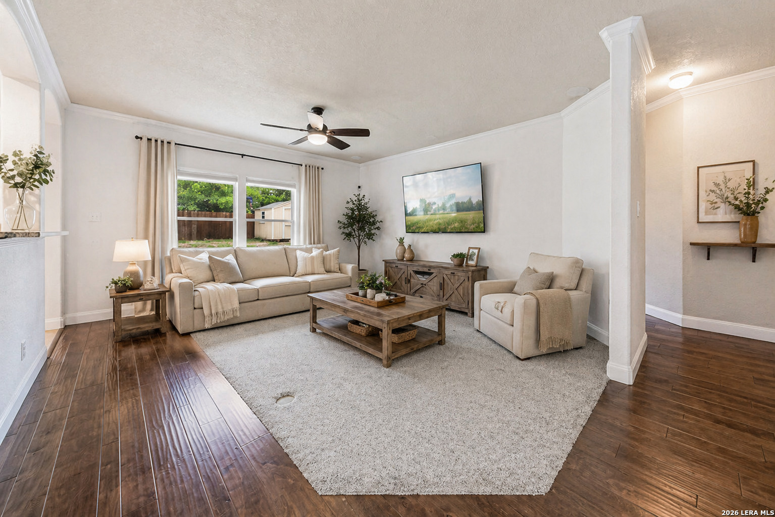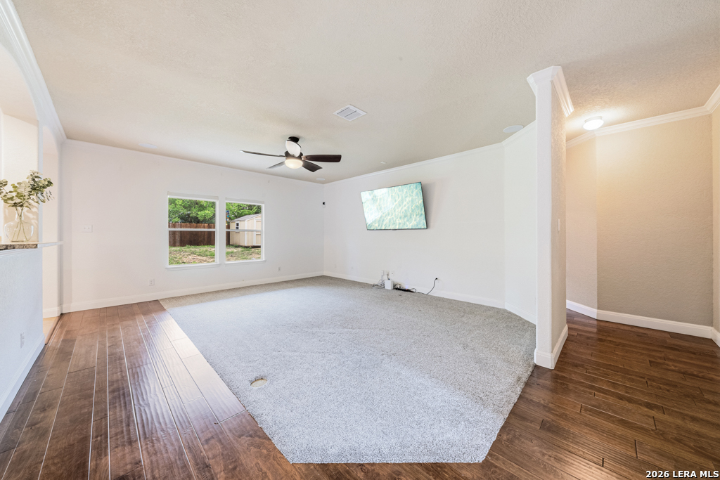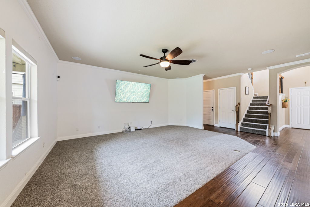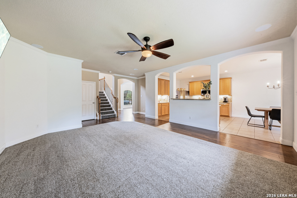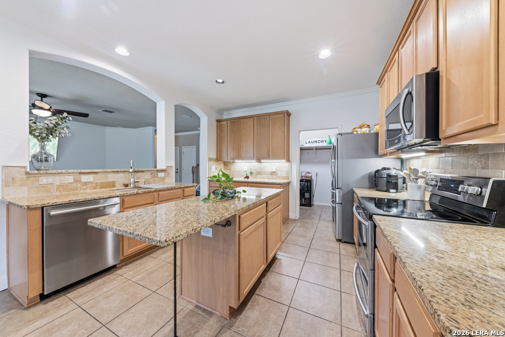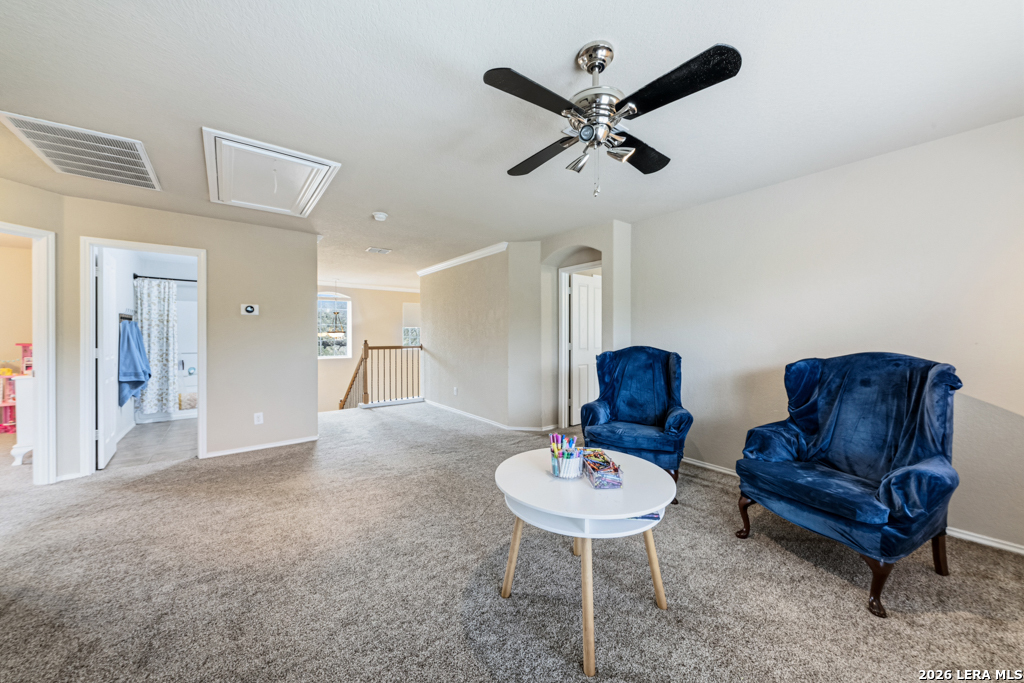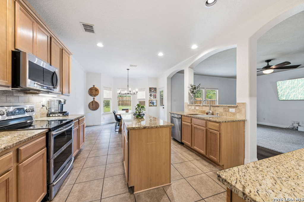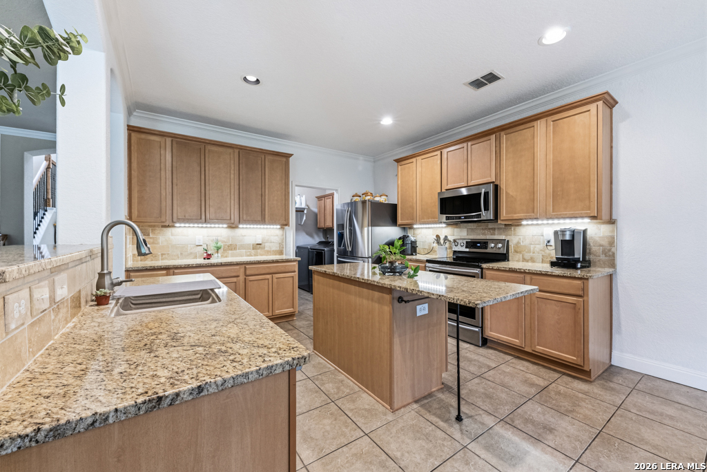4-bedroom home with flexible floorplan in Helotes featuring a downstairs secondary bedroom, cul-de-sac location, and 20-ft greenbelt for added privacy! Enjoy relaxing on the covered front porch while taking in the cul-de-sac setting, plus access to neighborhood pool and park. ~ Step inside to a dramatic 2-story foyer and versatile layout with a formal dining that can easily function as a home office or flex space. Hardwood floors flow through the dining and walkways, leading to a spacious family room with crown molding, surround sound, and floor plug-ideal for everyday living and entertaining. ~ Bright, open kitchen offers granite countertops, large island, stainless steel appliances, double ovens, and a walk-in pantry with floor-to-ceiling storage. ~ Wrought iron staircase leads to a generous gameroom, creating separation between 2 secondary bedrooms and the private primary suite. All bedrooms feature walk-in closets. Primary suite includes double vanities, oversized walk-in shower, and a large walk-in closet. ~ Enjoy outdoor relaxation or entertaining with a covered back patio, added privacy from the greenbelt, and a storage shed to keep lawn equipment out of the garage. Garage includes space for ceiling storage and water softener. ~ Additional features include a 15 SEER Lennox HVAC system with UV light. ~ Conveniently located near 1604, shopping, dining, and major routes-this home offers space, flexibility, room to grow and functionality for a variety of lifestyles.
