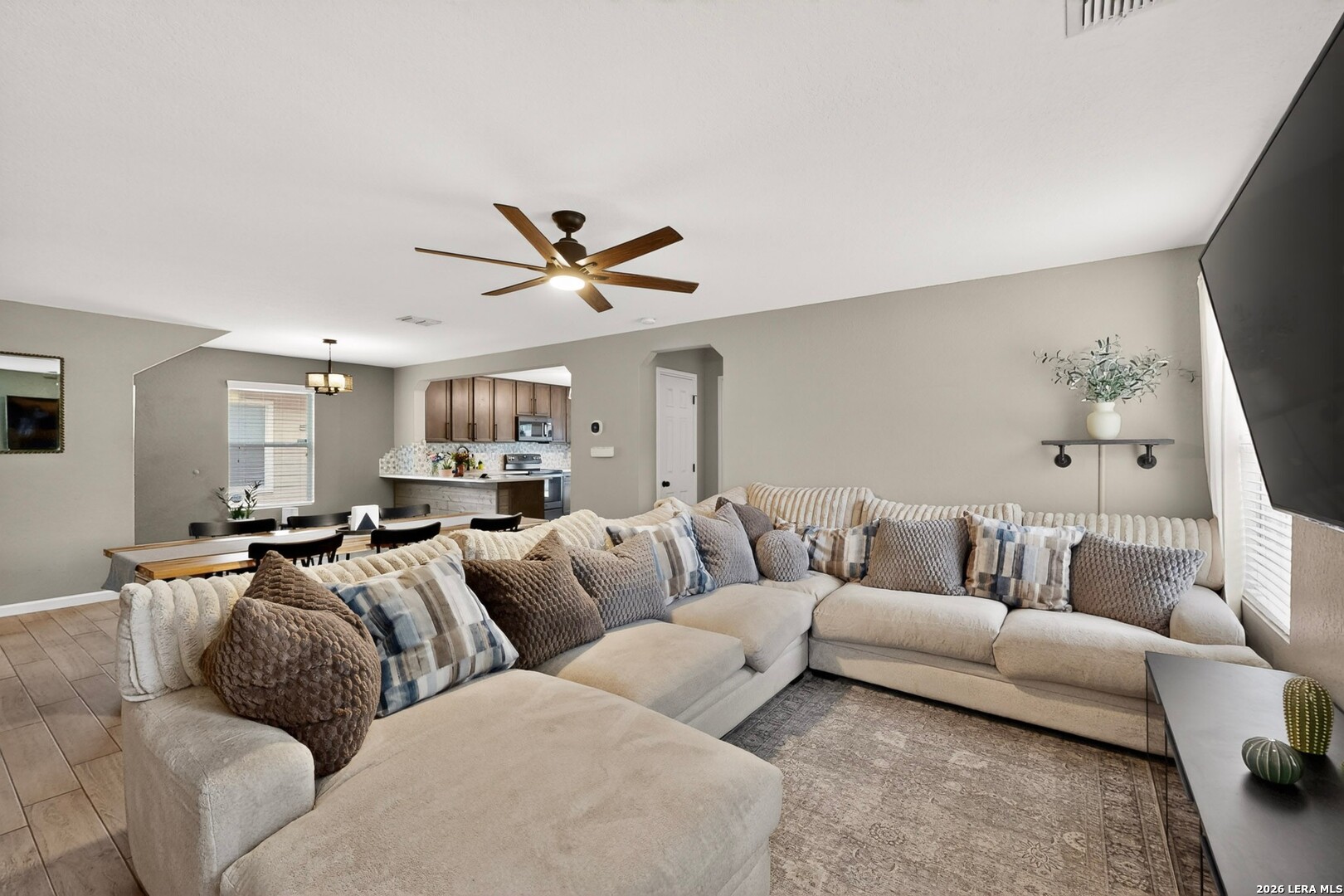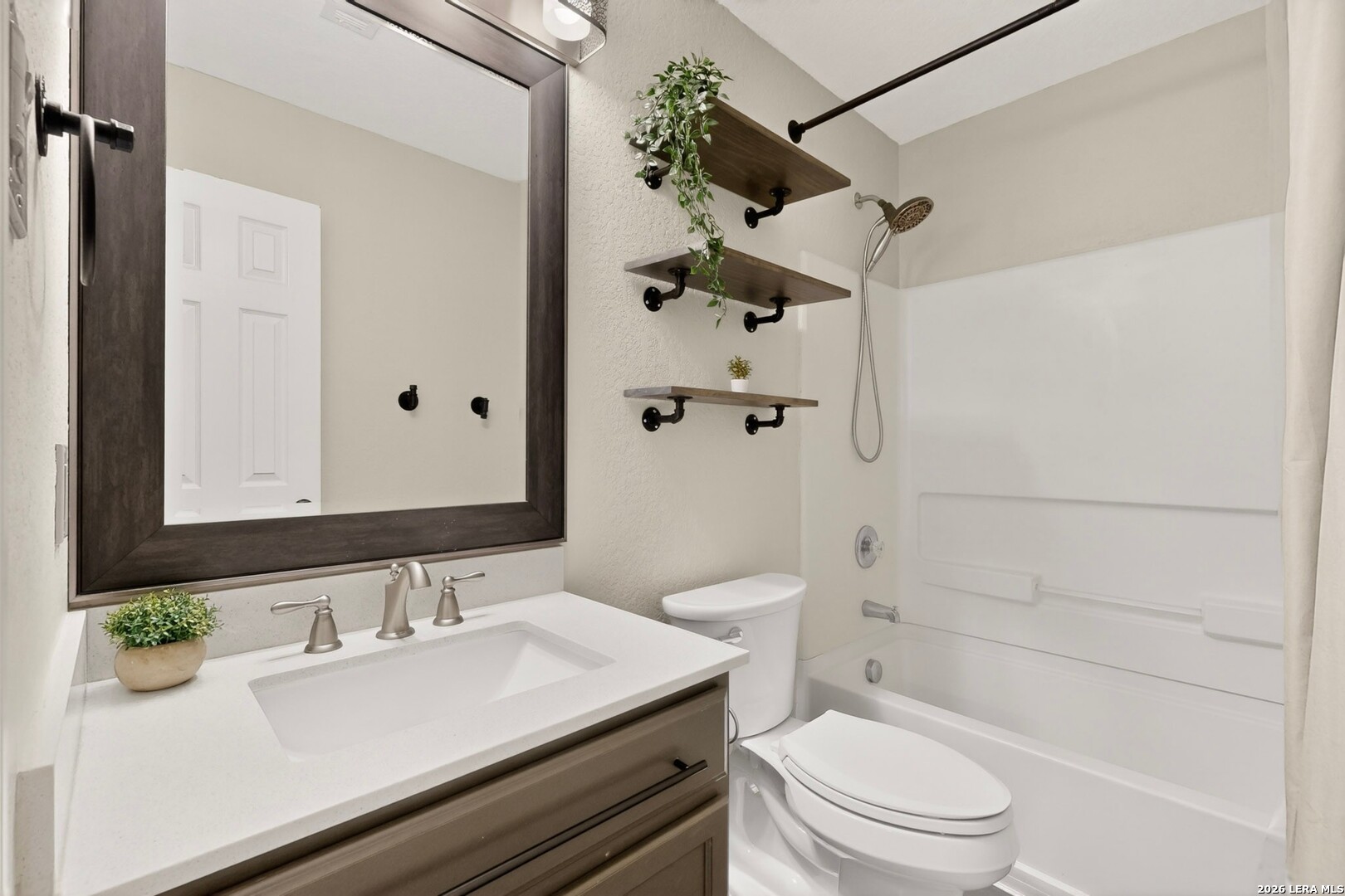 This 4-bed single-family home in Hillcrest San Antonio offers 2,044 sqft of well-designed living space, including 4 bedrooms and 3 full baths, now priced at $265,000. Located at 10911 Rustic Spoke, this two-story home built in 2012 features a flexible layout with a main-level guest suite, open floor plan, two living areas, and a game room. Recent upgrades include a 2023 AC system, custom cabinetry, and updated outlets and switches throughout. The kitchen is equipped with a smooth cooktop, microwave, dishwasher, refrigerator, and ample workspace, while the upstairs primary suite includes a walk-in closet, double vanity, garden tub, and separate shower. Additional highlights include an upstairs laundry room, walk-in closets, ceramic tile and carpet flooring, and a two-car garage. Situated on a 0.17-acre lot in the Hillcrest community with pool and playground amenities, this home offers convenient access to Loop 1604, Highway 90, Highway 151, SeaWorld, Lackland AFB, shopping, and dining, all within Southwest ISD, making it a strong value opportunity in San Antonio .