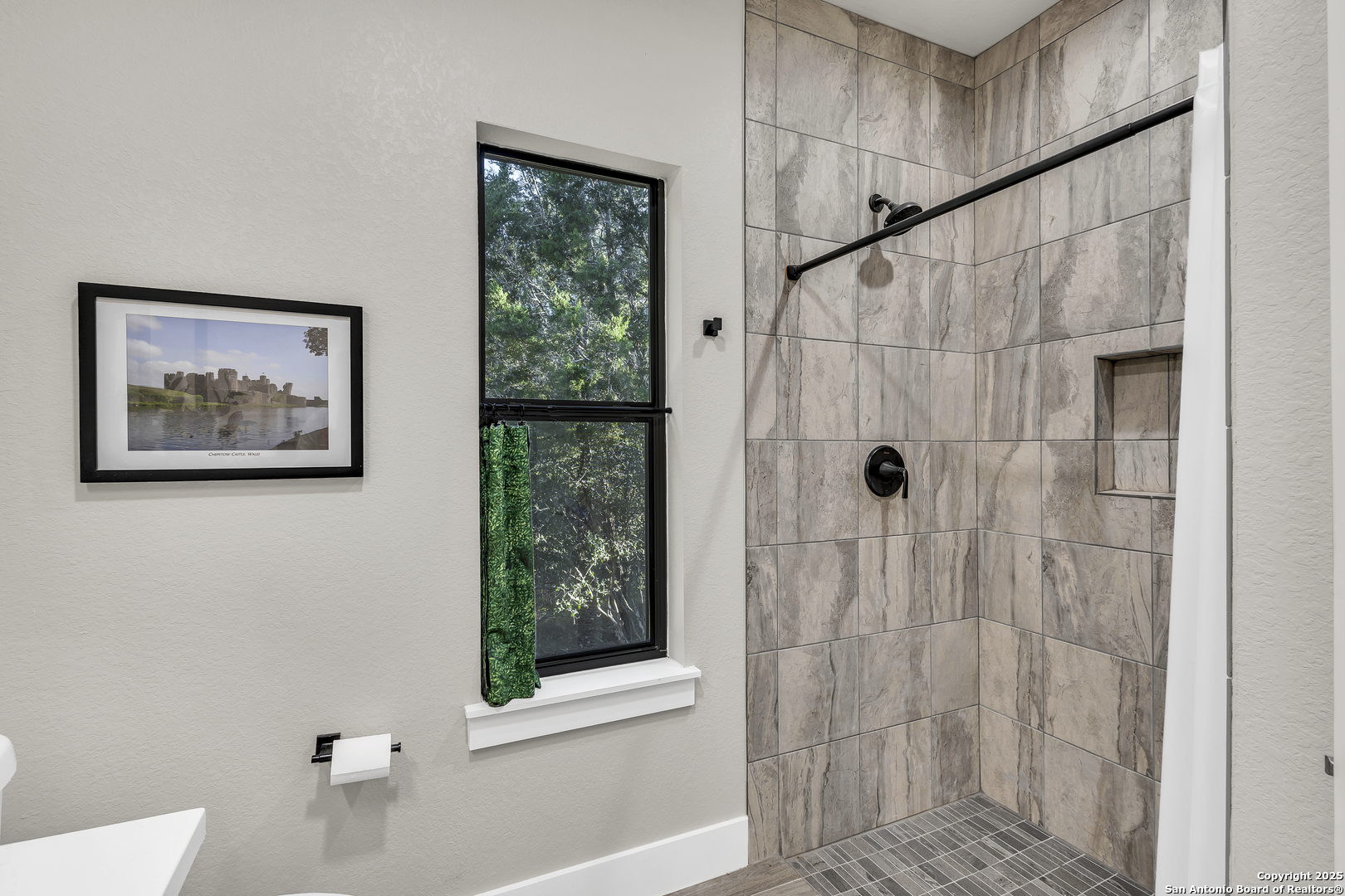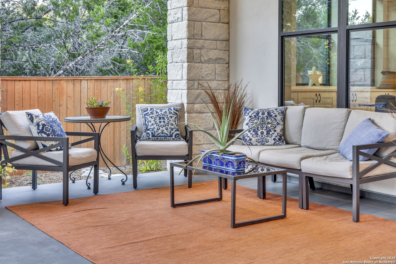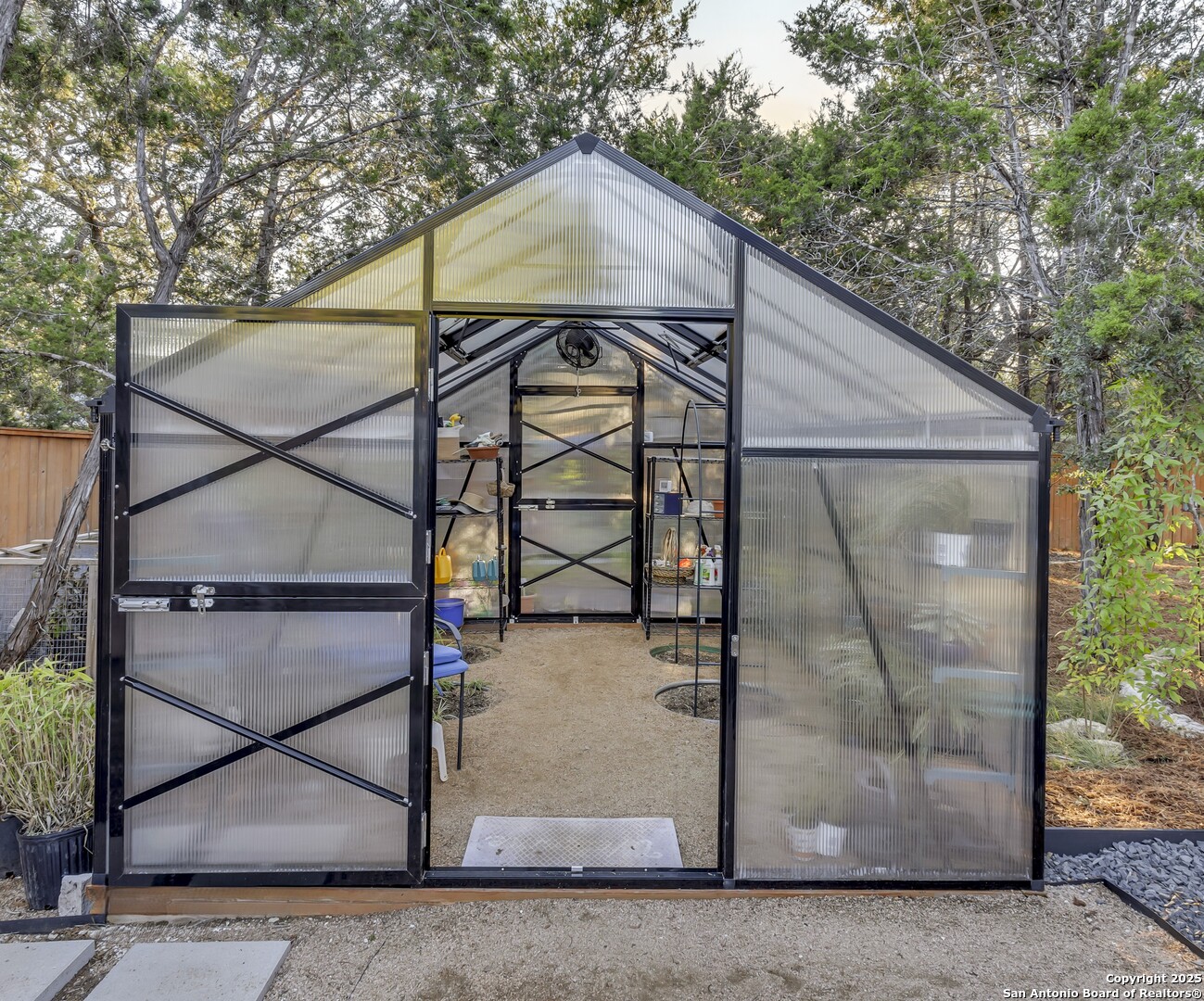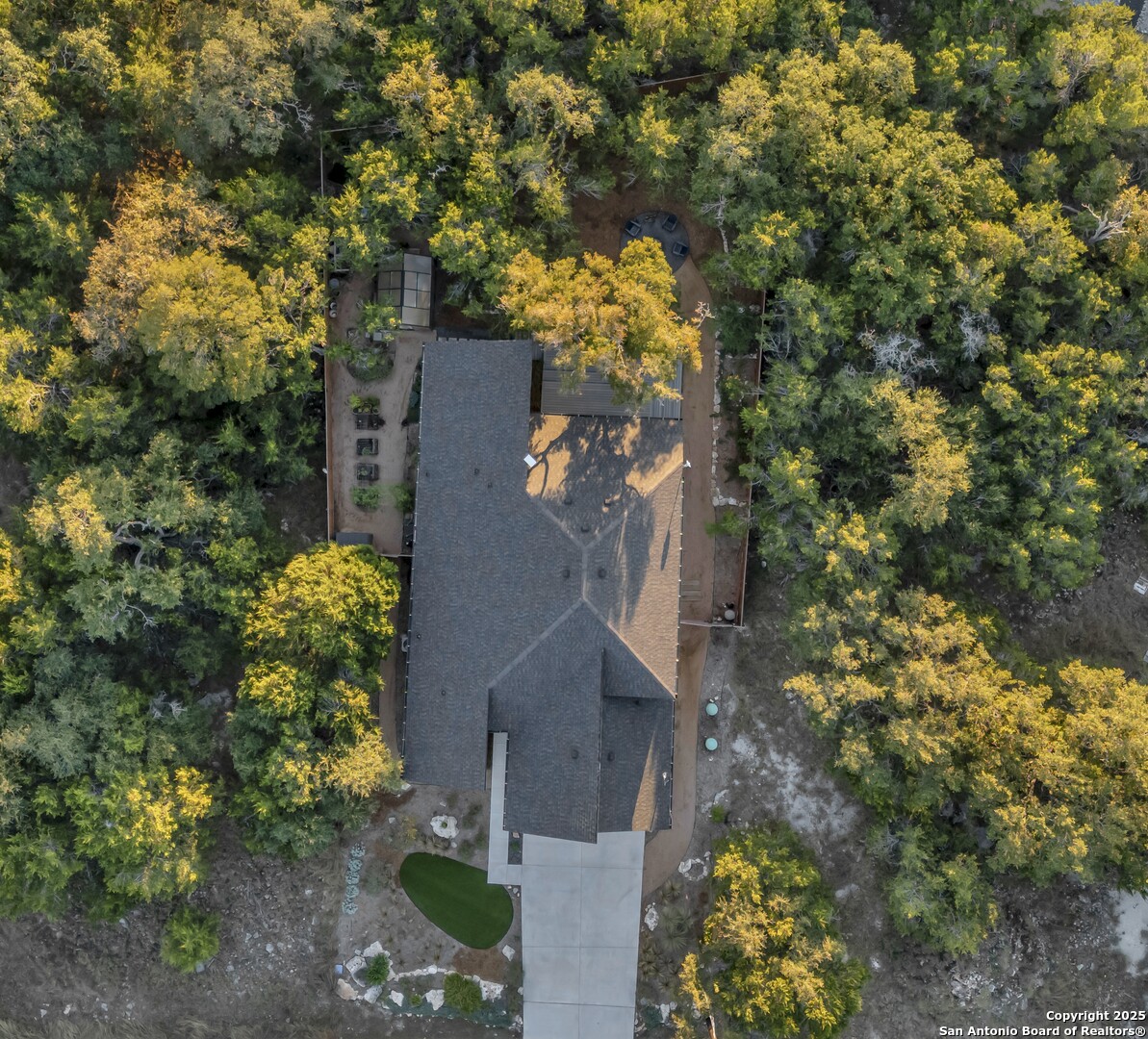 Modern Hill Country Retreat - Smart Design, Serene Setting Discover the perfect blend of modern design and Hill Country charm! Architecturally designed home. The expansive great room welcomes you with 14-foot ceilings, abundant natural light from large windows, and a built-in surround sound speakers-ideal for both everyday living and entertaining. The kitchen and dining area feature custom cabinetry throughout, including a built-in sideboard, paired with stunning quartzite countertops for a refined finish. A fully wired Cat6 network with an in-wall distribution center ensures high-speed connectivity throughout the home, while smart shades in the bedrooms and master bath add a touch of convenience and luxury. Step outside to enjoy the spacious veranda equipped with outdoor-rated speakers, a custom composite deck built into the home's design, and a serene fire pit area surrounded by mature trees. The property also features a raised bed garden with a 10x13 greenhouse-both equipped with drip irrigation. Additional highlights include: Mudroom and separate laundry/utility room Oversized garage with golf cart path Premium gutters with dual rainwater tanks (650-gallon total capacity) Drip irrigation system throughout Jetted tub and Kohler temperature-balancing shower valve in the primary suite Starlink system for reliable high-speed internet Wooded lot with 6-foot privacy fence Smart shades in bedrooms & master bath This home is the perfect retreat-offering luxury, efficiency, & thoughtful design at every turn.