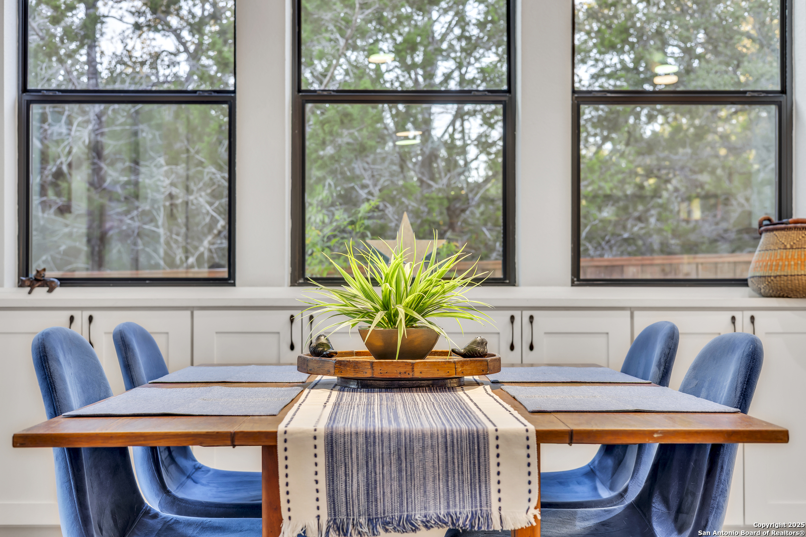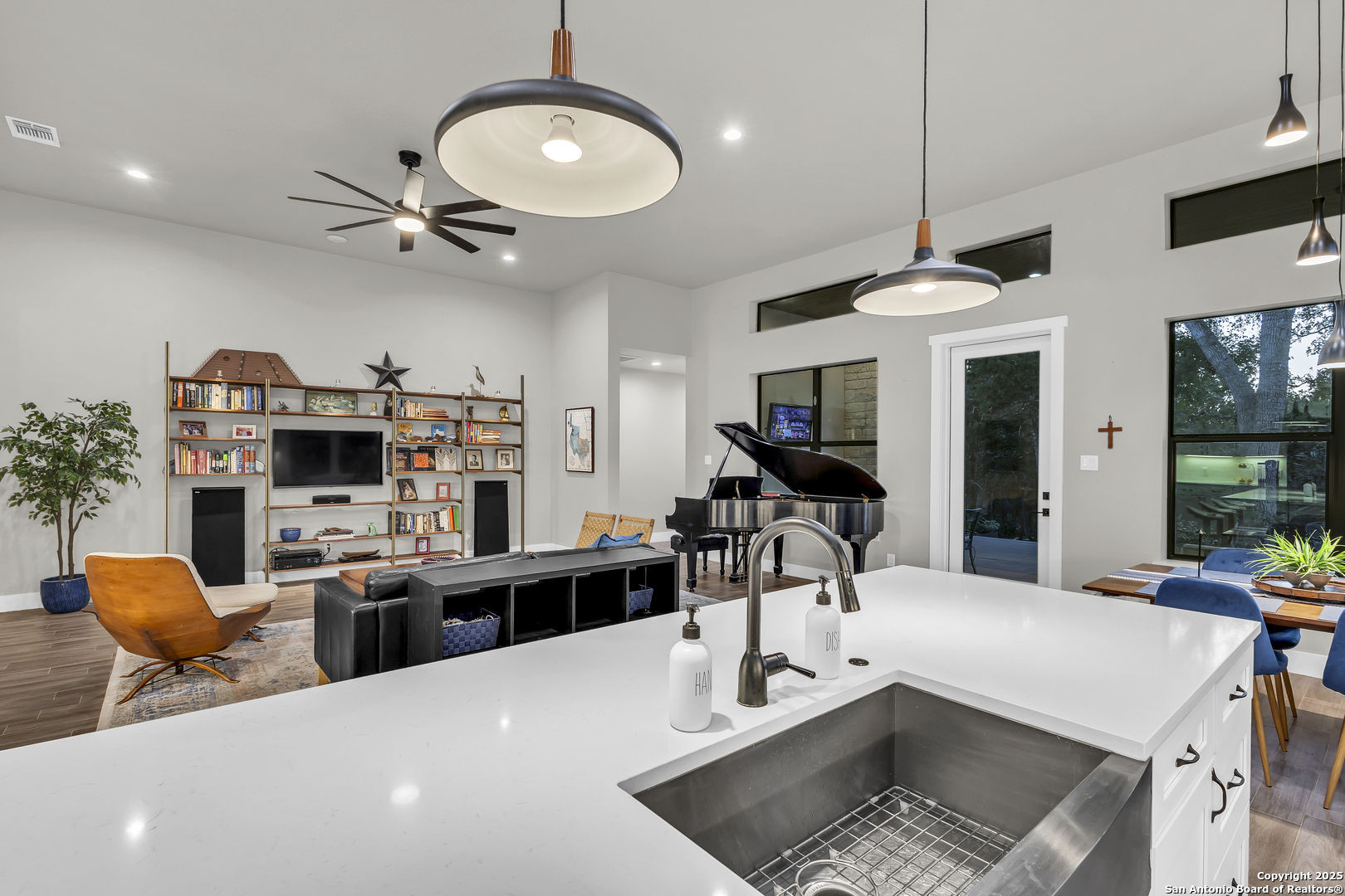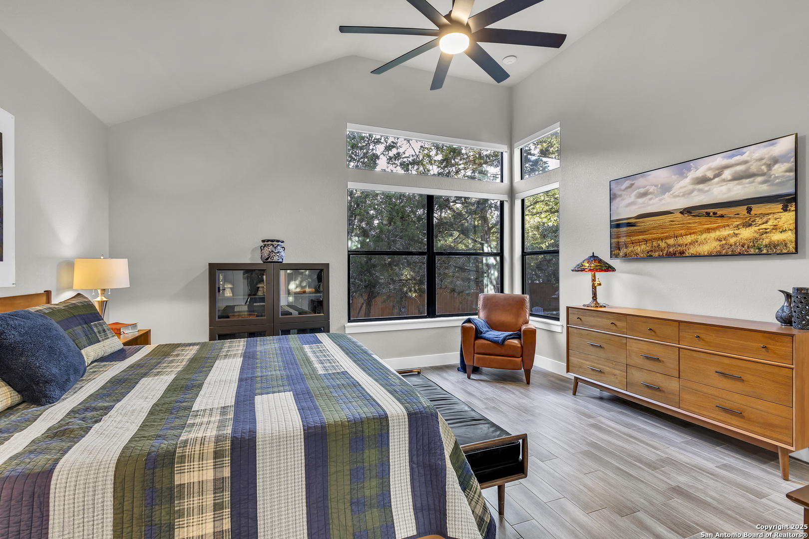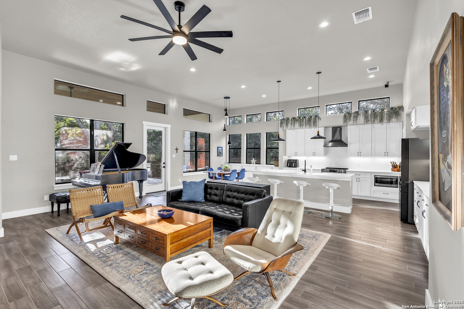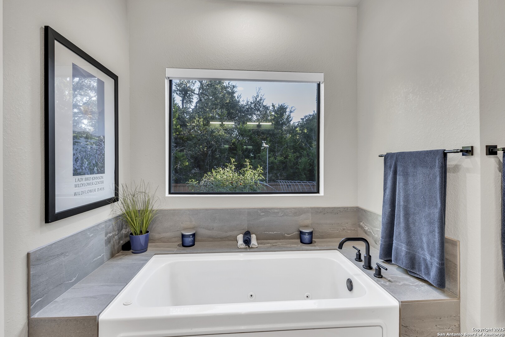 Modern Hill Country Retreat - Smart Design, Serene Setting Discover the perfect blend of modern design and Hill Country charm! Architecturally designed home. The expansive great room welcomes you with 14-foot ceilings, abundant natural light from large windows, and a built-in surround sound speakers-ideal for both everyday living and entertaining. The kitchen and dining area feature custom cabinetry throughout, including a built-in sideboard, paired with stunning quartzite countertops for a refined finish. A fully wired Cat6 network with an in-wall distribution center ensures high-speed connectivity throughout the home, while smart shades in the bedrooms and master bath add a touch of convenience and luxury. Step outside to enjoy the spacious veranda equipped with outdoor-rated speakers, a custom composite deck built into the home's design, and a serene fire pit area surrounded by mature trees. The property also features a raised bed garden with a 10x13 greenhouse-both equipped with drip irrigation. Additional highlights include: Mudroom and separate laundry/utility room Oversized garage with golf cart path Premium gutters with dual rainwater tanks (650-gallon total capacity) Drip irrigation system throughout Jetted tub and Kohler temperature-balancing shower valve in the primary suite Starlink system for reliable high-speed internet Wooded lot with 6-foot privacy fence Smart shades in bedrooms & master bath This home is the perfect retreat-offering luxury, efficiency, & thoughtful design at every turn.