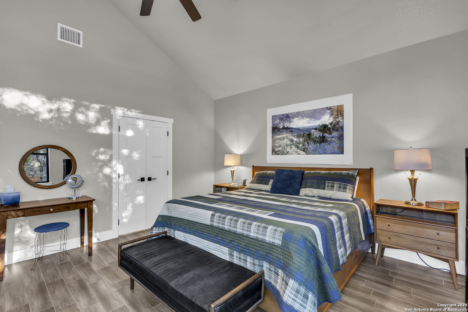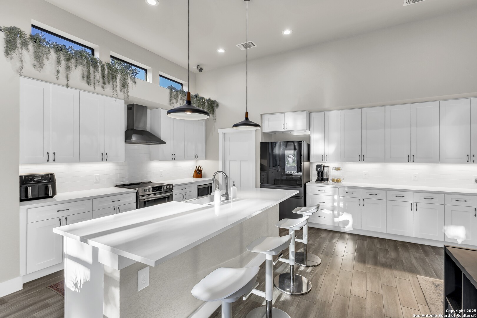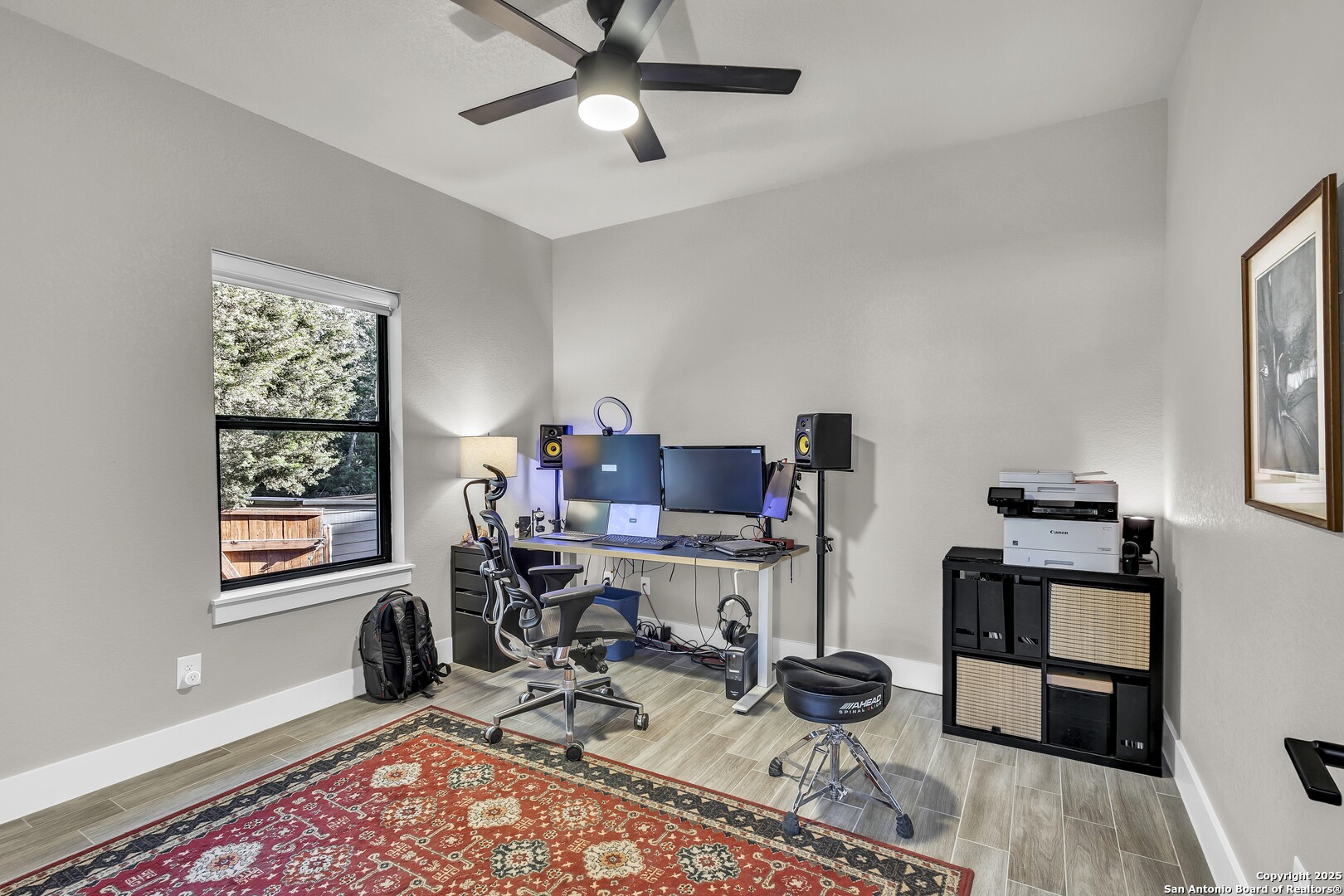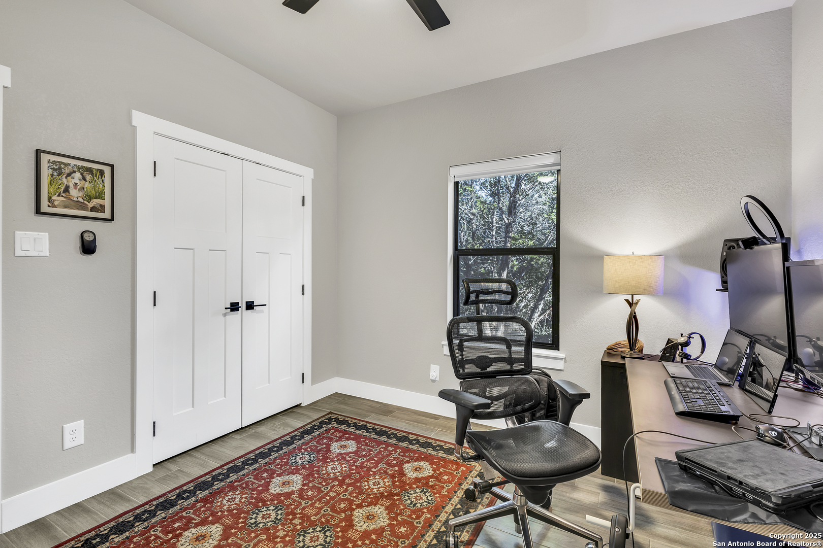 Modern Hill Country Retreat - Smart Design, Serene Setting Discover the perfect blend of modern design and Hill Country charm! Architecturally designed home. The expansive great room welcomes you with 14-foot ceilings, abundant natural light from large windows, and a built-in surround sound speakers-ideal for both everyday living and entertaining. The kitchen and dining area feature custom cabinetry throughout, including a built-in sideboard, paired with stunning quartzite countertops for a refined finish. A fully wired Cat6 network with an in-wall distribution center ensures high-speed connectivity throughout the home, while smart shades in the bedrooms and master bath add a touch of convenience and luxury. Step outside to enjoy the spacious veranda equipped with outdoor-rated speakers, a custom composite deck built into the home's design, and a serene fire pit area surrounded by mature trees. The property also features a raised bed garden with a 10x13 greenhouse-both equipped with drip irrigation. Additional highlights include: Mudroom and separate laundry/utility room Oversized garage with golf cart path Premium gutters with dual rainwater tanks (650-gallon total capacity) Drip irrigation system throughout Jetted tub and Kohler temperature-balancing shower valve in the primary suite Starlink system for reliable high-speed internet Wooded lot with 6-foot privacy fence Smart shades in bedrooms & master bath This home is the perfect retreat-offering luxury, efficiency, & thoughtful design at every turn.