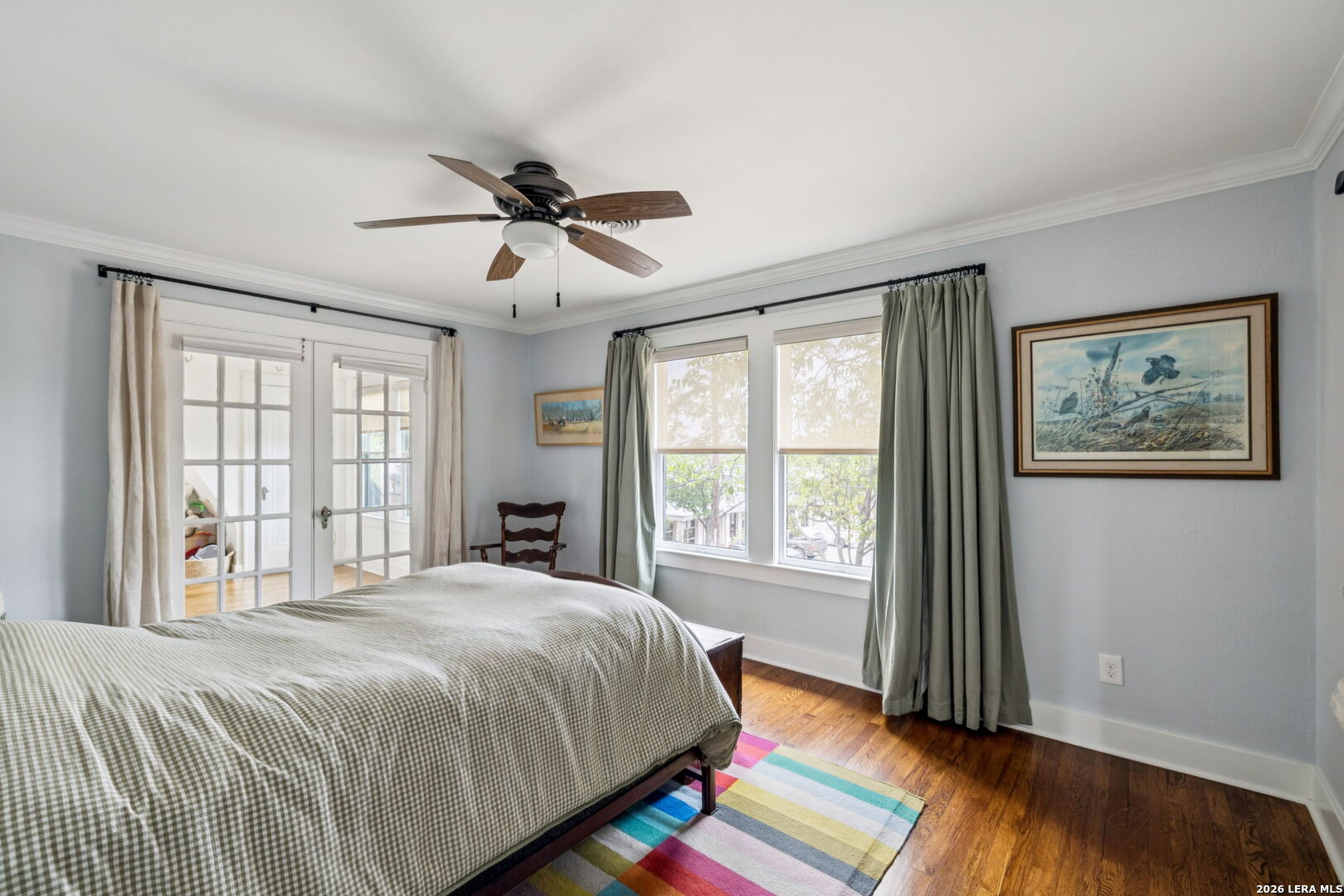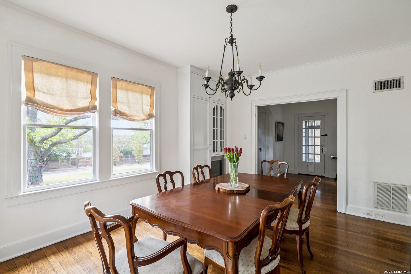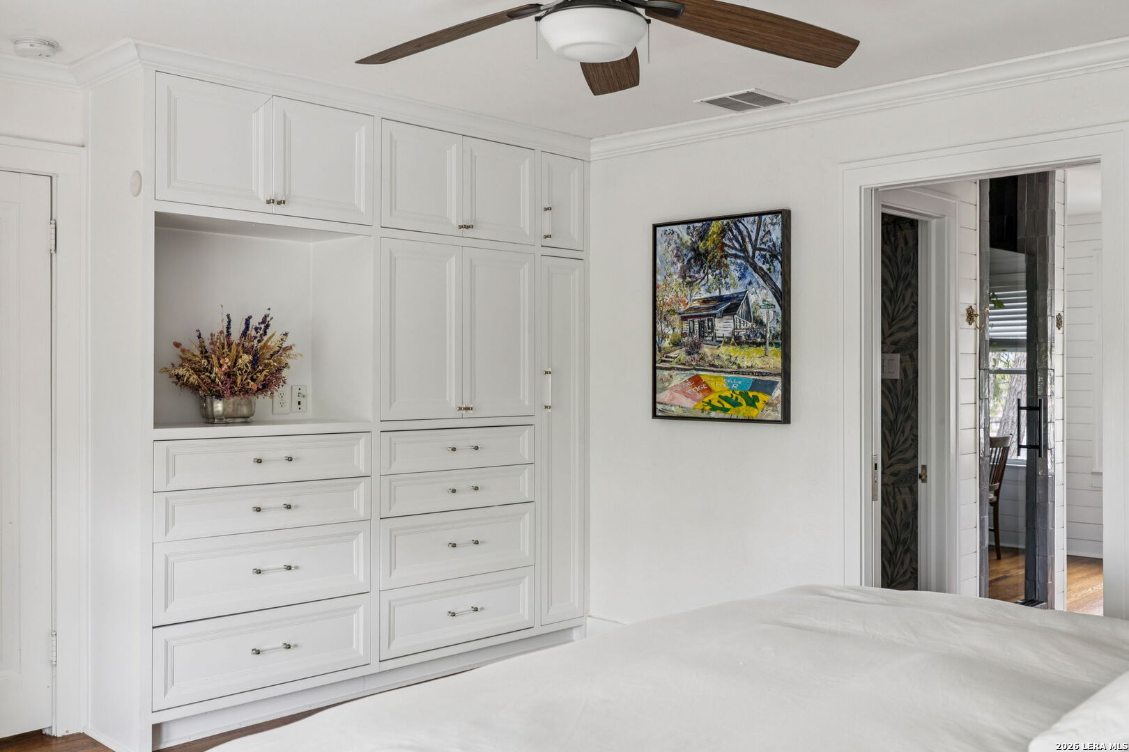 Step back in time with today's modern amenities! This historic Alamo Heights home sits on one of the highest points in '09, with views of the Tower of the Americas and downtown. Mixing 1920s heritage with handmade details from today creates a seamless story of high-end touches and compelling architecture. Each room effortlessly flows with a traditional floor plan, rotating around a central staircase. Its striking curb appeal starts with a strong brick exterior, original wood windows, slate roof, and massive yard. The custom kitchen boasts of floor-to-ceiling Zellige tile, modern appliances, custom cabinetry, and an eat-in banquette. The spacious living room (with fireplace), dining room, office, and half bath round out the ground floor. Upstairs, the bedrooms are accessed from a central landing. A spacious primary suite includes built-ins and closets (with laundry). Its spa-like bath showcases a double vanity and fully tiled walk-in shower. Two vintage guest baths each contain a tub/shower, adjacent to the guest bedrooms. A former sleeping porch was transformed to a joyful playroom (and could also be a 4th bedroom). Outside, a farmhouse-style detached two car garage includes unique first and second floor living spaces (342 sf), ready for your imagination to transform. The back yard includes a fully-fenced portion, additional detached storage sheds, vegetable garden, and a drive-through porte cochere. Steps from Alamo Heights City Hall, shopping, dining, and Cambridge Elementary, live at the top of '09, in the heart of the most desirable part of San Antonio.