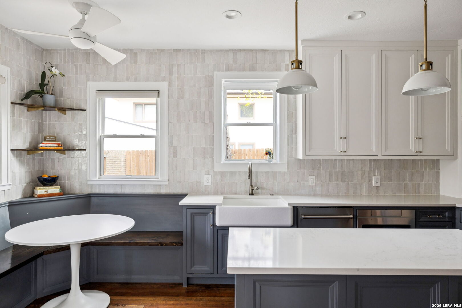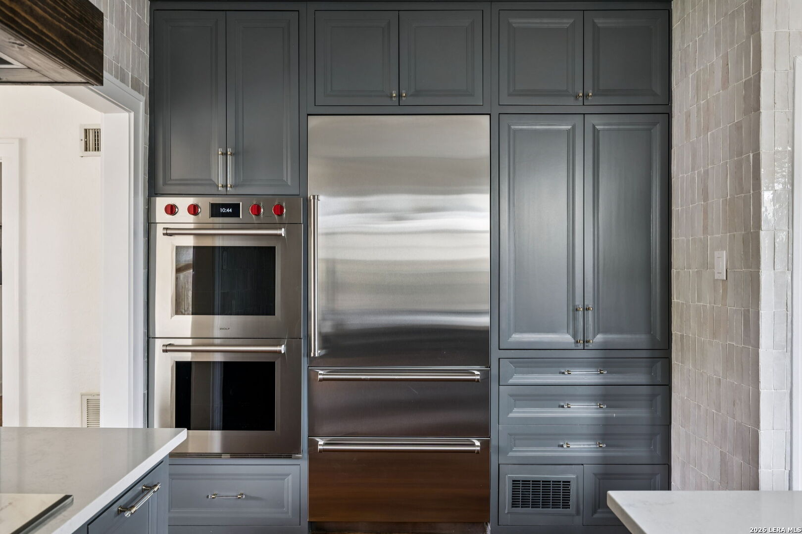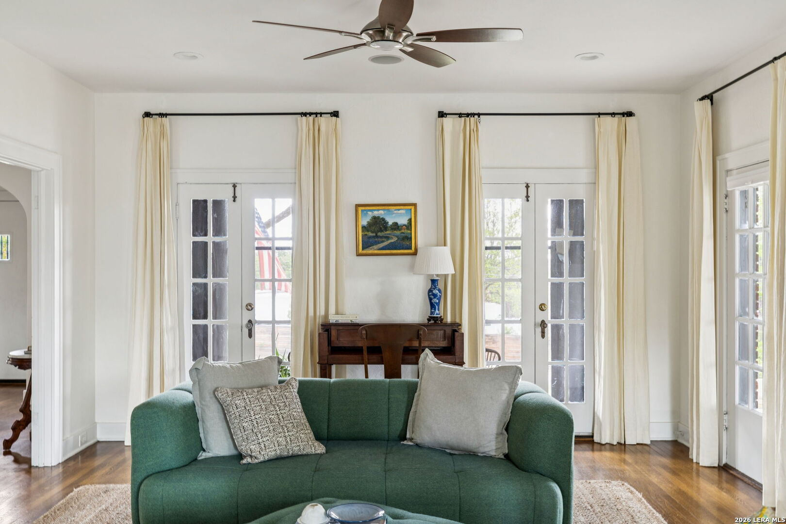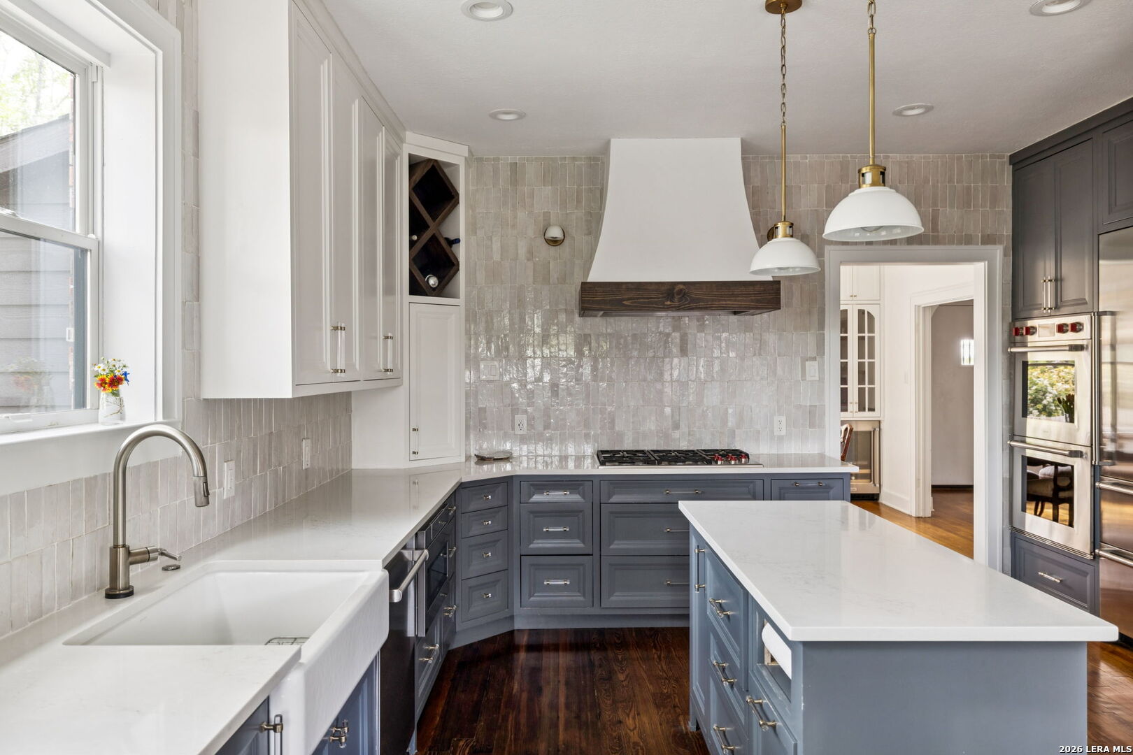 Step back in time with today's modern amenities! This historic Alamo Heights home sits on one of the highest points in '09, with views of the Tower of the Americas and downtown. Mixing 1920s heritage with handmade details from today creates a seamless story of high-end touches and compelling architecture. Each room effortlessly flows with a traditional floor plan, rotating around a central staircase. Its striking curb appeal starts with a strong brick exterior, original wood windows, slate roof, and massive yard. The custom kitchen boasts of floor-to-ceiling Zellige tile, modern appliances, custom cabinetry, and an eat-in banquette. The spacious living room (with fireplace), dining room, office, and half bath round out the ground floor. Upstairs, the bedrooms are accessed from a central landing. A spacious primary suite includes built-ins and closets (with laundry). Its spa-like bath showcases a double vanity and fully tiled walk-in shower. Two vintage guest baths each contain a tub/shower, adjacent to the guest bedrooms. A former sleeping porch was transformed to a joyful playroom (and could also be a 4th bedroom). Outside, a farmhouse-style detached two car garage includes unique first and second floor living spaces (342 sf), ready for your imagination to transform. The back yard includes a fully-fenced portion, additional detached storage sheds, vegetable garden, and a drive-through porte cochere. Steps from Alamo Heights City Hall, shopping, dining, and Cambridge Elementary, live at the top of '09, in the heart of the most desirable part of San Antonio.