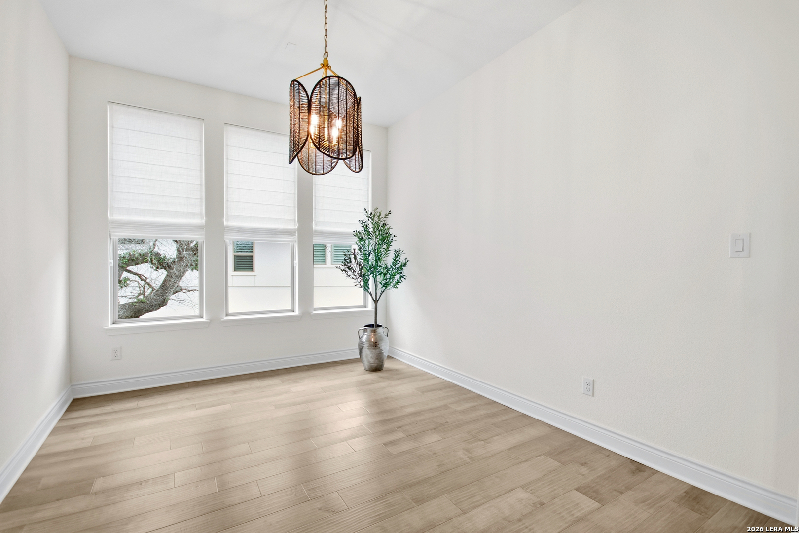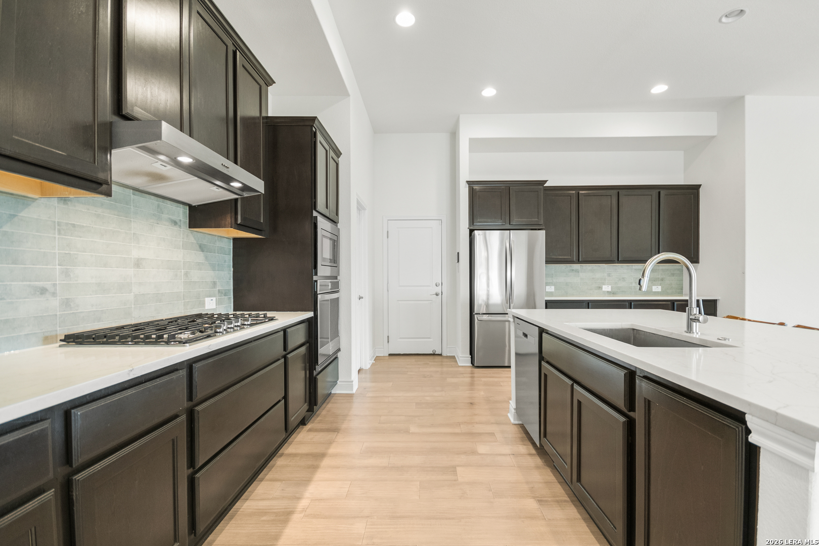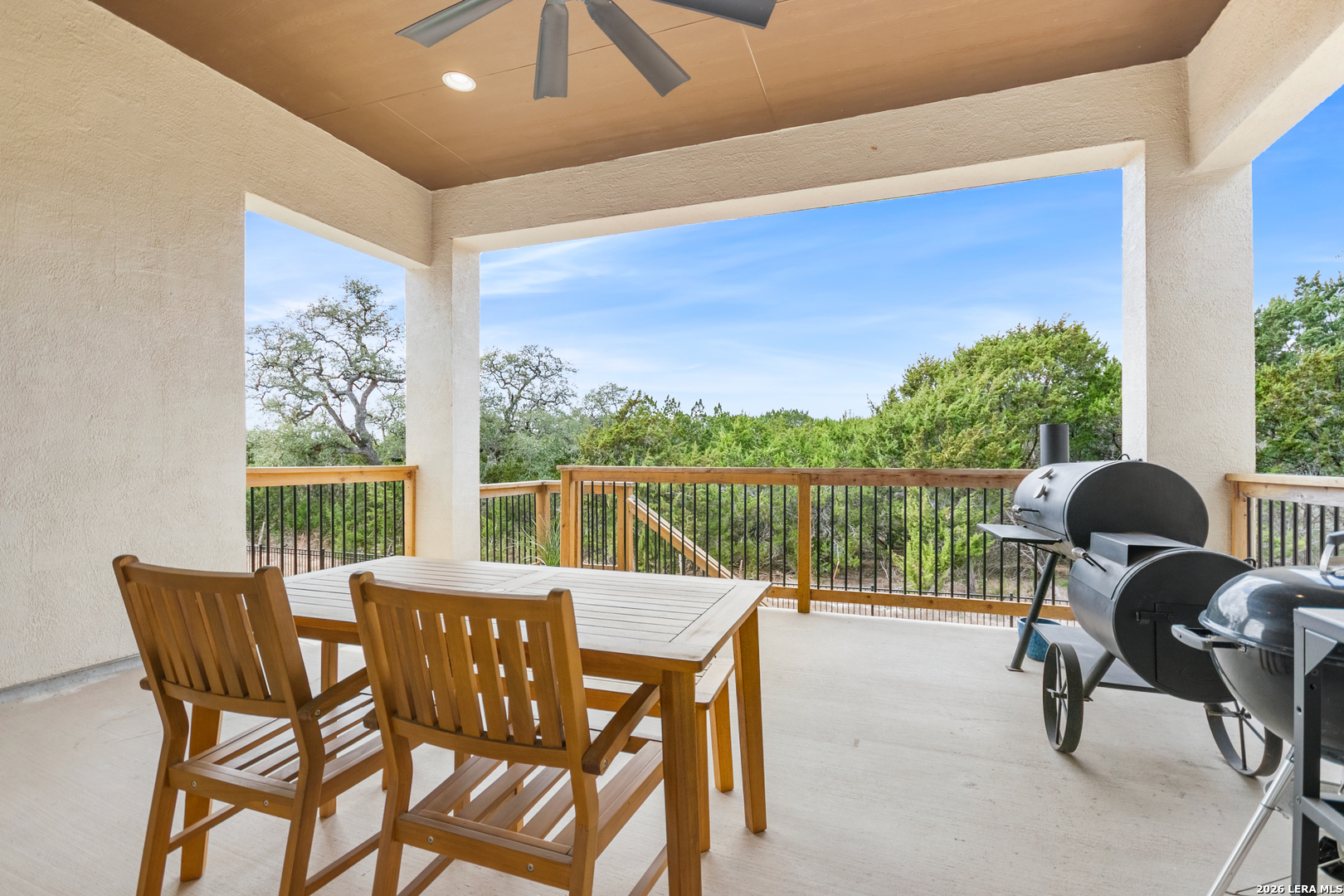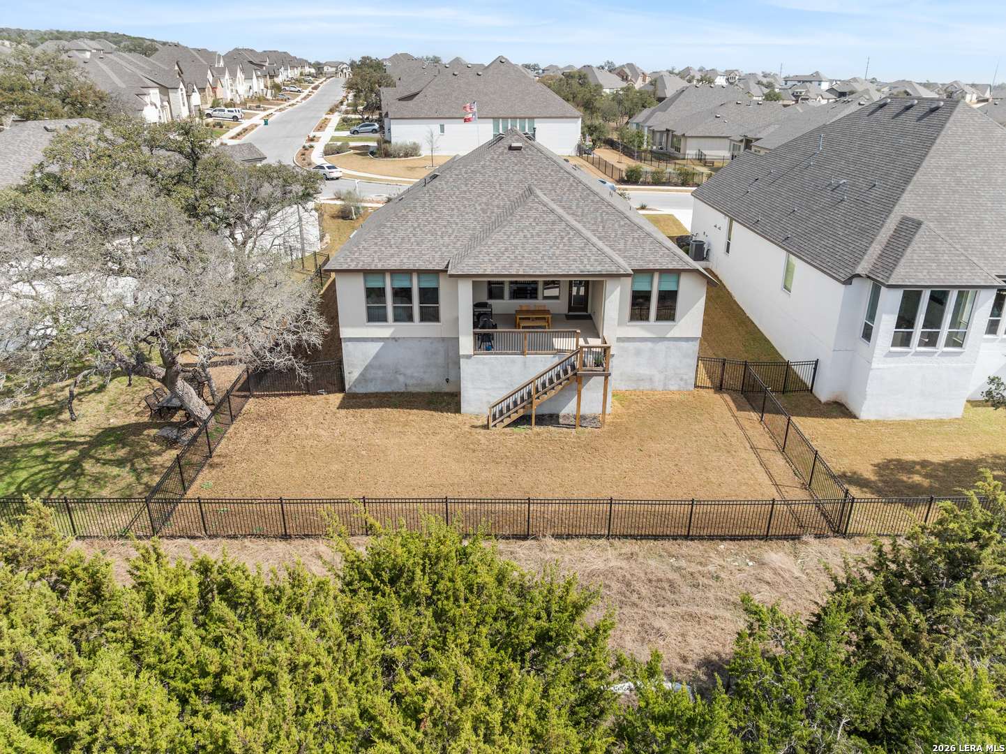 Located in the highly desirable Esperanza community, this 4-bedroom, 3-bathroom single-story home offers 2,645 square feet of well-designed living space. Built in 2023 by Monticello Homes, the open floor plan features high ceilings, wood flooring in the main living areas, and abundant natural light from a wall of windows overlooking the backyard. The kitchen includes a large island, quartz countertops, dark cabinetry, stainless steel appliances, and gas cooking, and opens directly to the main living and dining areas-ideal for everyday living and entertaining. A separate game room provides additional flexible living space. The primary suite is privately located at the back of the home and features a spacious bathroom with a soaking tub, oversized shower, dual vanities, and a walk-in closet. Two secondary bedrooms share a Jack-and-Jill bathroom, while a fourth bedroom and full bath are located near the front of the home, making it a great option for guests or a home office. Outside, the covered patio is ideal for entertaining, surrounded by metal wrought iron fencing and a private, tree-lined backyard. The home also includes a three-car tandem garage, water softener, tankless water heater, and a full sprinkler system. Located in Boerne ISD and just minutes from shopping, dining, and downtown Boerne. Esperanza residents enjoy access to resort-style amenities including a pool, lazy river, clubhouse, fitness center, dog park, and jogging trails.