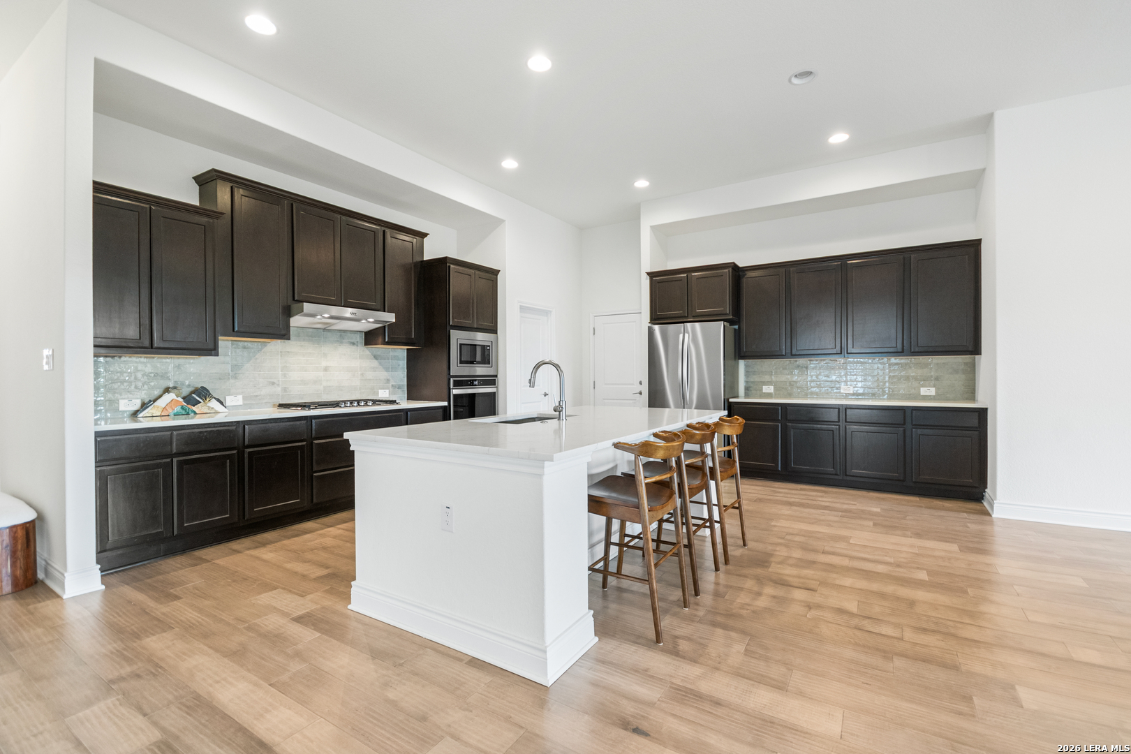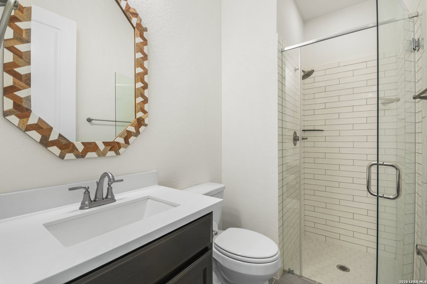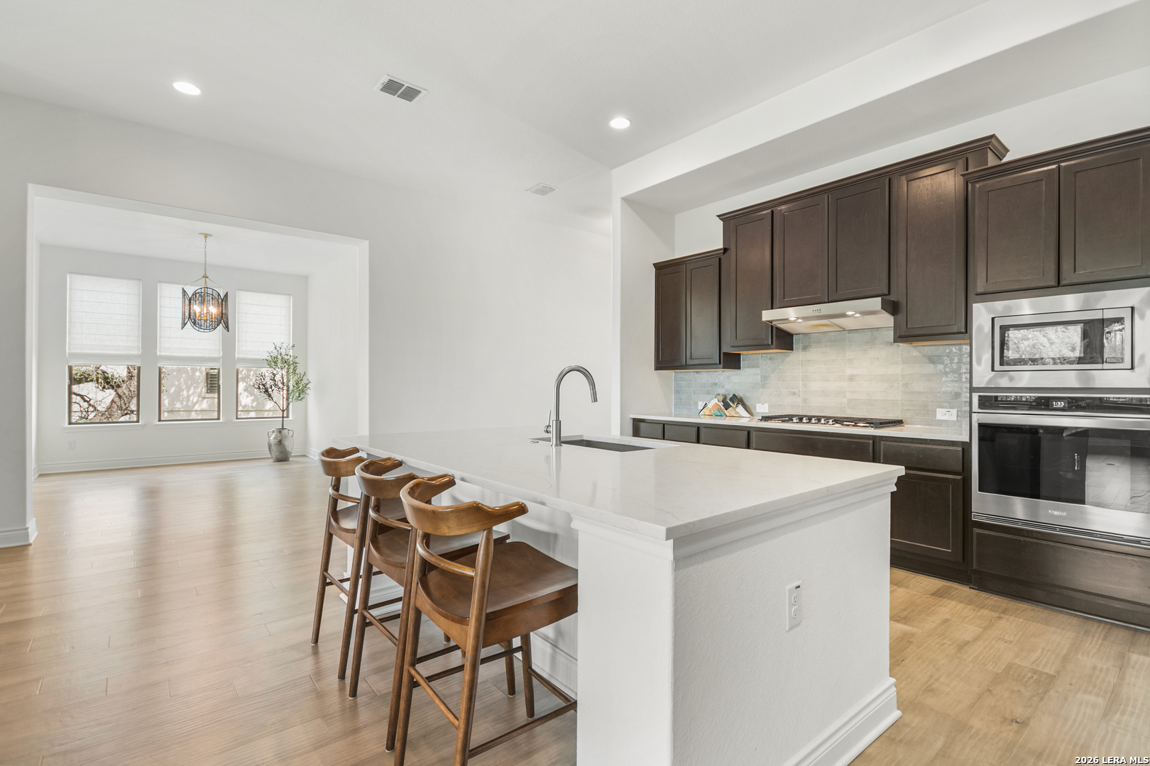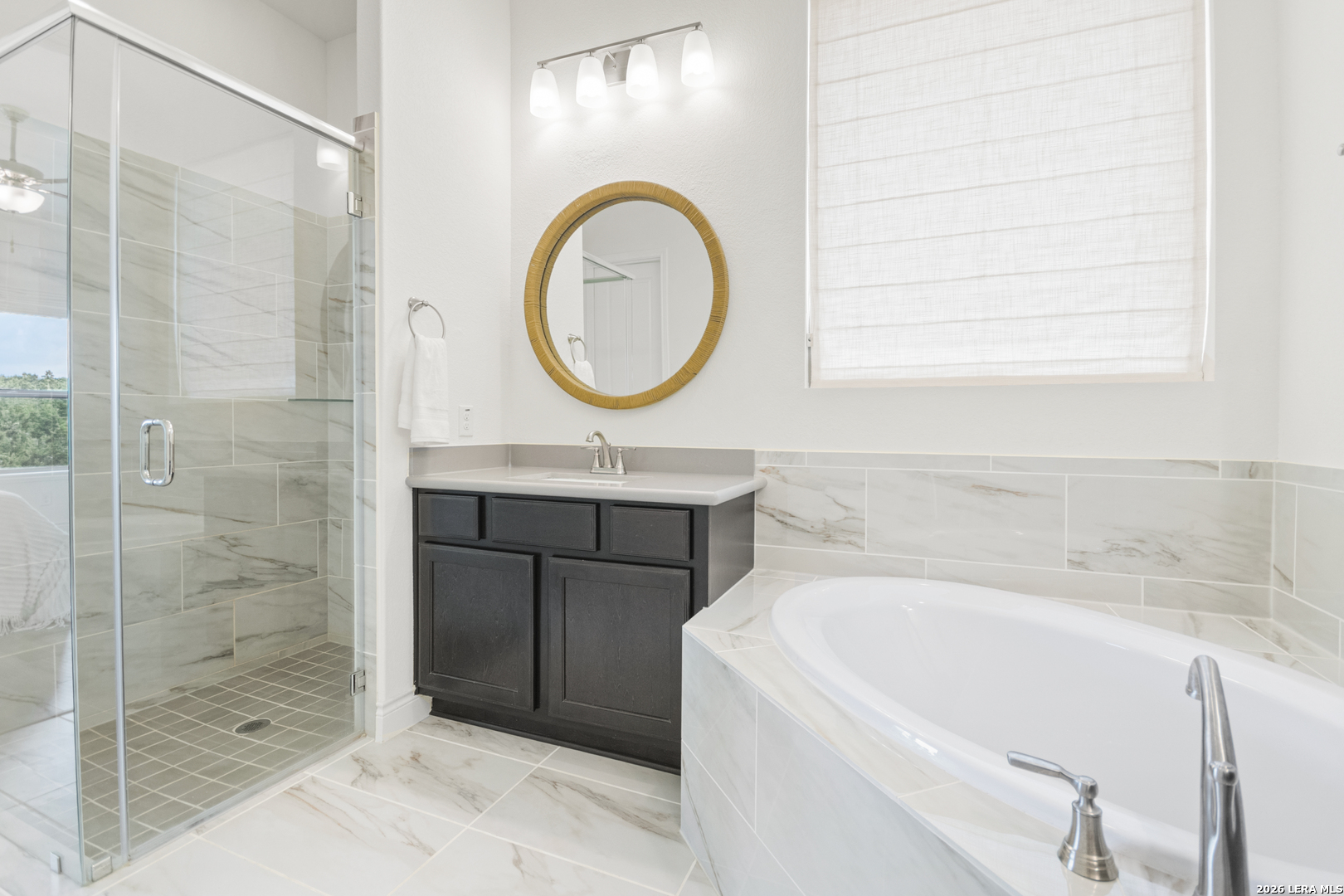 Located in the highly desirable Esperanza community, this 4-bedroom, 3-bathroom single-story home offers 2,645 square feet of well-designed living space. Built in 2023 by Monticello Homes, the open floor plan features high ceilings, wood flooring in the main living areas, and abundant natural light from a wall of windows overlooking the backyard. The kitchen includes a large island, quartz countertops, dark cabinetry, stainless steel appliances, and gas cooking, and opens directly to the main living and dining areas-ideal for everyday living and entertaining. A separate game room provides additional flexible living space. The primary suite is privately located at the back of the home and features a spacious bathroom with a soaking tub, oversized shower, dual vanities, and a walk-in closet. Two secondary bedrooms share a Jack-and-Jill bathroom, while a fourth bedroom and full bath are located near the front of the home, making it a great option for guests or a home office. Outside, the covered patio is ideal for entertaining, surrounded by metal wrought iron fencing and a private, tree-lined backyard. The home also includes a three-car tandem garage, water softener, tankless water heater, and a full sprinkler system. Located in Boerne ISD and just minutes from shopping, dining, and downtown Boerne. Esperanza residents enjoy access to resort-style amenities including a pool, lazy river, clubhouse, fitness center, dog park, and jogging trails.