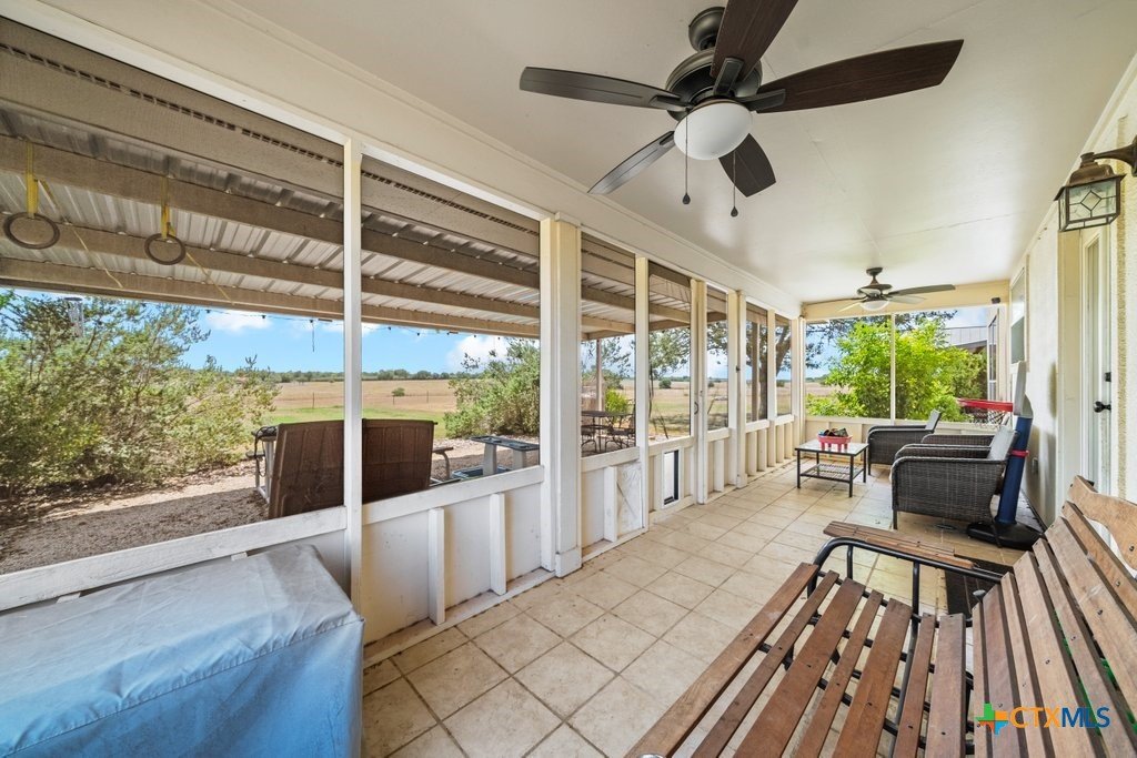 Discover your private retreat on nearly 5 expansive acres, just minutes from San Marcos, the San Marcos River, and within easy reach of both San Antonio and Austin. This property blends wide-open Texas prairie views with privacy, backing up to a cattle ranch while still offering convenient access to city life. The home features a durable standing seam metal roof, a spacious screened-in porch with beautiful views—perfect for morning coffee or evening sunsets—and extensive built-in woodwork that provides smart storage throughout. Horses are welcome, and with ample space, keeping chickens or other animals is also a possibility. For hobbyists, car enthusiasts, or anyone needing extra room, the property includes a massive garage, covered work area, and carport—ideal for projects, equipment, or recreational vehicles. Whether you’re seeking a quiet escape, room to spread out, or a place to enjoy the outdoors, this property delivers with its versatile acreage and peaceful surroundings. Enjoy the serenity of living near the river—right across the street—while remaining safely outside the floodplain. Don’t miss this unique opportunity to own a property that combines space, craftsmanship, and an unbeatable location.