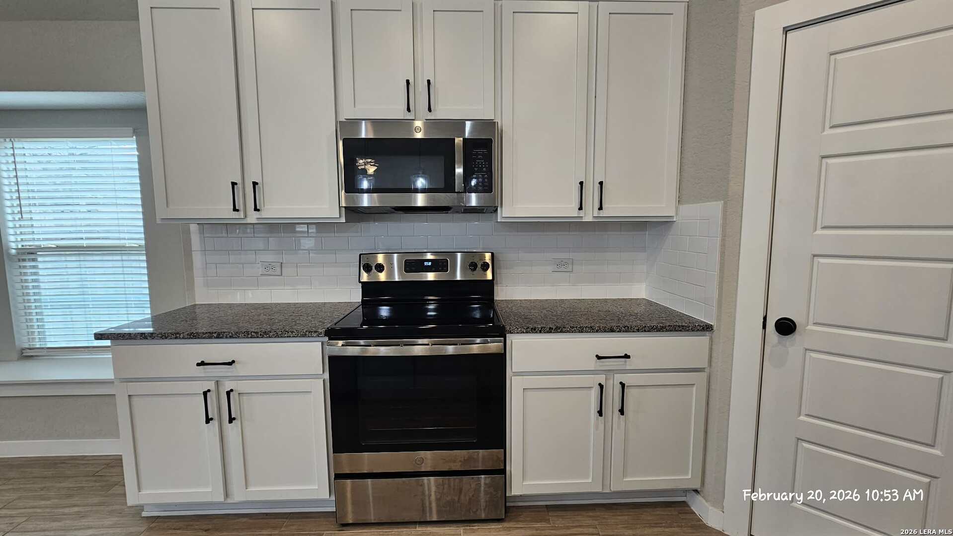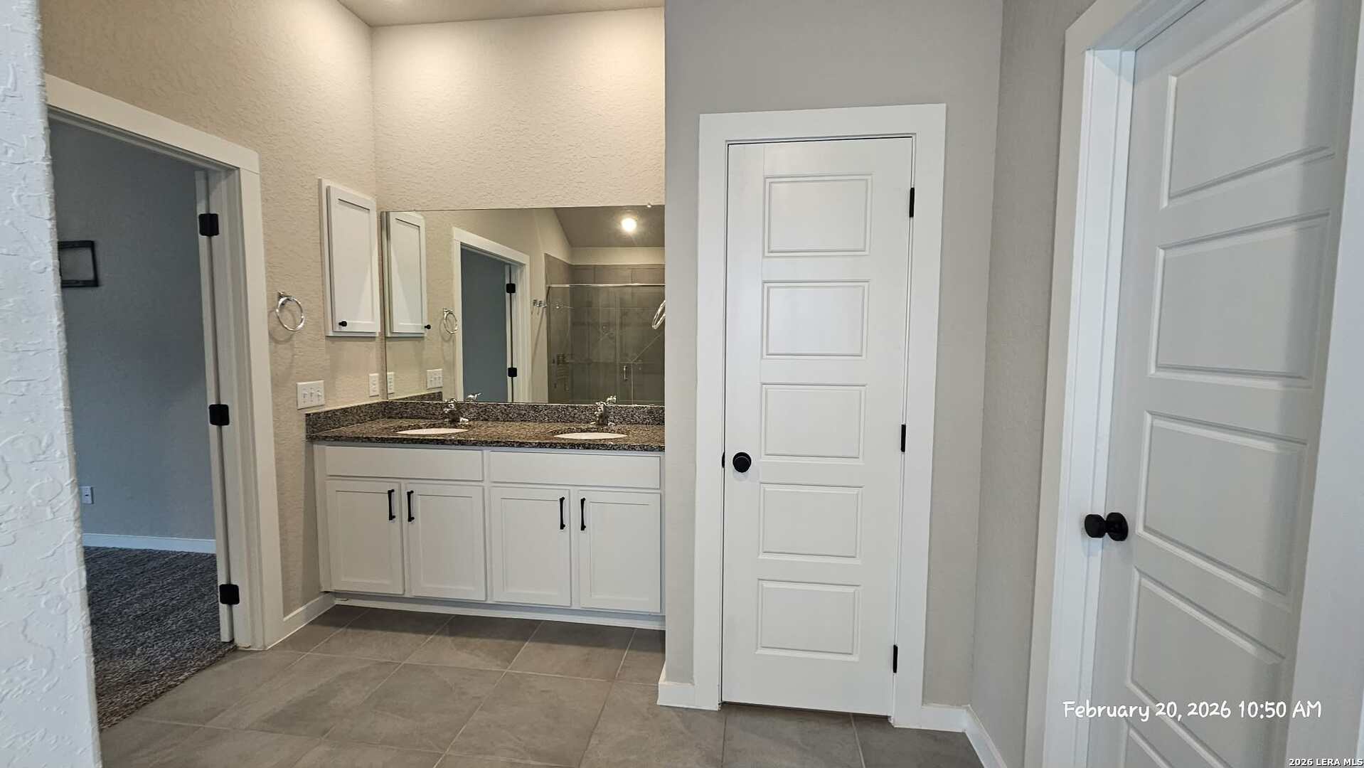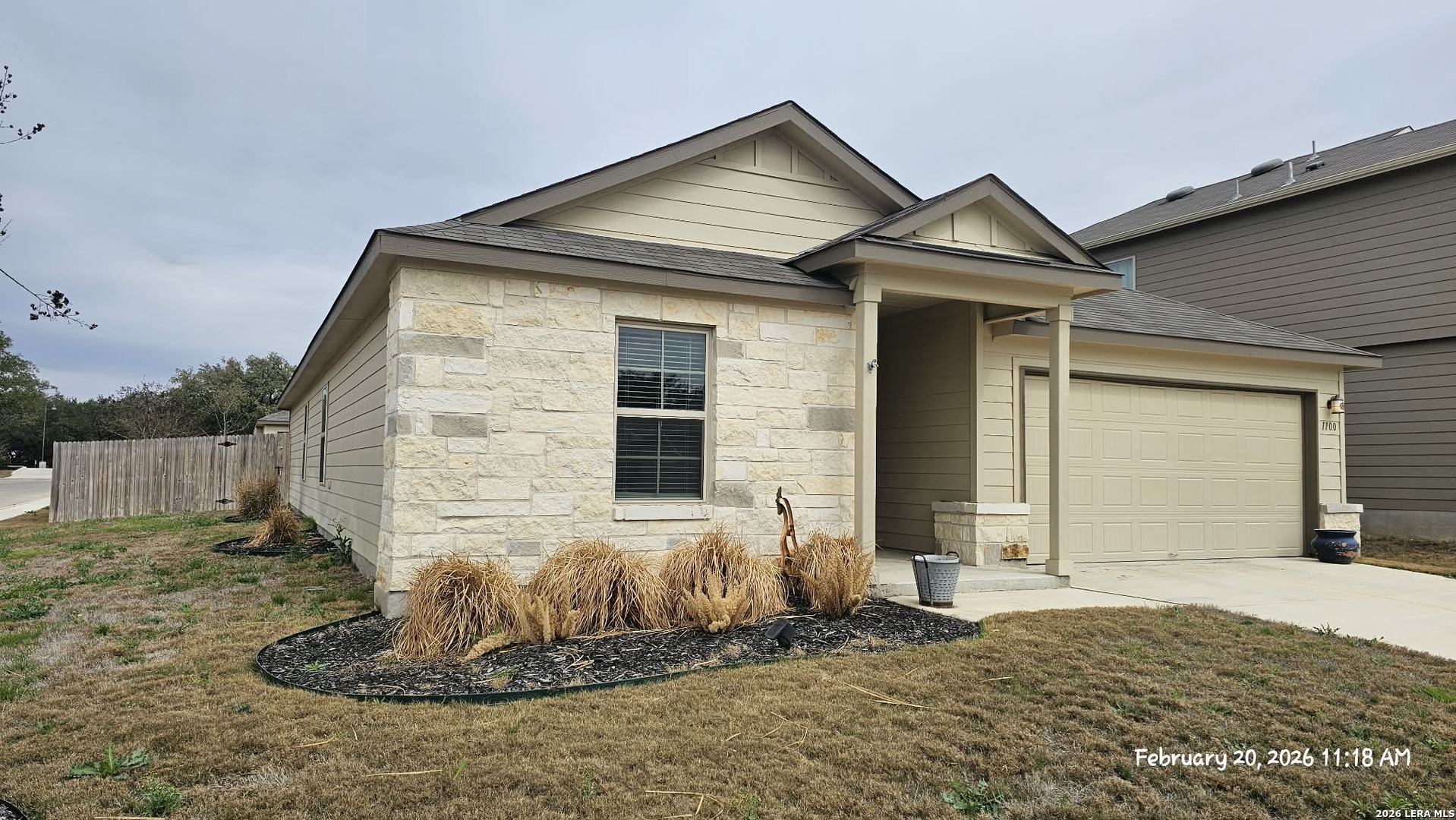 Beautifully maintained newer-construction home located in the Greenspoint Heights subdivision on a corner lot with convenient access to Hwy 46. This 4-bedroom, 3-bathroom home includes a 2-car attached garage and a functional open floor plan designed for everyday living. A 5-foot-wide entry foyer leads into the open living, dining, and kitchen area filled with natural light. The kitchen features granite countertops, ample cabinet storage, and a practical layout for cooking and entertaining. The split-bedroom floor plan offers added privacy. The primary suite includes dual vanities with granite countertops, walk-in shower, and walk-in closet. A secondary bedroom includes an en-suite bath, providing flexibility for guests or multi-generational living. Additional bedrooms are well-sized and versatile. Interior features include a separate laundry room and whole-home water system. The backyard includes a covered patio and fenced yard. Community amenities include a pool and park. Conveniently located near shopping, dining, and area attractions in New Braunfels with quick access to the Guadalupe River.