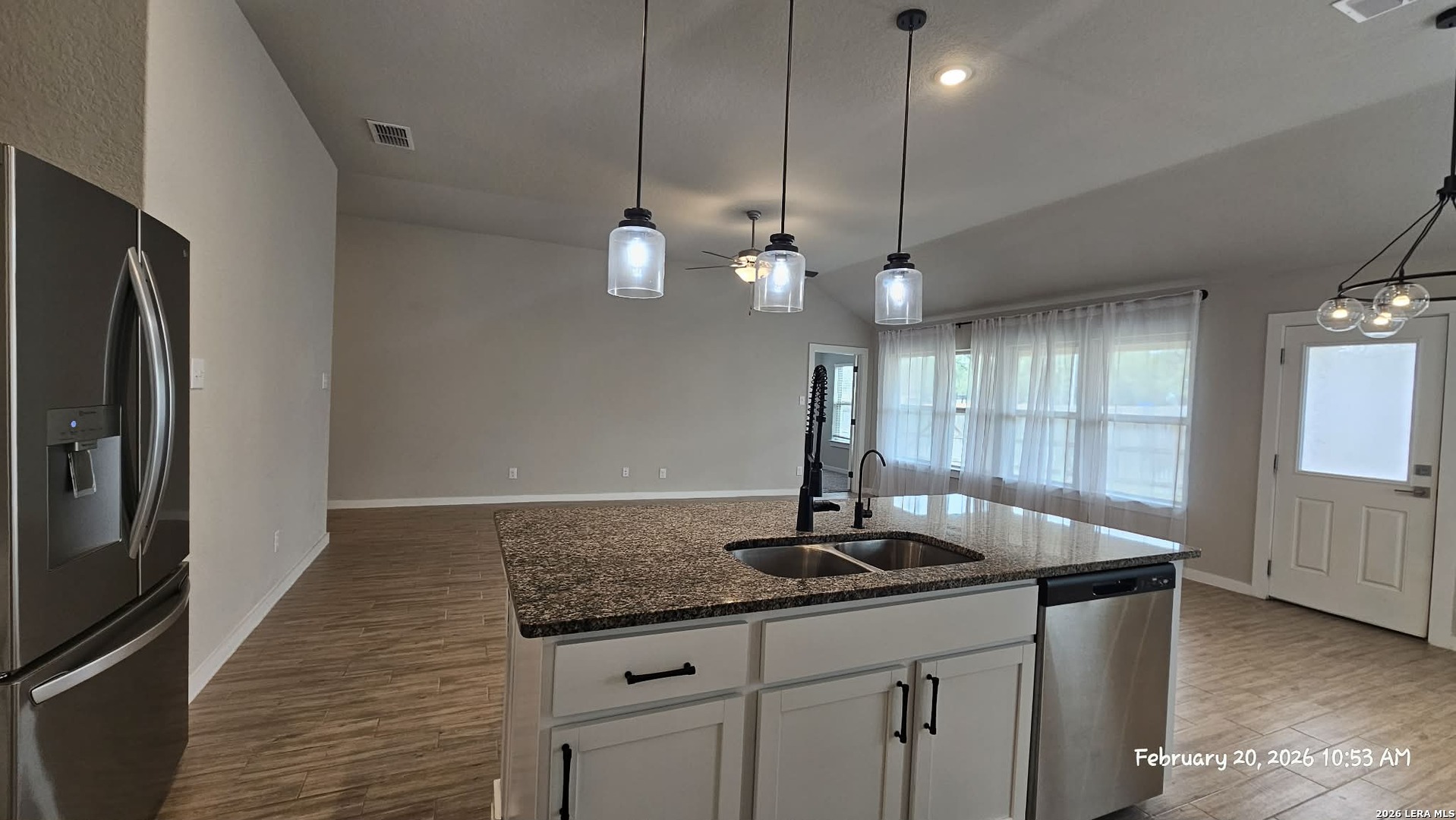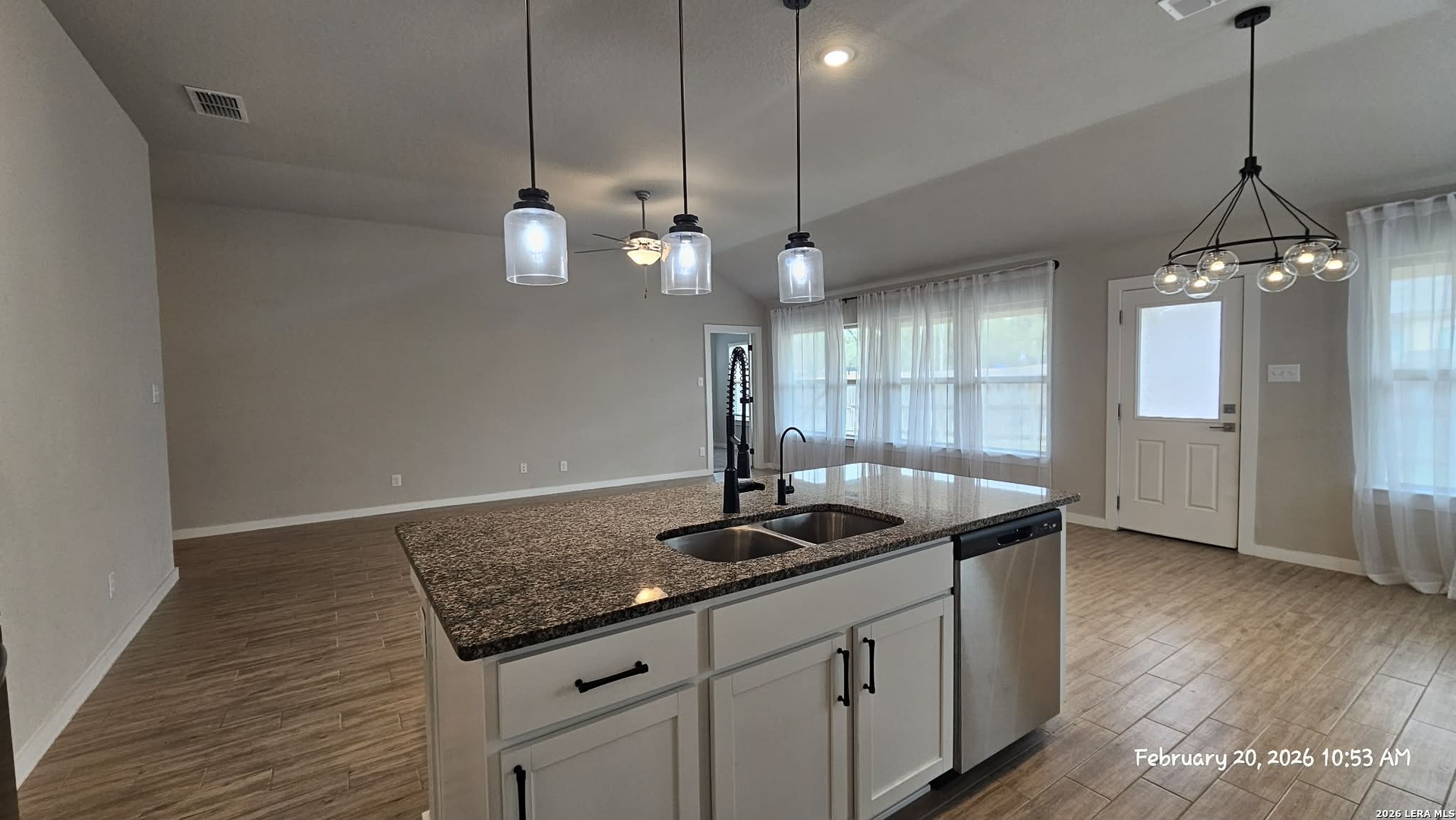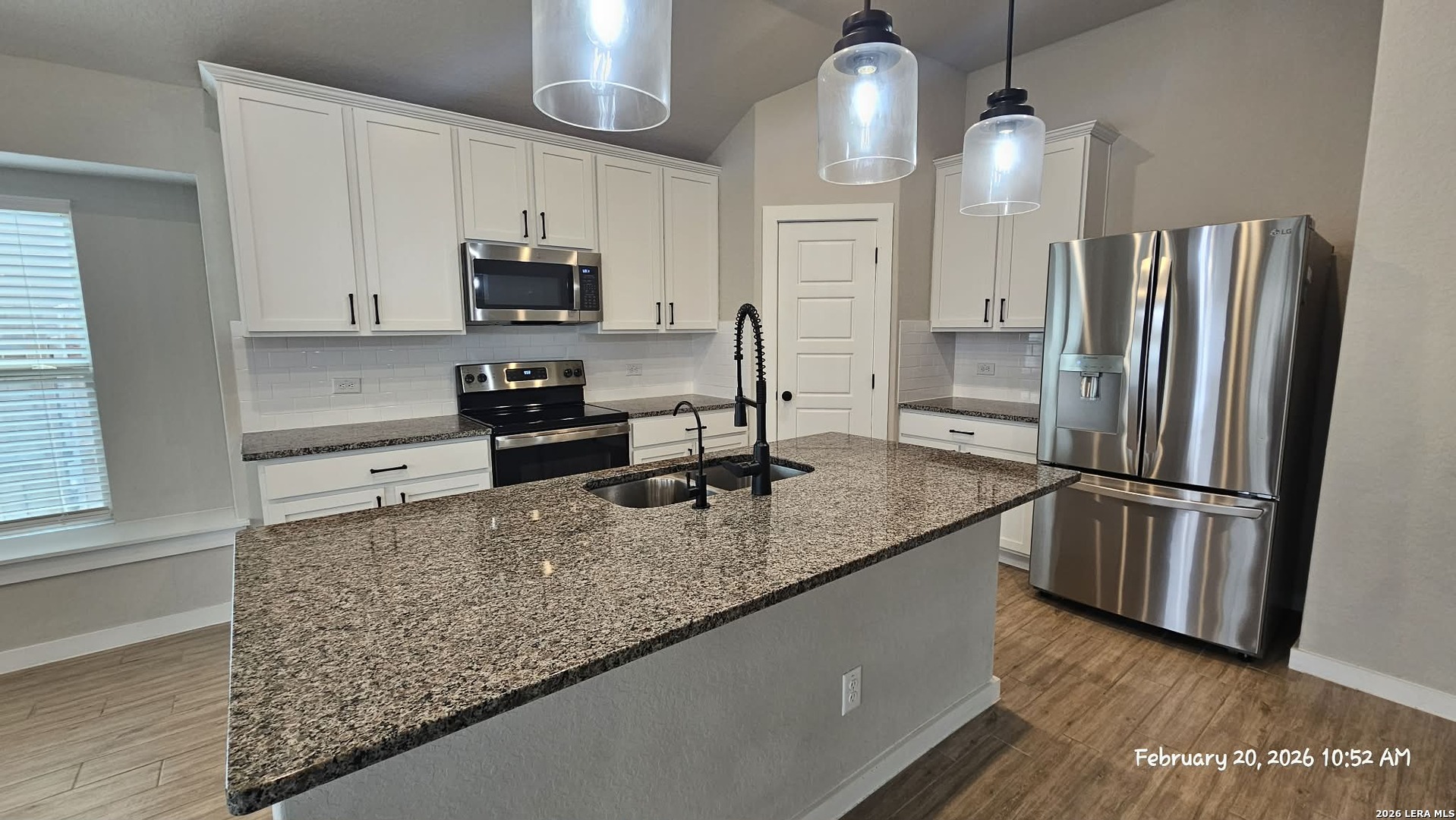 Beautifully maintained newer-construction home located in the Greenspoint Heights subdivision on a corner lot with convenient access to Hwy 46. This 4-bedroom, 3-bathroom home includes a 2-car attached garage and a functional open floor plan designed for everyday living. A 5-foot-wide entry foyer leads into the open living, dining, and kitchen area filled with natural light. The kitchen features granite countertops, ample cabinet storage, and a practical layout for cooking and entertaining. The split-bedroom floor plan offers added privacy. The primary suite includes dual vanities with granite countertops, walk-in shower, and walk-in closet. A secondary bedroom includes an en-suite bath, providing flexibility for guests or multi-generational living. Additional bedrooms are well-sized and versatile. Interior features include a separate laundry room and whole-home water system. The backyard includes a covered patio and fenced yard. Community amenities include a pool and park. Conveniently located near shopping, dining, and area attractions in New Braunfels with quick access to the Guadalupe River.