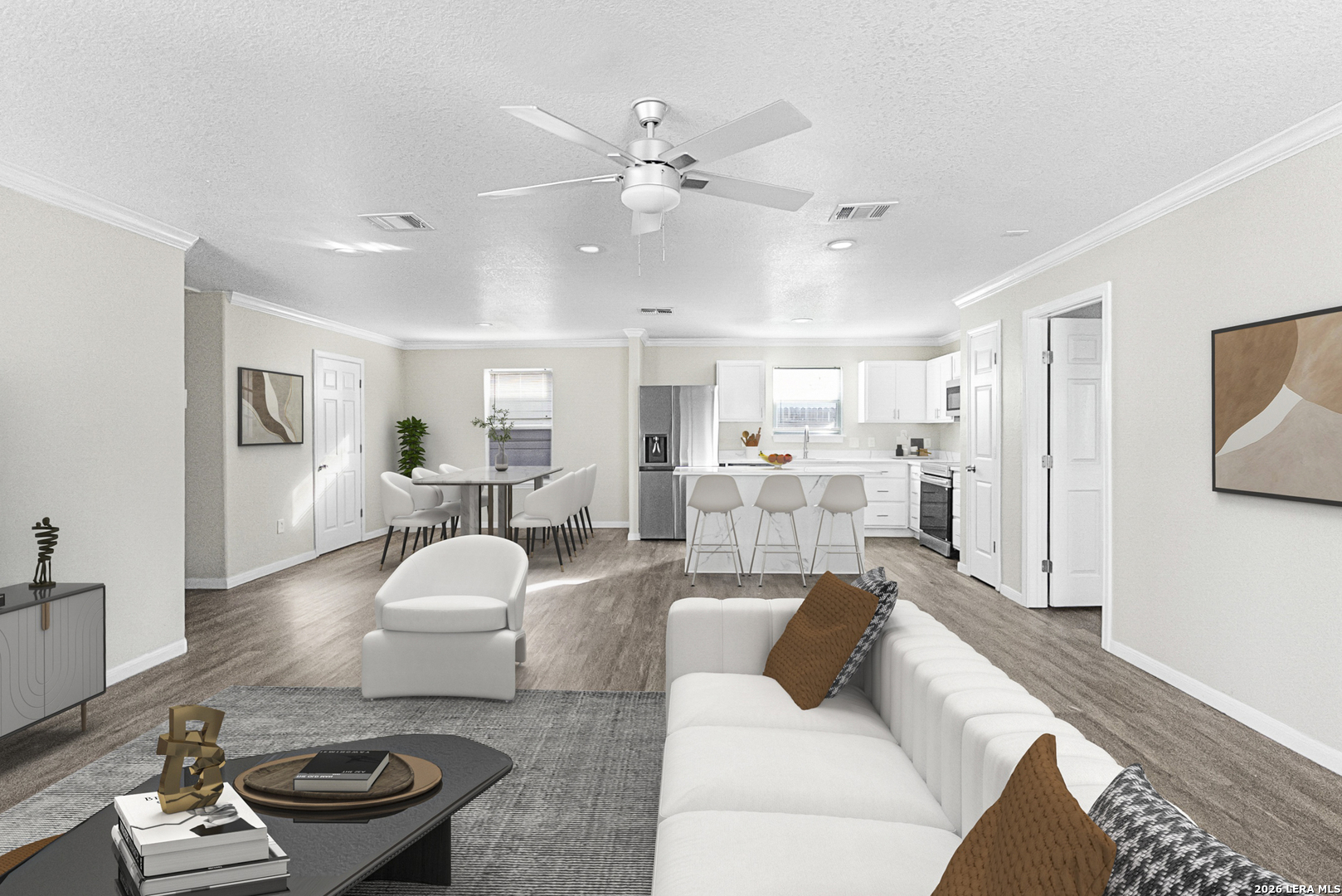 Beautifully maintained home located in the desirable community of Moonlit Canyon! This spacious property features an open-concept floor plan with abundant natural light, a large living area perfect for entertaining, and a well-appointed kitchen with ample cabinet space and a breakfast bar. The primary suite offers a private retreat with a walk-in closet and full bath. Secondary bedrooms are generously sized. Enjoy the oversized backyard ideal for gatherings, pets, or future outdoor projects. Conveniently located near major highways, shopping, dining, and schools.