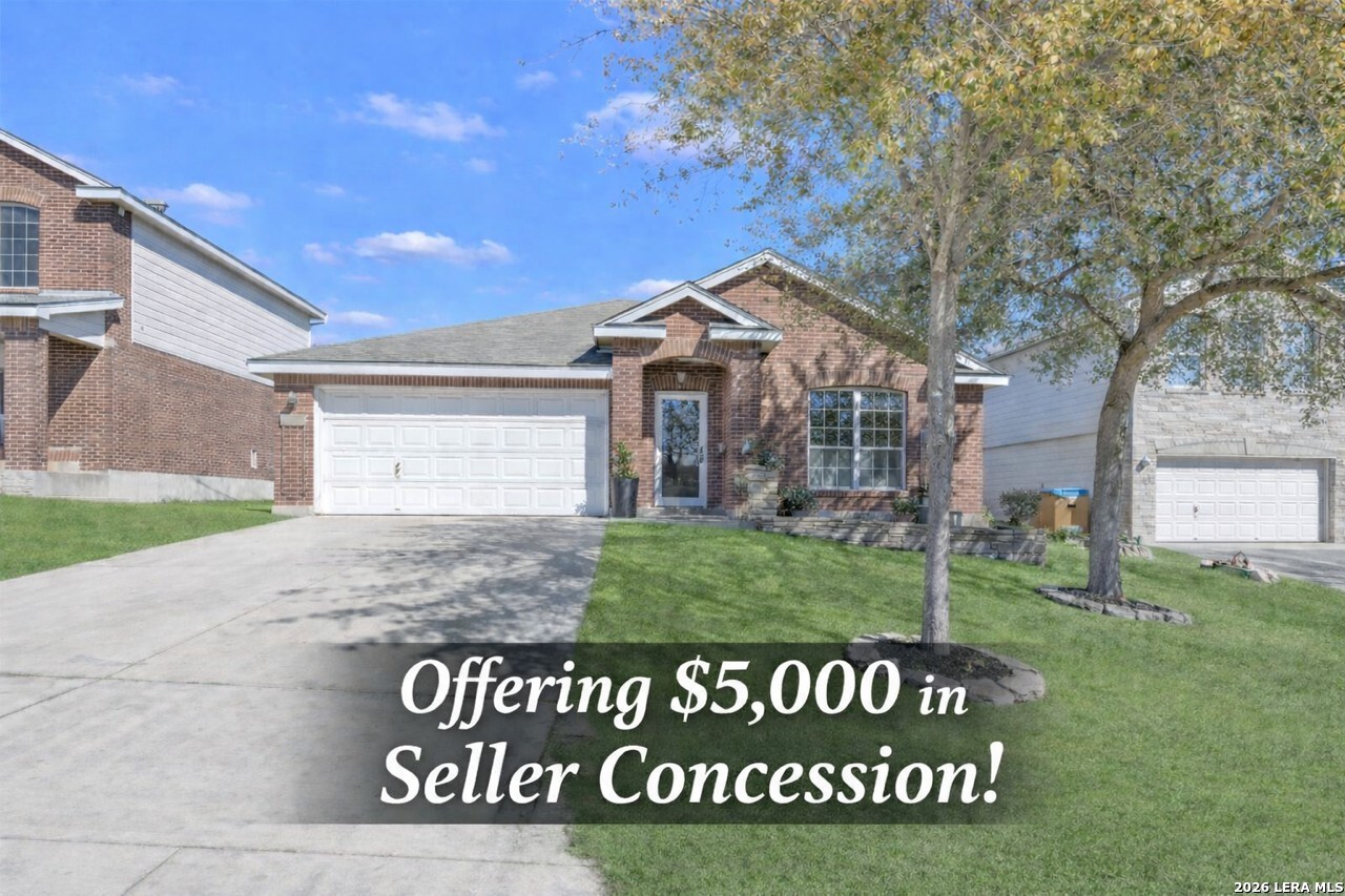***SELLER CONCESSION OF $5,000 & ASSUMABLE LOAN OF 3.625*** Move-In Ready Single-Story Beauty! Welcome to this adorable and well-maintained single-story brick home featuring 4 spacious bedrooms and 2 full baths. Inside, you'll love the high ceilings and the easy-care tile and laminate flooring throughout - no carpet! The updated kitchen shines with beautiful quartz countertops, new cabinetry, and modern appliances, making it perfect for both everyday living and entertaining. Step outside to enjoy the deck and patio area, ideal for outdoor gatherings and weekend relaxation. Located in a great neighborhood with fast and easy access to major highways, this home is conveniently close to shopping centers, grocery stores, SeaWorld, and Lackland AFB. Energy-efficient solar panels (owned by Seller) provide added savings and value. Gorgeous, well cared for, and truly move-in ready - this one is a must-see!