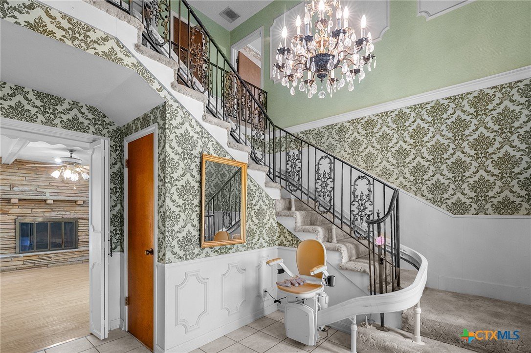 This iconic Yoakum home is a rare gem you don’t want to miss! Located at 1101 Clark Street, this custom-built beauty sits on nearly an acre shaded by gorgeous oaks and can include an additional 1.5-acre lot with a large barn across the street for additional consideration. Built by the owner of Circle Y Saddlery, the home is filled with thoughtful custom touches, quality craftsmanship, and a rich local history you won’t find anywhere else. Inside, you’re greeted by a grand foyer with soaring ceilings and a stunning glass chandelier. Multiple living and dining areas give you flexible space to entertain or relax. The main living room has huge windows overlooking the backyard and a cozy gas fireplace. The renovated kitchen is a showstopper with custom cabinetry, pull-outs, a movable island, and appliance garages. There are two primary suites—one upstairs with a spa-like bath, oversized closet space, and a huge private deck, and one downstairs with its own walk-in closets. But the real surprise? A massive game room and a custom bar rescued from the historic St. Regis Hotel—complete with a hidden safe room under the floor! Add a beautiful pool, stair lift, sprinkler system, and custom storage everywhere, and you’ve got a one-of-a-kind home that truly has it all. Don’t wait—this home is unforgettable. This isn't just a house; it’s a legacy. Every inch of 1101 Clark Street tells a story—of craftsmanship, family, hospitality, and pride. From the majestic oaks to the chandelier-lit foyer, the St. Regis bar to the hidden floor safe, this home blends luxury and history in a way that few properties ever can. Greenhouse, shop, and RV barn with hookups. Whether you're looking for a showplace to entertain, a comfortable multigenerational home, or simply want to own a piece of Yoakum’s finest real estate, this is your chance. Schedule your private showing today and experience the magic of 1101 Clark Street — where timeless design meets modern comfort in the heart of South Texas.