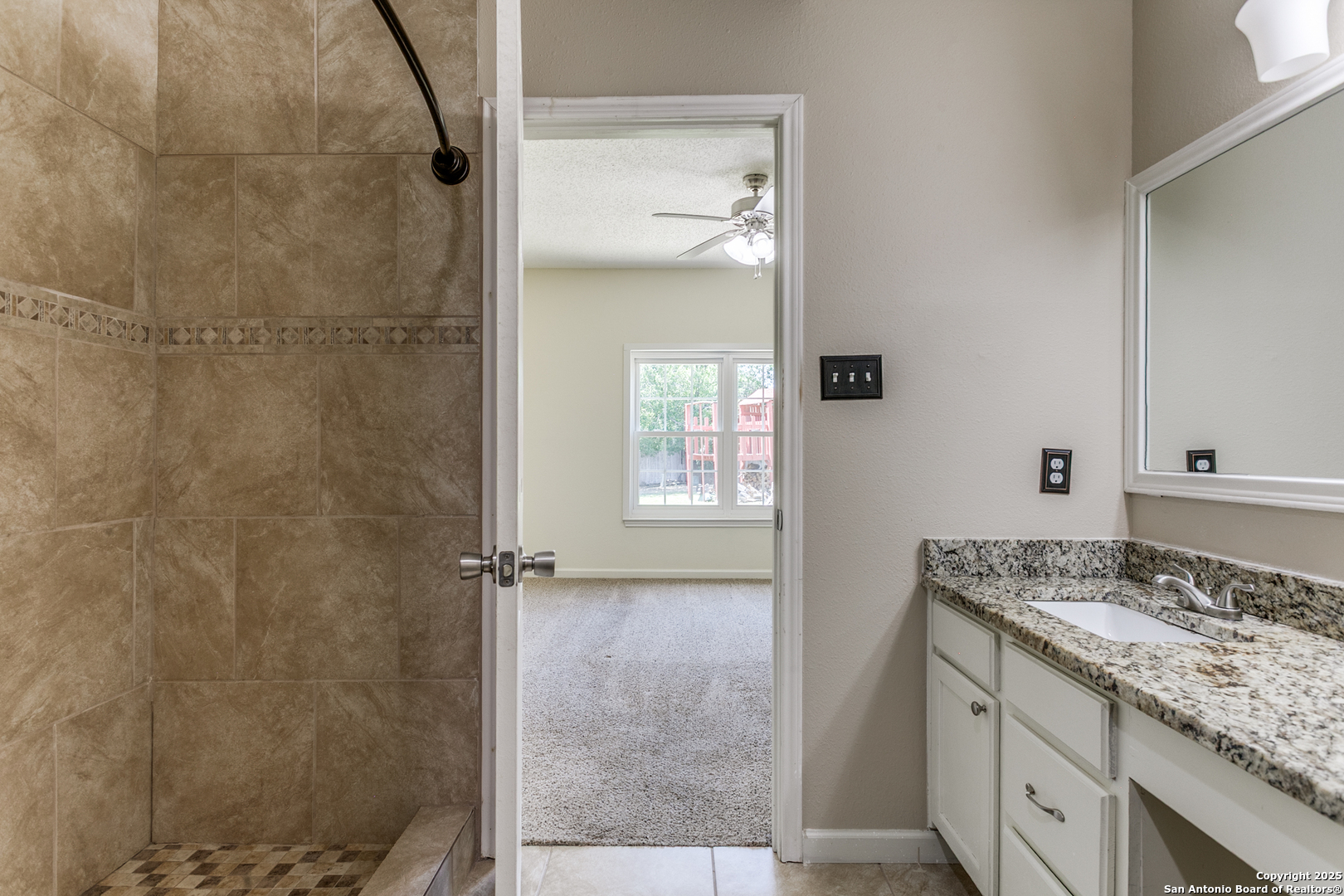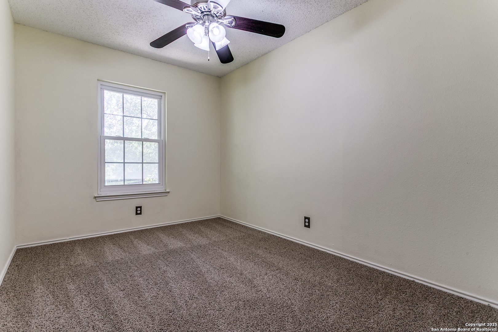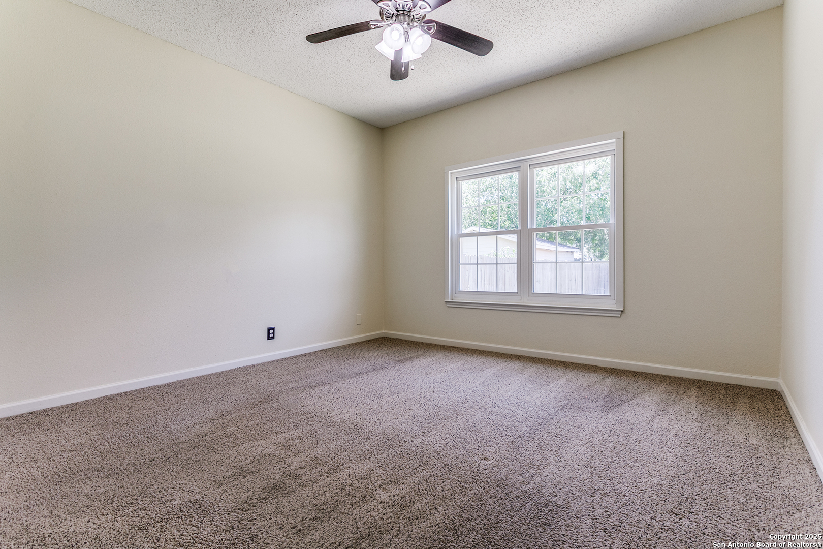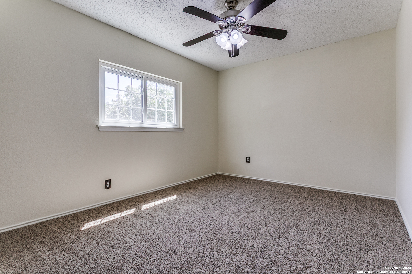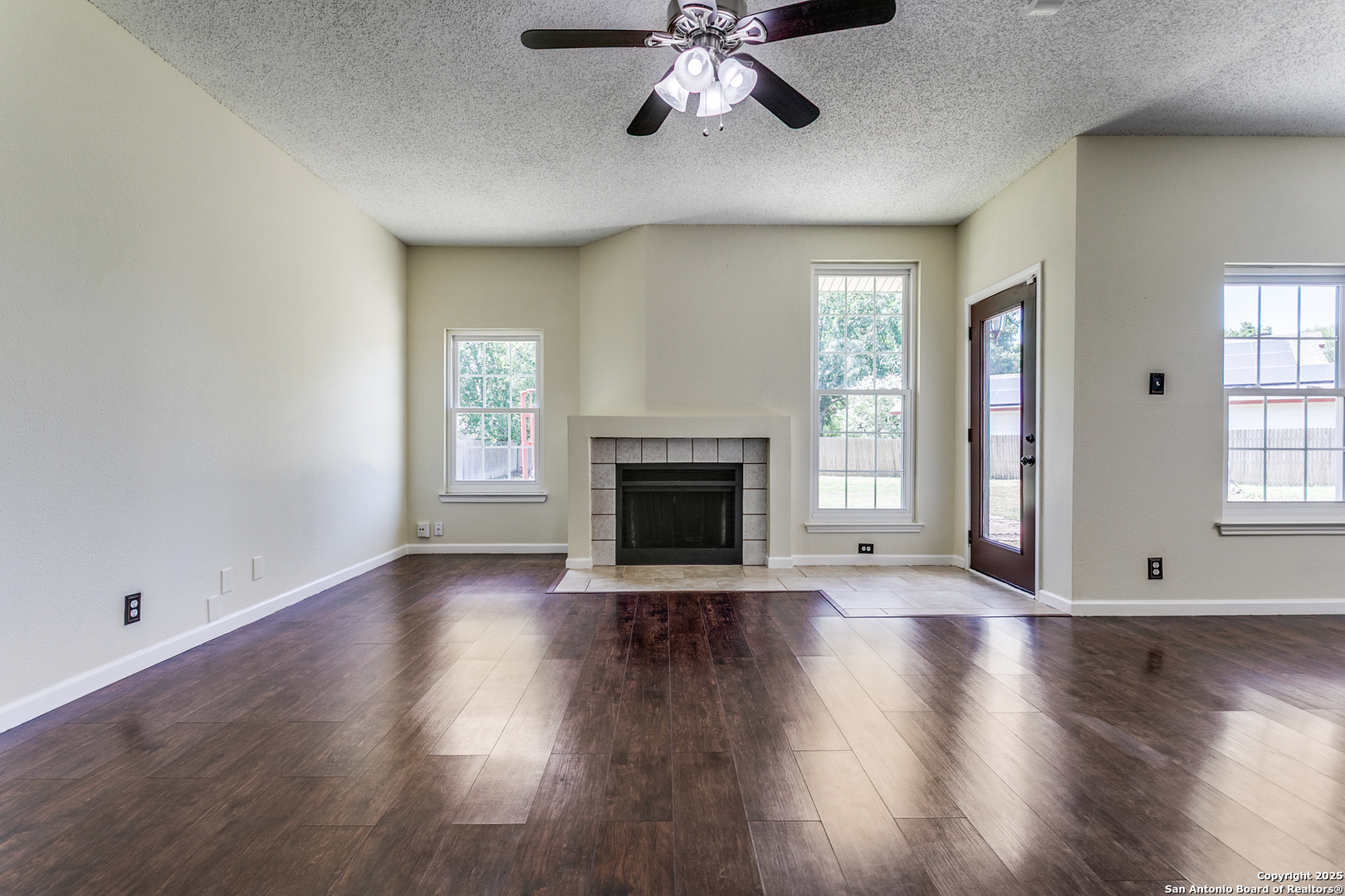 RARE 1/3 ACRE LOT & PRICED BELOW APPRAISED VALUE - COME & TOUR - MOVE IN READY home in Parkwood subdivision, offering four bedrooms, two and half bathrooms, and an attached two car garage. Nestled on a rare 1/3-acre lot. Step inside to a welcoming foyer that opens to a living area with high ceilings, natural light, beautiful laminate flooring, and a cozy fireplace. Eat in kitchen features granite countertops, a tiled backsplash, and a seamless flow into the informal dining area. The primary suite, located on the first floor, offers a large walk-in closet, oversized vanity with single sink, and a private stand-alone shower. Upstairs, you'll find three additional bedrooms and a full bath. Step outside to your own private fenced in backyard with plenty of green space, and a permanently installed play fort, perfect for weekend BBQs, outdoor entertaining, or peaceful evenings under the Texas sky. Conveniently located near UTSA, The Rim, La Cantera, the medical center, and easy access to major highways.