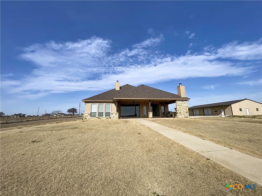 Wow, this is stunning. Custom built high end quality, all the bells and whistles. Popular split floor plan, the primary bedroom is large with a door that leads to the covered patio. The bathroom is amazing featuring a soaking tub and a fantastic walk in shower, large walk in closet, with a built in ironing board, shelving and built ins. The east wall in the living room is glass, there is a fireplace, open to dining and the kitchen. The kitchen has custom cabinets, island sink with plenty of storage. double oven, built in microwave, propane cook top, granite counter tops with tumbled tile back splash. There is a jack in Jill bathroom, hall bath with a nice walk in shower, there is a half bathroom off the patio. All the bedrooms have a ceiling fan and walk in closets. The patio has an outside kitchen and a fireplace, built in pool with a hot tub and water fall. 40 x 100 storage metal building. This is a must see