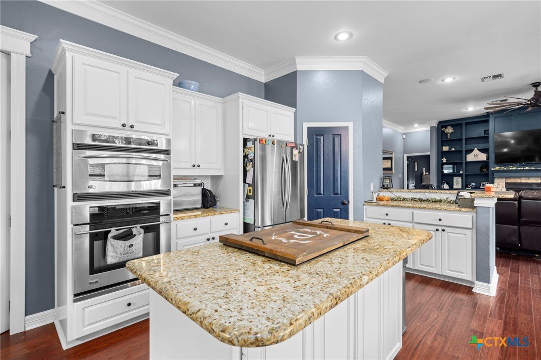 Located in highly desirable Belton ISD, this spacious 4-bedroom, 2-bath home sits on a rare 1-acre corner lot in Temple, TX, offering the perfect blend of privacy, space, and convenience. Designed with today’s buyers in mind, the home features an open-concept layout, high ceilings, and abundant natural light that creates a bright and inviting living space. The kitchen is ideal for entertaining with granite countertops, center island, walk-in pantry, and seamless flow into the main living area...and don't miss the hidden pantry/office. The split-bedroom floor plan provides added privacy, while the oversized primary suite includes a double vanity, garden tub, separate shower, and walk-in closets—a true retreat at the end of the day. A dedicated home office/flex space near the entry is perfect for remote work or a quiet study area. Step outside to enjoy a large fenced backyard with covered patio, ideal for relaxing, entertaining, or future additions like a pool or outdoor kitchen. The side-entry garage and corner lot positioning enhance curb appeal and functionality. Located in the sought-after Lakewood Ranch community, residents enjoy access to walking trails, community pool, playground, and outdoor recreation areas—all just minutes from Lake Belton, Baylor Scott & White Medical Center, shopping, dining, and I-35 for easy commuting. This is a rare opportunity to own a move-in ready home with acreage in Temple TX/ Belton ISD—homes like this don’t stay on the market long.