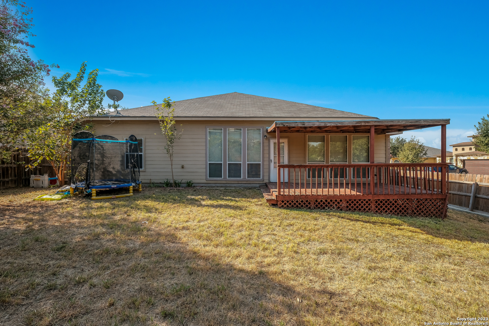 single-family home nestled in the serene district of Mission del Lago, San Antonio, TX. Constructed in 2006, this 3-bedroom, 2-bathroom dwelling boasts a generous floor area of 2358 square feet, striking the perfect balance between elegance and functionality.